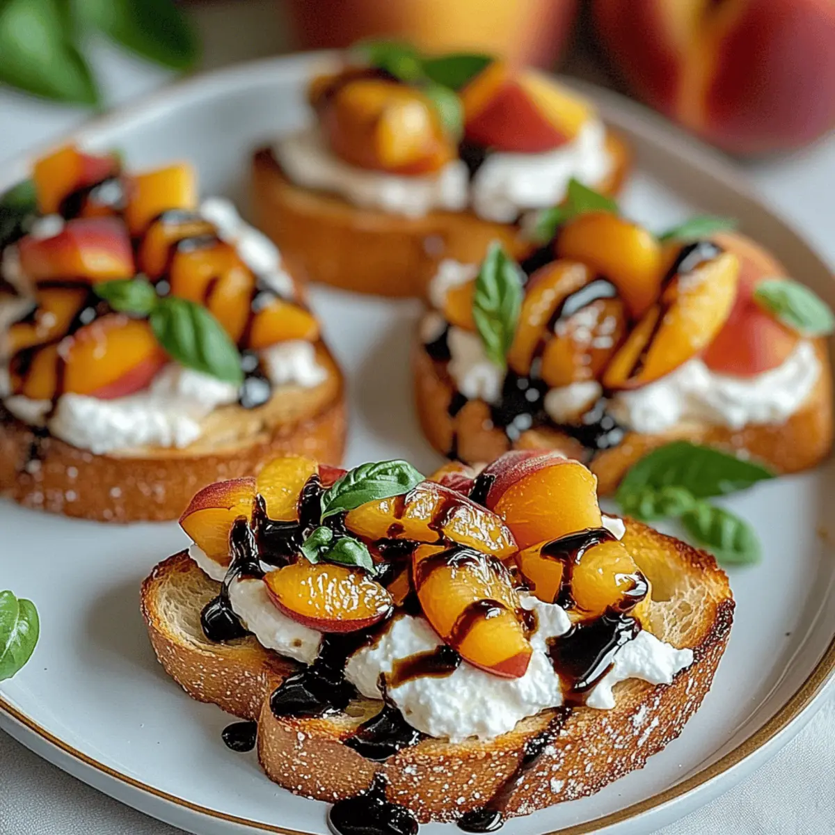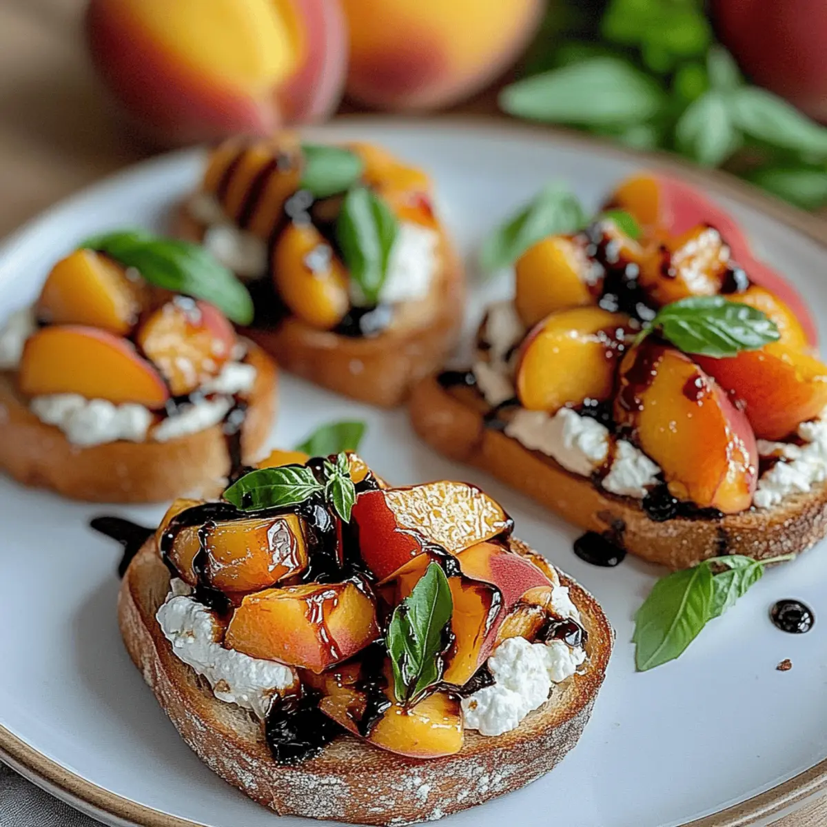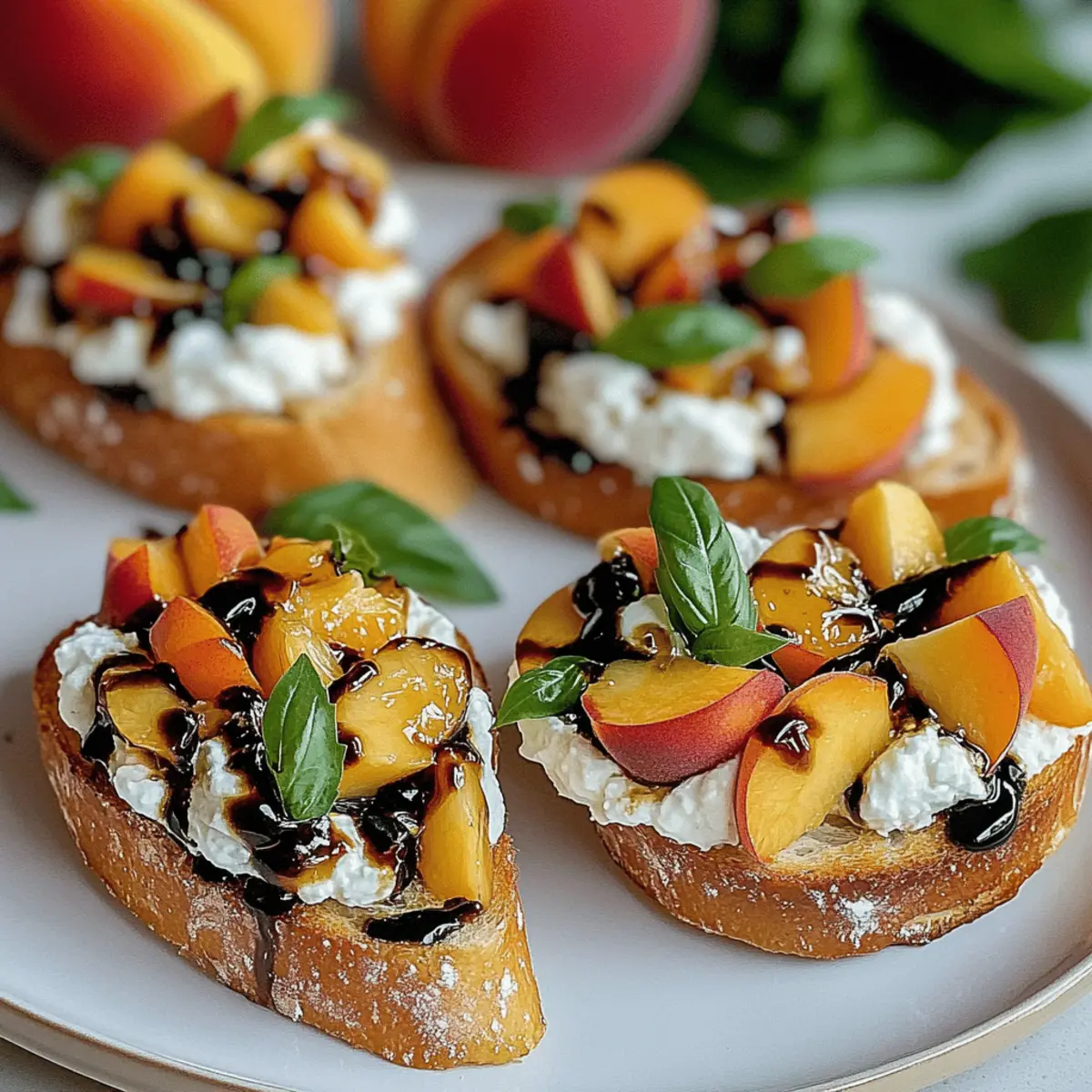 Jump to Recipe Print RecipeAs I spread the creamy whipped ricotta onto golden-brown bruschetta, the warm summer sun dances through my kitchen, and I can’t help but feel grateful for this peachy creation. This Peach Bruschetta Whipped Ricotta recipe brings a delightful twist to classic flavors, serving as the perfect appetizer or a vibrant snack that will impress guests and elevate your gatherings! Not only is it a breeze to whip up, but it also showcases fresh, juicy peaches that turn ordinary evenings into unforgettable moments. If you’re ready to discover a dish that’s not only pleasing to the palate but also a feast for the eyes, stay with me on this culinary adventure. What could be more delicious than a sweet and savory bite that invites conversation? Let’s dive in! Why is Peach Bruschetta Irresistible? Fresh, Flavorful Ingredients: The marriage of ripe peaches and creamy whipped ricotta will astound your taste buds—sweet yet savory perfection awaits! Quick and Easy: In just minutes, you can prepare a stunning appetizer that looks and tastes gourmet without the fuss. Crowd-Pleasing Appeal: This dish is sure to be a talk of the table, making it perfect for summer gatherings or family dinners. Versatile Delight: Whether served as an appetizer or a light snack, it pairs wonderfully with drinks or as part of a brunch spread. Try it alongside Moist Strawberry Frosting for a complete summer vibe! Visual Treat: The vibrant colors of this dish create an eye-catching experience that will have your guests reaching for their phones to capture the moment. Peach Bruschetta Whipped Ricotta Ingredients For the Bruschetta • Baguette – Choose a fresh baguette for that delightful crunch and chewy texture. • Olive Oil – A drizzle adds richness and helps bring out the flavors of the bread. For the Whipped Ricotta • Ricotta Cheese – Use fresh ricotta for a creamy texture that’s essential in making the perfect Peach Bruschetta Whipped Ricotta. • Honey – This natural sweetener will elevate the ricotta’s flavor profile and balance the tartness of the peaches. • Vanilla Extract – Just a splash enhances the sweetness and complexity of the whipped mixture. For the Peach Topping • Fresh Peaches – Ripe, juicy peaches are key; they should be sweet and fragrant for the best results. • Balsamic Glaze – A drizzle adds a tangy-sweet contrast that pairs beautifully with the sweet peaches and creamy ricotta. For Garnish • Fresh Mint – Chopped mint leaves add a refreshing pop of color and flavor, making each bite even more delightful! Step‑by‑Step Instructions for Peach Bruschetta Whipped Ricotta Step 1: Drain the Ricotta Begin by placing your ricotta cheese in a fine-mesh sieve or cheesecloth. Let it drain over a bowl for about 30 to 60 minutes—this will remove excess moisture and ensure a creamier texture. While it drains, you can prepare your other ingredients, getting you closer to creating that delicious Peach Bruschetta with Whipped Ricotta. Step 2: Make Whipped Ricotta Once drained, transfer the ricotta to a food processor. Add in the heavy cream, honey, salt, and freshly ground black pepper. Blend the mixture for about 2 to 3 minutes until smooth and fluffy, scraping down the sides as needed. This whipped ricotta will be the creamy base for your Peach Bruschetta, making it truly irresistible. Step 3: Prepare Peaches While the ricotta is whipping, wash, pit, and dice your ripe peaches into small pieces. In a bowl, combine the diced peaches with minced garlic and freshly chopped basil. The fresh flavors of the peaches and basil will complement the whipped ricotta perfectly, creating a vibrant topping for your bruschetta. Step 4: Season Peach Mixture To enhance the flavor of the peach mixture, drizzle in some olive oil and add a pinch of salt and freshly ground black pepper. Gently toss everything together until well combined. Make sure to taste and adjust the seasoning, ensuring a delicious balance for your Peach Bruschetta topping. Step 5: Toast Baguette Slice your baguette into 1/2-inch rounds and lay them on a baking sheet. Brush each slice lightly with olive oil to enhance flavor. Toast the baguette slices in the oven at 375°F for 8-10 minutes, or broil them for 1-2 minutes per side until golden and crispy. This crispy base will provide the perfect contrast to the creamy whipped ricotta. Step 6: Assemble Bruschetta To assemble your Peach Bruschetta, spread a generous layer of the whipped ricotta on each toasted baguette slice. Top with the peach mixture, making sure to pile on those vibrant peaches. Finally, drizzle a bit of balsamic glaze over the top for that sweet and tangy finish, elevating your dish. Step 7: Serve Serve your Peach Bruschetta with Whipped Ricotta immediately for optimal crispness and freshness. Arrange them beautifully on a serving platter and watch how your guests are drawn in by the vibrant colors and enticing flavors. Enjoy this delightful summer appetizer that’s perfect for any gathering! Storage Tips for Peach Bruschetta with Whipped Ricotta Fridge: Store any leftover whipped ricotta in an airtight container for up to 3 days. This creamy base will keep its delicious flavor, ensuring you can enjoy it again! Peach Mixture: It’s best to consume the peach topping fresh. However, if needed, it can be stored in the fridge for up to 24 hours. Keep it covered to prevent browning. Toasted Baguette: Toasted baguette slices are best enjoyed immediately. If you have leftovers, store them at room temperature in a paper bag for up to 1 day to maintain some crispness. Reheating: If you need to reheat the bruschetta, briefly warm the toasted bread in the oven at 350°F for a few minutes to regain some crunch before assembling with the fresh toppings. Peach Bruschetta Whipped Ricotta Variations Feel free to get creative and customize this recipe to suit your taste or dietary needs! Grilled Peaches: For a smoky flavor, grill the peaches before a