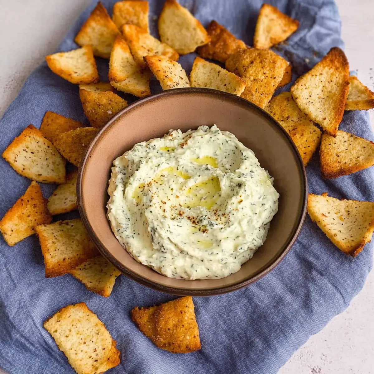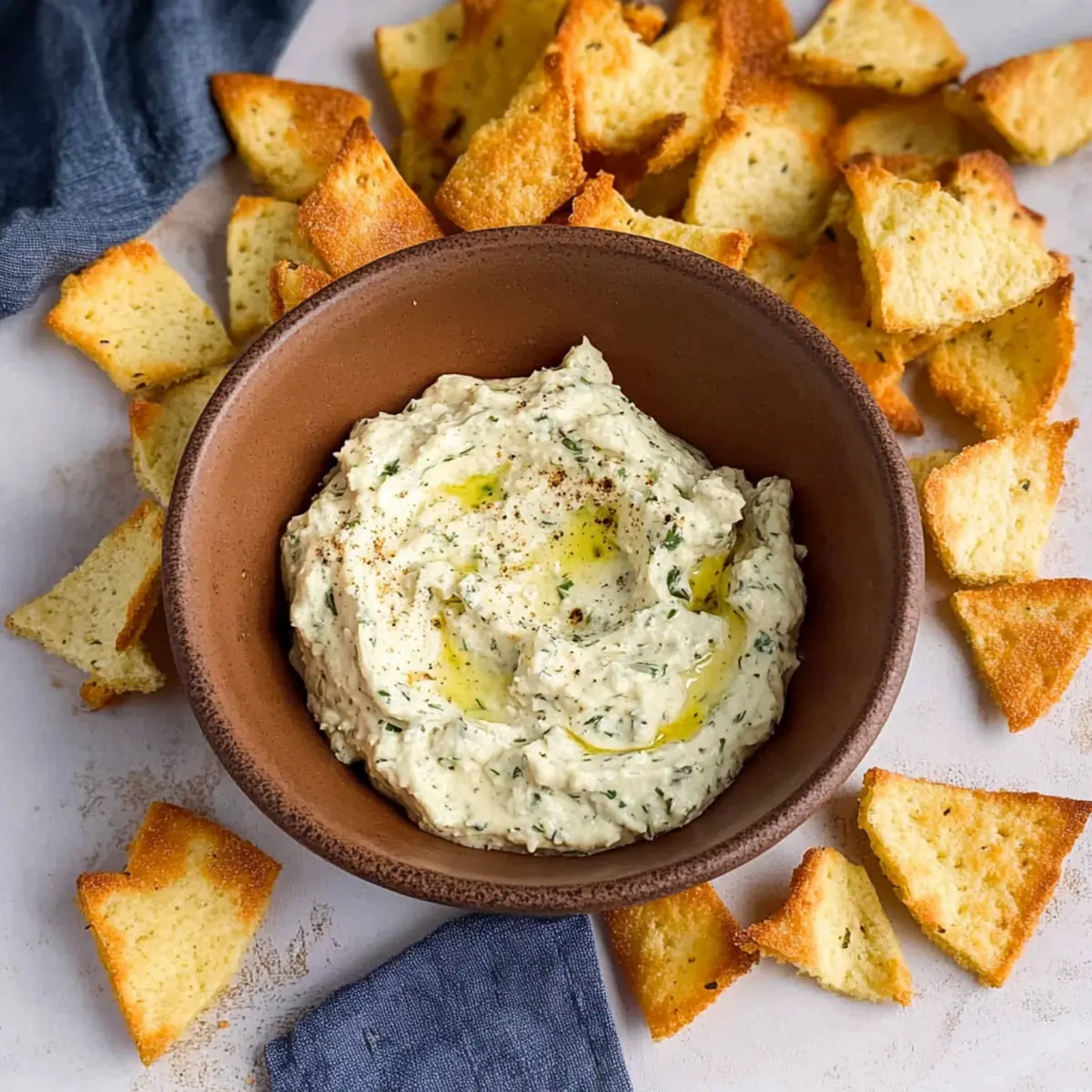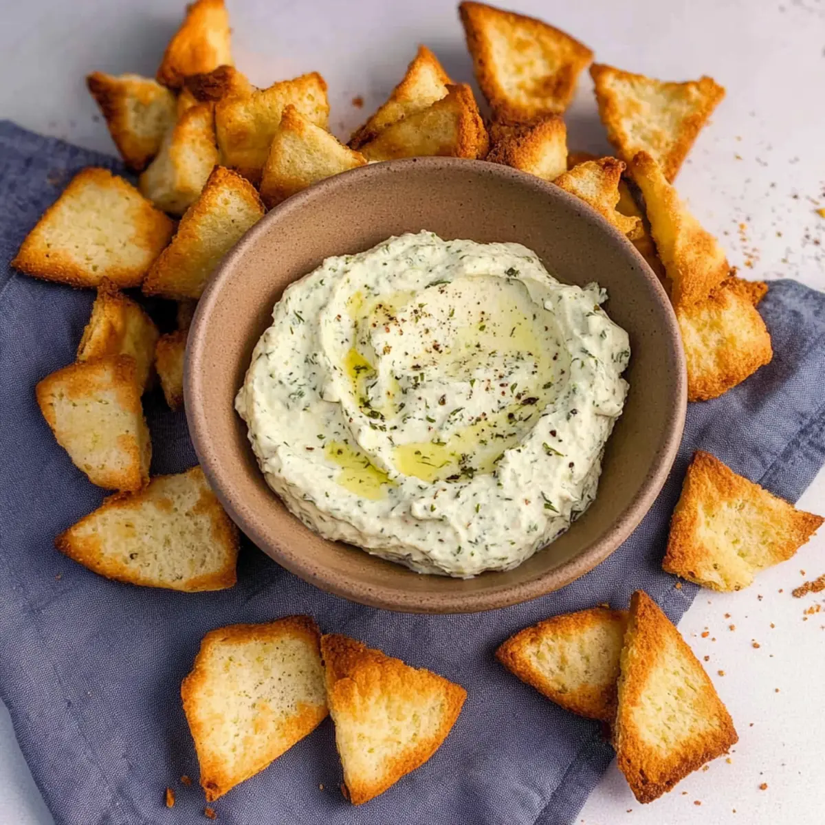 Jump to Recipe Print RecipeAs the sun dips below the horizon, I find myself craving something zesty to pair with the bustling energy of gathering friends around the table. That’s when this Creamy Tangy Pepperoncini Dip enters the scene, instantly elevating any occasion with its delightful mix of flavors. In just 25 minutes, you can whip up this easy dip recipe, perfect for game days or cozy family nights. Not only does it bring a creamy, slightly spicy punch to your palate, but it’s also a family-friendly appetizer that pairs beautifully with crunchy homemade bagel chips or crisp veggies. If you’re looking to ditch the fast food routine and impress your guests with a fresh twist on snacking, keep reading—your new favorite dip awaits just ahead! Why is Pepperoncini Dip a Must-Try? Irresistible Flavor: This dip masterfully blends creamy cream cheese with tangy pepperoncini, creating a flavor explosion that will have your guests coming back for more. Speedy Preparation: Ready in just 25 minutes, it’s an effortlessly quick recipe that saves you time without compromising on taste. Perfect for busy weeknights or last-minute gatherings! Crowd-Pleaser: Whether it’s game day or a casual family get-together, this pepperoncini dip is sure to impress with its zesty kick and inviting aroma. Serve with crispy homemade bagel chips or fresh veggies for an unbeatable combo. Versatile Options: Feel free to mix things up! Substitute pepperoncini with pickled jalapeños for added spice, or try different chip options like pita chips or carrots to cater to all tastes. For an added treat, consider pairing this dip with a platter of baked mac and cheese bites to create an unforgettable appetizer spread! Pepperoncini Dip Ingredients • Get ready to make this scrumptious and easy dip! For the Dip Cream Cheese – Provides creaminess and rich texture; substitute with Greek yogurt for a lighter version. Pepperoncini Peppers – Adds tang and mild heat; can replace with pickled jalapeños for more spice. Pepperoncini Juice – Enhances the flavor of the dip; omit if not using pickled peppers. Garlic Powder – Adds savory depth; fresh garlic can be used for a stronger flavor. Dried Oregano – Contributes herbal notes; substitute with Italian seasoning if desired. Salt & Pepper – Enhances overall taste to balance flavors. For the Bagel Chips Plain Bagels – Source for crispy chips; substitute with onion or everything bagels for additional flavor. Olive Oil – Used for coating bagel pieces; feel free to use melted butter for a richer taste. Kosher Salt – For seasoning bagel chips during baking. This Pepperoncini Dip is a sure hit for any gathering, making it not just a delicious appetizer but also a story to share with your loved ones! Step‑by‑Step Instructions for Creamy Tangy Pepperoncini Dip Step 1: Prepare the Dip In a medium mixing bowl, combine softened cream cheese, chopped pepperoncini peppers, and a splash of the pepperoncini juice. Add garlic powder and dried oregano to the mix, then season generously with salt and pepper. Using a hand mixer or wooden spoon, blend the ingredients until the mixture is smooth and creamy, ensuring the flavors meld beautifully. Step 2: Chill the Dip Once your creamy tangy pepperoncini dip is well combined, transfer it to a serving container. Cover it with plastic wrap or a lid and refrigerate for at least 15 minutes to all the flavors to develop. This short chill will enhance the dip’s taste and ensure it’s fresh and cool for serving, ready to delight your guests. Step 3: Bake Bagel Chips While the dip chills, preheat your oven to 350°F (175°C). Slice plain bagels in half and cut each half into 1-inch wedges. In a large bowl, toss the bagel wedges with olive oil, garlic powder, dried oregano, and kosher salt until well-coated. This step is essential for achieving that crispy, flavorful bagel chip. Step 4: Bake the Chips Spread the seasoned bagel pieces evenly on a lined baking sheet in a single layer. Bake in the preheated oven for about 15 minutes, flipping halfway through. Watch closely as they should turn golden brown and feel crispy to the touch. Once done, remove from the oven and allow them to cool, enhancing their crunchiness. Step 5: Serve and Enjoy Once both your creamy tangy pepperoncini dip and bagel chips are ready, plate them invitingly. Serve the chilled dip alongside the crispy bagel chips or with fresh vegetable sticks for dipping. This vibrant appetizer spread will surely be the highlight of your gathering, warmly welcoming everyone to dive into deliciousness. Pepperoncini Dip Variations & Substitutions Feel free to play with flavors and textures in this delicious recipe for a personalized touch that will excite your taste buds! Milder Heat: Replace pepperoncini with pickled banana peppers for a gentler flavor profile. This is perfect for those sensitive to spice. Zesty Topping: Add crumbled feta cheese or a sprinkle of fresh chives on top before serving for a burst of flavor and a pop of color! Chips Alternative: Swap bagel chips for tortilla chips or even crunchy vegetables like celery and carrots for a nutritious alternative. They all pair fabulously with the dip. Greek Twist: Use Greek yogurt instead of cream cheese for a tangy twist that lowers the fat content while remaining creamy. Serve cold for a refreshing treat! Dairy-Free Option: Substitute with cashew cream in place of cream cheese for a vegan-friendly variant that still offers creaminess and depth. Spicy Kick: Incorporate crushed red pepper flakes into the dip for a fiery touch or mix it into the bagel chip seasoning for an added heat boost. Herb Swap: Replace oregano with fresh dill or parsley to give the dip an aromatic freshness that elevates the overall flavor. Serving Upgrade: Try serving the dip alongside crisp pita chips or fresh vegetable sticks for a unique twist that makes every bite feel like a new adventure. By experimenting with these variations, you’re 