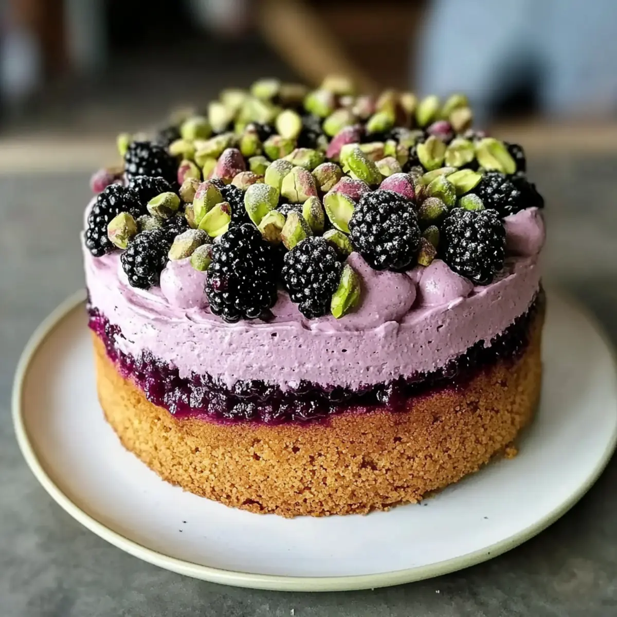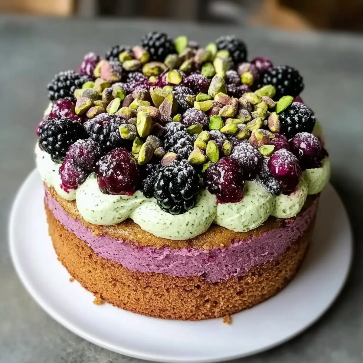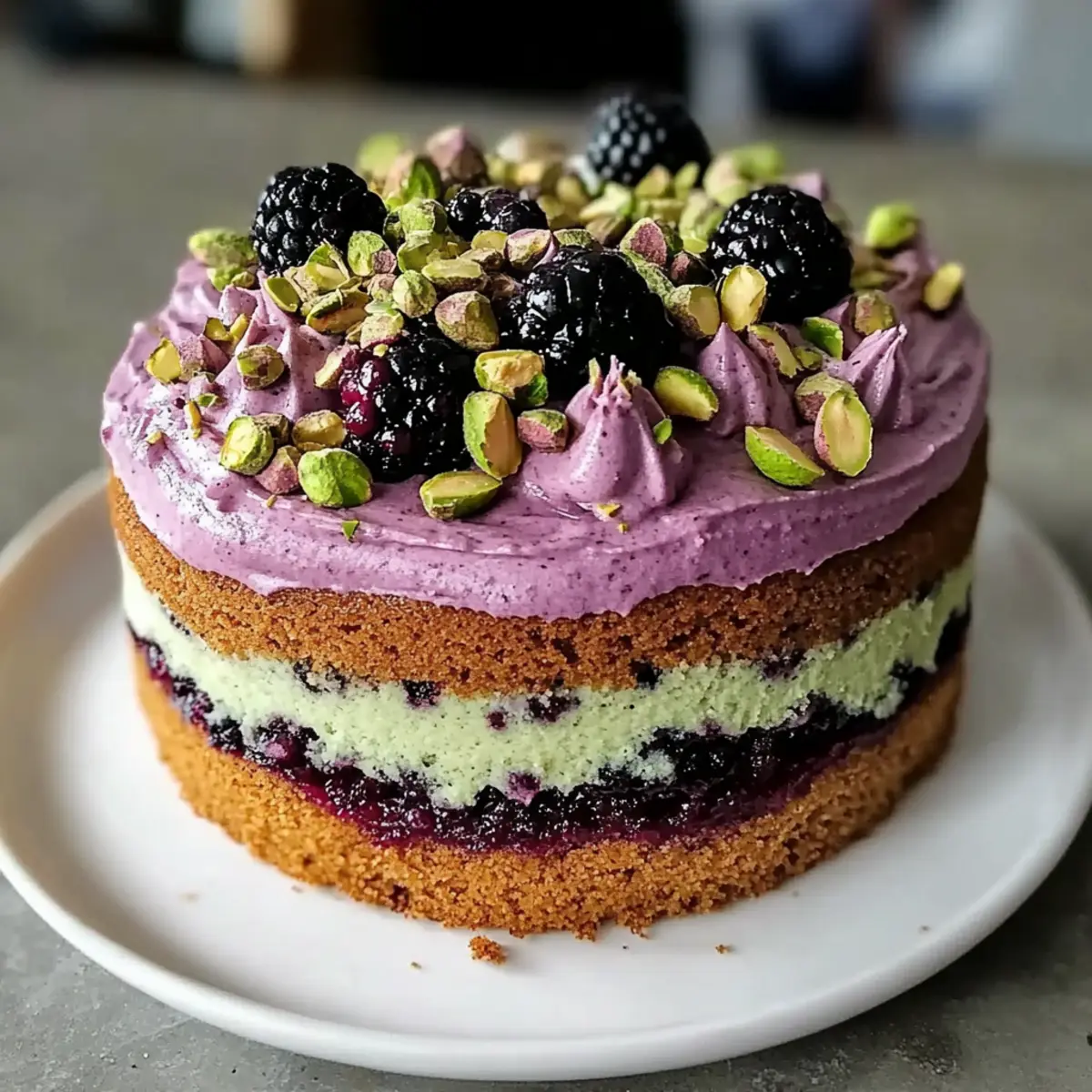Unique Flavor Combination: The delightful pairing of pistachios and blackberries creates a cake that’s bursting with flavor, satisfying both your sweet tooth and your cravings for something unique.
