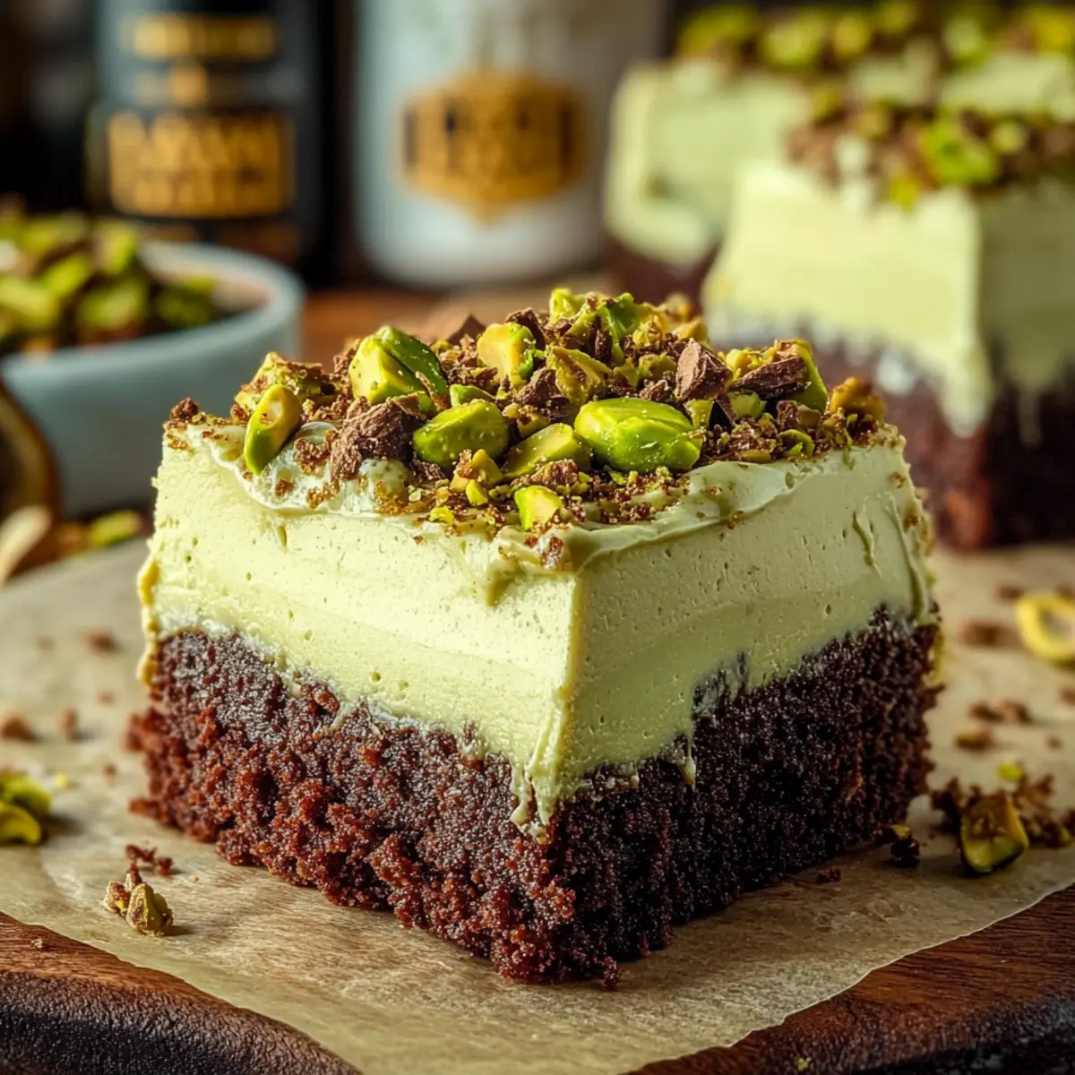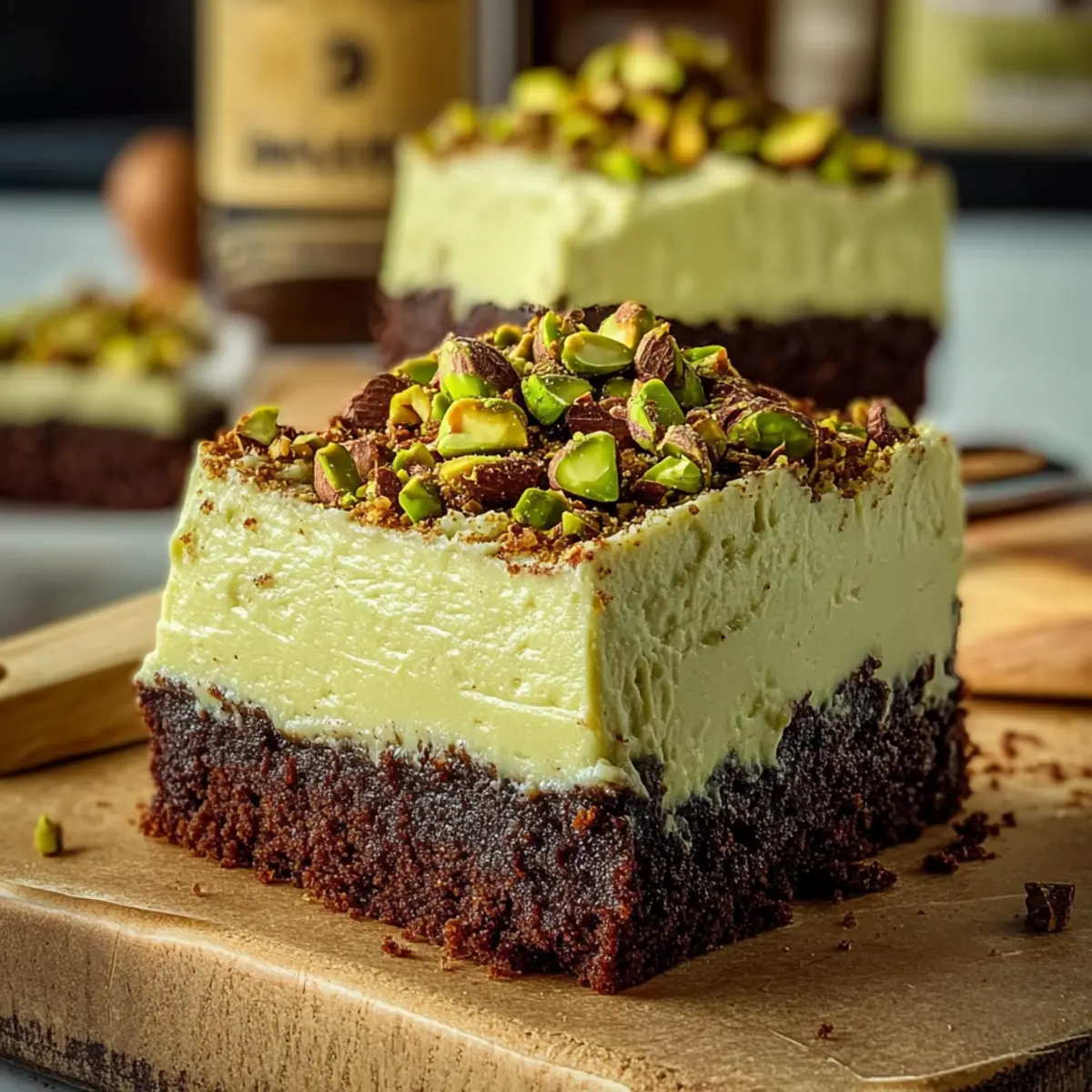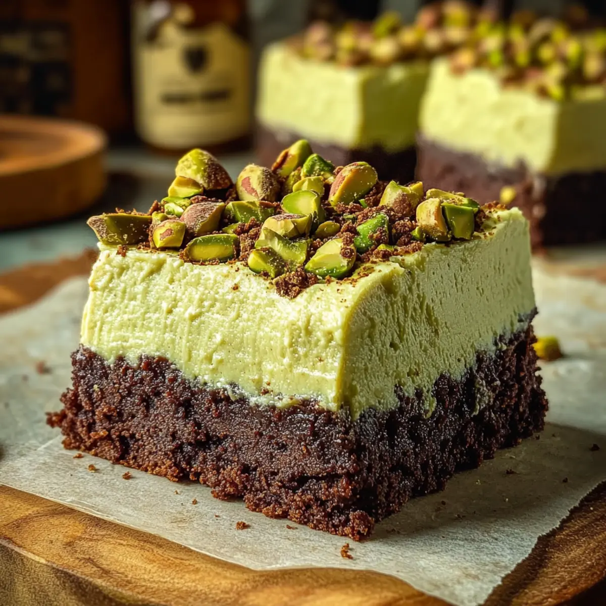 Jump to Recipe Print RecipeThe moment I combined layers of luscious cream cheese and velvety brownie, a sweet revelation unfolded. These Pistachio Cheesecake Brownie Bars are where two beloved desserts collide, creating a mesmerizing no-bake treat that’s both fudgy and creamy. What’s more, they’re a breeze to whip up, making them a go-to option for when you want to elevate your dessert game without spending hours in the kitchen. Plus, the stunning pistachio-green swirls are sure to impress at any gathering, enticing both friends and family alike. Ready to dabble in a delightful twist on classic flavors? Let’s dive into this layered sensation that’s just waiting for your taste buds! Why are Pistachio Cheesecake Brownie Bars special? Decadent Layers: These bars feature a fudgy brownie base topped with a creamy pistachio cheesecake layer, offering a delightful contrast that will leave you craving more. No-Bake Convenience: Imagine indulging in a luxurious dessert without the hassle of baking. Simply chill and serve for an effortless treat that’s perfect for any occasion! Versatile Flavor: Feel free to experiment by swapping pistachio paste for other nut butters or adding chocolate chips to the brownie base. Each variation creates a unique twist! Beautiful Presentation: The vibrant colors of the cheesecake layer not only taste amazing but also make for a stunning presentation, perfect for impressing guests at your next gathering. Pair it with other delightful treats like our Cherry Cheesecake Puppy for an unforgettable dessert spread! Pistachio Cheesecake Brownie Bars Ingredients For the Brownie Base • Brownies – Use store-bought or homemade varieties for a quick and easy foundation. For the Cheesecake Layer • Cream Cheese – Provides a rich and creamy texture; consider substituting with dairy-free cream cheese for a vegan option. • Pistachio Paste – Infuses the cheesecake with a delightful nutty flavor and vibrant green color; finely ground pistachios work as an alternative if necessary. • Powdered Sugar – Sweetens the cheesecake layer smoothly; however, regular sugar may alter the texture slightly. For Garnish • Chopped Pistachios – Adds a crunchy finish and enhances the nutty taste; feel free to swap with almonds or walnuts for a personal touch. Indulge in these Pistachio Cheesecake Brownie Bars and elevate your dessert experience to a new level! Step‑by‑Step Instructions for Pistachio Cheesecake Brownie Bars Step 1: Prepare Brownie Base If you’re using homemade brownies, bake them according to your favorite recipe. Allow them to cool completely on a wire rack for about 30 minutes, then cut them into even squares or rectangles. If using store-bought brownies, simply place them in your desired dish, making sure they are level and flat for a solid foundation for your Pistachio Cheesecake Brownie Bars. Step 2: Make Cheesecake Layer In a mixing bowl, beat together 8 ounces of softened cream cheese and 1/2 cup of pistachio paste until the mixture is smooth and well-blended, about 2-3 minutes. Gradually add in 1 cup of powdered sugar, mixing for another 1-2 minutes until fully combined and creamy. The mixture should be luscious and hold its shape, ready to top off the brownies. Step 3: Assemble Layers Using a spatula, spread the creamy pistachio cheesecake mixture evenly over the cooled brownie base, taking care to cover all edges. Smooth the top to create an appealing finish, ensuring the cheesecake layer is thick and luscious. This beautiful layer of creaminess is what makes your Pistachio Cheesecake Brownie Bars truly shine. Step 4: Chill and Set Cover the assembled bars with plastic wrap or foil, then place them in the refrigerator to chill for at least 4 hours until firm. As they chill, the flavors will meld, and the cheesecake layer will set beautifully on the brownie base. You want a clean slice when serving, so patience is key here! Step 5: Serve and Garnish Once the bars are perfectly firm, remove them from the refrigerator and cut into squares or rectangles with a sharp knife for clean edges. Before serving, sprinkle the top with chopped pistachios for that delightful crunch and visual appeal. Your Pistachio Cheesecake Brownie Bars are now ready to be enjoyed at any gathering or simply as a luxurious treat for yourself! What to Serve with Pistachio Cheesecake Brownie Bars Elevate your dessert experience with these delightful treats as part of a beautifully curated meal. Creamy Mashed Potatoes: The buttery, whipped texture brings comfort and balances the richness of the bars. Perfect for a cozy dinner setting! Fresh Berry Salad: A mix of tart berries adds a refreshing contrast to the sweet, decadent flavors of the brownie bars, creating a vibrant dish. Vanilla Ice Cream: The silky smoothness of ice cream paired with the fudgy brownie provides a classic and satisfying combination that will have everyone coming back for more. Nutty Biscotti: The crunchiness of biscotti mirrors the texture of the pistachios in the bars and makes for a wonderful coffee pairing. Dip them for an extra treat! Mint Tea or Coffee: A warm cup will serve as the perfect beverage to cut through the richness and enhance the dessert experience. The flavors harmonize beautifully. Chocolate Ganache Topping: For those with an extra sweet tooth, drizzle warm ganache over each slice for a touch of elegance and indulgence that perfectly complements the silky cheesecake layer. Consider these pairings to complement the luscious experience of your Pistachio Cheesecake Brownie Bars! Make Ahead Options These Pistachio Cheesecake Brownie Bars are perfect for meal prep enthusiasts! You can prepare the brownie base and cheesecake layer up to 24 hours in advance, making them a hassle-free option for busy days. To do this, simply bake the brownies and allow them to cool completely before assembling the layers. Once the cheesecake mixture is made, spread it over the cooled brownie base and cover t