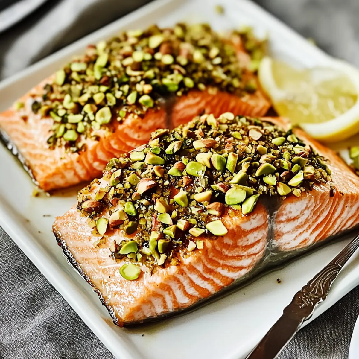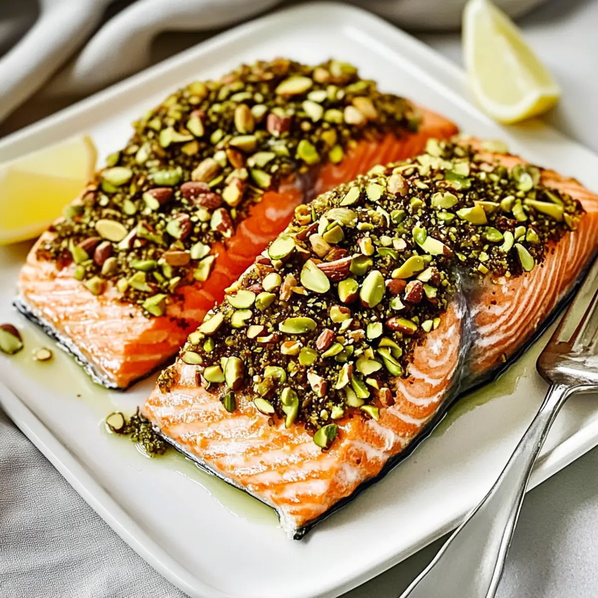 • Marinade Option: Marinate the salmon with garlic, soy sauce, and ginger before coating it. This adds a delightful depth of flavor that complements the pistachio crust beautifully.