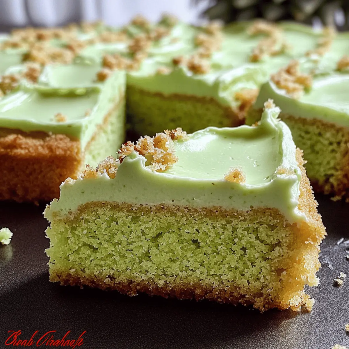 Jump to Recipe Print RecipeI was chatting with a friend the other day when she mentioned her nostalgic love for tropical desserts, and suddenly, the memory of my favorite Pistachio Pineapple Cake rushed back. This gem is not just any cake; it’s an effortless, one-bowl wonder that brings together the delightful flavors of creamy pistachio pudding and sweet, juicy pineapple. Perfect for potlucks, gatherings, or simply a cozy night in, it’s a heartwarming blend of nostalgic charm and refreshing taste that’s bound to please everyone. Plus, who doesn’t love a quick cake recipe that requires minimal fuss yet delivers maximum joy? Get ready to treat yourself and your loved ones to a slice of this tropical paradise—what’s holding you back from giving it a try? What makes Pistachio Pineapple Cake special? Simplicity at Its Best: With just one bowl needed, this recipe is as easy as it gets—great for beginner bakers! Tropical Flavor Explosion: The blend of creamy pistachio pudding and sweet crushed pineapple takes your taste buds on a delightful journey to the tropics. Nostalgic Delight: This cake isn’t just food; it’s a throwback to simpler times, making it perfect for family gatherings or potlucks. Versatile Appeal: Enjoy it with a scoop of vanilla ice cream or alongside a refreshing iced tea, just like you’d love with a classic Moist Strawberry Shortcake on a warm day. Time-Saving Goodness: Bake it ahead for the best flavor, allowing you to spend more time enjoying life and less time in the kitchen. Crowd-Pleaser: This cake is bound to impress anyone who tries it, leaving them coming back for more every time! Pistachio Pineapple Cake Ingredients For the Cake Yellow Cake Mix – This is the base of the cake; for a lighter color, you can substitute with white cake mix but avoid chocolate varieties that might overpower the flavor. Instant Pistachio Pudding Mix – You’ll need one for the cake and another for the frosting; be sure to use instant, as cook-and-serve won’t yield the right texture. Crushed Pineapple (with juice) – This ingredient adds moisture and sweetness; fresh pineapple isn’t recommended due to enzyme content that may interfere with the pudding. Large Eggs – These bring crucial structure and richness to your cake. Vegetable Oil – Adds moisture to the cake; feel free to swap it with melted coconut oil for an extra punch of flavor. For the Frosting Cold Milk – Used to prepare the frosting; any milk works, but keep flavored options away to maintain purity of taste. Cool Whip or Whipped Topping – This creates a fluffier, mousse-like frosting; you can substitute it with stabilizing homemade whipped cream. Get ready to enjoy this Pistachio Pineapple Cake that beautifully combines flavors in a delightful tropical treat! Step‑by‑Step Instructions for Pistachio Pineapple Cake Step 1: Preheat and Prepare Begin by preheating your oven to 350°F (175°C). While the oven warms, take a 9×13-inch baking pan and grease it lightly with cooking spray or butter to ensure the cake doesn’t stick. This foundational step is crucial for achieving a perfectly baked Pistachio Pineapple Cake. Step 2: Mix the Cake Batter In a large mixing bowl, combine the yellow cake mix, one box of instant pistachio pudding mix, and the crushed pineapple (juice included). Add in the large eggs and vegetable oil, then mix with an electric mixer on medium speed until just combined, about 2 minutes. Be careful not to overmix; you want a light and airy texture for your cake. Step 3: Pour and Smooth Gently pour the batter into your prepared baking pan. Using a spatula, smoothly spread the batter into an even layer, ensuring it’s distributed neatly in the corners of the pan. This will help the Pistachio Pineapple Cake bake evenly and rise beautifully, giving you that delightful fluffy texture. Step 4: Bake to Perfection Place the baking pan in the preheated oven and bake for 30-35 minutes. Keep an eye on your cake, and start testing for doneness around the 28-minute mark by inserting a toothpick in the center; it should come out clean or with just a few crumbs attached. Once done, remove the cake and let it cool completely in the pan on a wire rack. Step 5: Prepare the Frosting While your cake cools, whisk together the second box of instant pistachio pudding mix with 2 cups of cold milk in a separate bowl. Continue whisking until the mixture thickens slightly, which should take about 2-3 minutes. This will create a rich and creamy frosting that perfectly complements the Pistachio Pineapple Cake. Step 6: Fold in the Topping Once the pudding mixture has thickened, gently fold in the Cool Whip or whipped topping using a spatula. Be careful not to deflate the whipped topping, as you want a light and fluffy frosting. This addition will create a decadent, mousse-like texture that enhances the cake’s tropical flavors. Step 7: Frost and Chill After the cake has cooled completely, spread the pistachio frosting evenly over the top. Use a spatula to create a smooth and even layer that covers every inch of the cake. Once frosted, refrigerate the cake for at least 1 hour before slicing to allow the frosting to set and chill for a refreshing treat. Step 8: Serve and Enjoy After chilling, slice your beautifully frosted Pistachio Pineapple Cake into squares and serve it up! This tropical dessert is perfect for gatherings or simply enjoying at home, each slice revealing its light, moist texture and delightful flavors. Make Ahead Options These Pistachio Pineapple Cake preparations are perfect for busy home cooks looking to save time! You can easily prepare the cake mixture up to 24 hours in advance by mixing all the wet and dry ingredients, then storing it in the refrigerator until you’re ready to bake. When you’re ready, pour it directly into the prepared pan and bake as usual. The frosting can also be made ahead and stored in the refrigerator for up to 3 days; just be sure to keep it covered to m