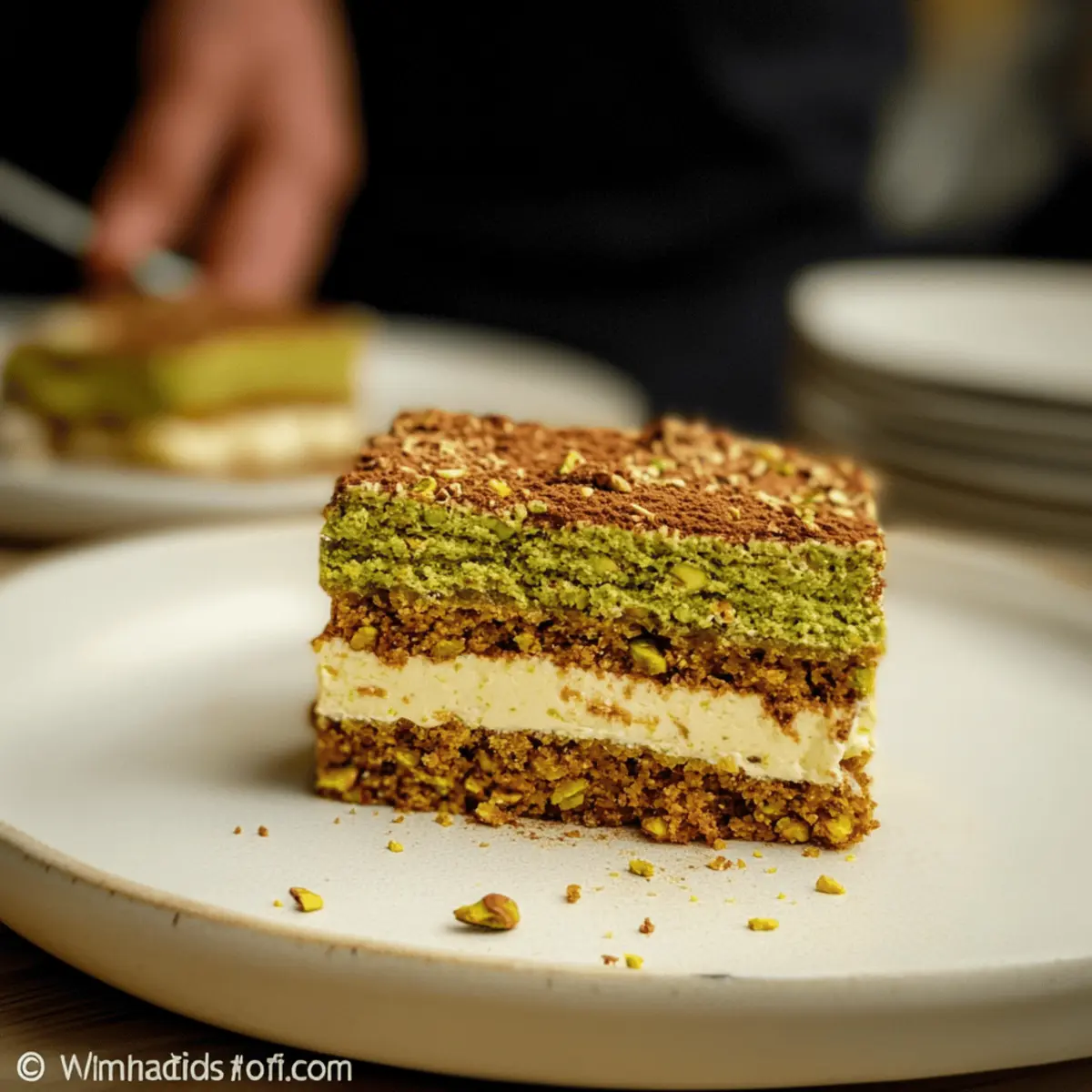 Jump to Recipe Print RecipeThere’s something magical about transforming a classic dessert into a vibrant, nutty masterpiece, and that’s exactly what this Pistachio Tiramisu accomplishes! The sumptuous layers of coffee-soaked biscuits paired with a creamy pistachio mascarpone will leave your taste buds singing. Plus, it’s egg-free, making this indulgent treat accessible for everyone, including those seeking a potential vegan delight. Best of all, this delightful dessert comes together quickly—perfect for impressing guests at your next gathering without spending all day in the kitchen. Who wouldn’t want to treat themselves to this contemporary twist on a beloved Italian favorite? Are you ready to create your new go-to dessert? Why is Pistachio Tiramisu a Must-Try? Unforgettable Flavor: The blend of nutty pistachio and robust espresso creates a taste sensation that’s both rich and refreshing. Egg-Free Delight: This recipe accommodates dietary preferences by being completely egg-free, so everyone can enjoy it without compromise. Quick Prep Time: In just 30 minutes, you can layer this dessert, making it an easy option for entertaining friends or family. Versatile Options: Feel free to experiment! With ideas like adding chocolate ganache or using other nuts, this dessert can be customized to suit any palate. Crowd-Pleaser: This showstopper is sure to impress! Whether it’s for a special celebration or a casual dinner, it’s the perfect blend of elegance and comfort. Storage Friendly: Plus, it stays delicious in the fridge for up to 5 days, ensuring you can enjoy leftovers without sacrificing quality! Pistachio Tiramisu Ingredients For the Biscuits Cake Rusk – Provides structure and absorbs espresso for the tiramisu layers; savoiardi (ladyfingers) can also work. For the Cream Mixture Double Cream – Adds a luscious richness; for a vegan version, consider using a plant-based alternative. Mascarpone Cheese – Essential for a smooth and creamy layer; cream cheese can substitute if you prefer a lighter texture. Pistachio Cream – Intensifies the pistachio flavor and creaminess; pistachio butter is a great swap if needed. Milk Powder – Thickens and stabilizes the mascarpone mixture; coconut milk powder can be used to keep it vegan. Powdered Sugar – Sweetens the cream; adjust to your desired sweetness level. For the Soaking Liquid Espresso – Provides a robust flavor for soaking the biscuits; brewed coffee can replace it for a milder taste. For the Garnish Ground Pistachios – Adds a delightful crunch and visual appeal on top; crushed nuts of your choice can also be used. Enjoy creating this beautiful and flavorful Pistachio Tiramisu that redefines a classic dessert! Step‑by‑Step Instructions for Pistachio Tiramisu Step 1: Whip the Cream Begin by pouring the double cream into a large mixing bowl. Using an electric mixer, whip the cream on medium speed until it reaches soft peaks, which should take about 3-4 minutes. Once ready, fold in the mascarpone cheese, pistachio cream, a splash of vanilla extract, cornflour, and milk powder. Mix gently with a spatula until the mixture is smooth and creamy, achieving a velvety texture that will make the Pistachio Tiramisu irresistible. Step 2: Soak the Biscuits Prepare your espresso by brewing a fresh cup, allowing it to cool slightly for about 5 minutes. Take your cake rusk (or ladyfingers) and quickly dip each piece into the warm espresso for just a second, ensuring they absorb the coffee flavor without becoming overly soggy. Lay the soaked biscuits flat on a serving dish, creating an even layer that will serve as the base for your dessert. Step 3: Layer the Cream Once your first layer of biscuits is in place, it’s time to spread half of the pistachio mascarpone mixture over the soaked biscuits. Use a spatula to gently distribute the cream evenly, making sure it reaches the corners of the dish. The creamy layer should be smooth and luscious, forming a perfect contrast to the texture of the biscuits. Step 4: Repeat the Soaking and Layering Next, repeat the process by dunking the remaining cake rusk into the espresso and layering them on top of the mascarpone cream. Make sure to do this quickly to maintain the ideal texture. Once the second layer of biscuits is arranged, finish by spreading the remaining pistachio mascarpone cream on top, smoothing the surface with your spatula for a beautiful presentation. Step 5: Refrigerate to Set Cover the dish tightly with plastic wrap or a lid, and place it in the refrigerator. Allow the Pistachio Tiramisu to chill for at least 6 hours, or ideally overnight. This resting period is crucial as it helps the layers meld together, enhancing the flavors and creating a firmer texture that will hold up beautifully when sliced. Step 6: Garnish and Serve Before serving your delightful Pistachio Tiramisu, take it out of the refrigerator and remove the cover. Sprinkle ground pistachios generously over the top for an added crunch and visual appeal. Slice into perfect portions and serve chilled to appreciate the harmonious blend of coffee-soaked biscuits and creamy pistachio layers. What to Serve with Nutty Pistachio Tiramisu Elevate your dessert experience with delightful accompaniments that beautifully complement the rich, nutty allure of this creamy creation. Fresh Berries: A burst of tartness from strawberries or raspberries adds a refreshing contrast to the sweet tiramisu, balancing flavors perfectly. Vanilla Ice Cream: Scoops of creamy vanilla ice cream provide a luscious coolness that enhances every rich bite of the pistachio tiramisu. A heavenly combination! Espresso Affogato: Pouring hot espresso over a scoop of ice cream creates a delightful pairing by echoing the tiramisu’s flavors while adding a wonderful temperature contrast. Mint Leaves: A sprinkle of fresh mint not only adds a pop of color but also introduces a refreshing herbal note that elevates the dessert’s richness. Dark Chocolate S