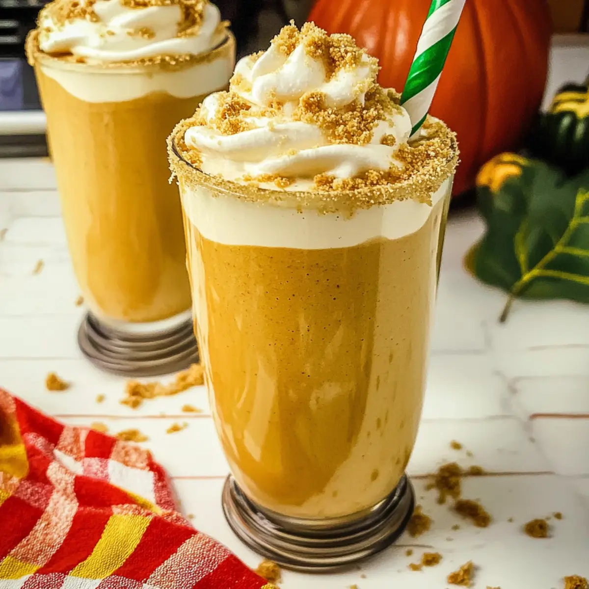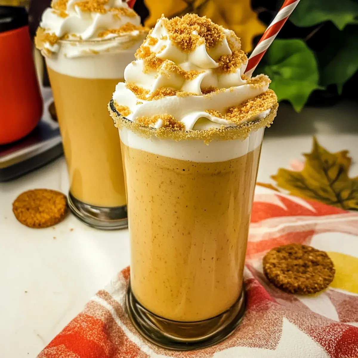 Jump to Recipe Print RecipeAs the air grows crisp and the leaves begin their glorious transformation, it’s time to indulge in a fall favorite—Pumpkin Milkshake! This delightful dessert beverage combines the warmth of pumpkin spice with the creamy texture of ice cream, creating a luscious treat that celebrates the best flavors of the season. I love how quick and easy it is to whip up this pumpkin milkshake; it’s perfect for those bustling weeknights or festive gatherings with friends and family. Plus, you can easily adapt it to be dairy-free or vegan, ensuring everyone can enjoy this seasonal delight. Are you ready to savor autumn in every sip? Let’s dive into this creamy concoction! Why is this Pumpkin Milkshake the Best? Rich, Creamy Texture: Enjoy a milkshake that embodies the essence of fall, with its sumptuous blend of pumpkin and ice cream creating a texture that’s simply irresistible. Versatile Options: Whether you’re craving a classic dessert or seeking a dairy-free alternative, this recipe allows for easy substitutions to cater to everyone’s palate. Quick and Easy: Ready in minutes, this milkshake is perfect for busy weekdays or unexpected guests craving a cozy treat. Seasonal Flavors: Packed with warm pumpkin spice, each sip evokes the golden hues of autumn, making it a perfect comfort drink for chilly evenings. Crowd-Pleaser: Serve it at gatherings or cozy nights in, and watch everyone fall in love with this festive beverage. For a fun twist, try pairing it with Pumpkin Cream Cheese muffins for an unforgettable seasonal pairing! Pumpkin Milkshake Ingredients • Perfect for your cozy fall treat! For the Milkshake Vanilla Ice Cream – A creamy foundation for the milkshake; opt for dairy-free ice cream for a vegan delight. Cold Milk – Adjusts the milkshake’s thickness; any type of milk works, including almond or oat milk for a dairy-free option. Pumpkin Puree – The star of the show, providing flavor and texture; ensure it’s smooth for the best results. Brown Sugar – Adds sweetness with a hint of caramel; consider maple syrup for a unique twist. Pumpkin Pie Spice – Essential for that warm fall flavor; substitute with a mix of cinnamon and nutmeg if necessary. For Garnishing Graham Cracker Crumbs – Ideal for rimming the glass with a crunchy touch; crushed cookies can work in a pinch. Sugar Water – Use for rimming the glass; a simple syrup can achieve similar results for a sweet finish. Whipped Cream – Heightens the indulgence; feel free to add your favorite toppings like a sprinkle of cinnamon! This delightful Pumpkin Milkshake is just a blend away—let’s dive in! Step‑by‑Step Instructions for Pumpkin Milkshake Step 1: Prepare the Glasses Start by preparing your serving glasses. Using a small brush or your fingers, coat the rims of two glasses with sugar water. Next, dip the rims into graham cracker crumbs, rotating until evenly coated. This step adds a delightful crunch and presentation to your Pumpkin Milkshake, making it even more inviting as you set the mood for a cozy fall treat. Step 2: Blend the Ingredients In a blender, combine 2 cups of cold milk, 1 cup of pumpkin puree, 1 cup of vanilla ice cream, ¼ cup of brown sugar, and 1 teaspoon of pumpkin pie spice. Blend on high for about 30-45 seconds, or until the mixture is smooth and creamy. If you prefer a thicker milkshake, you can add more vanilla ice cream to achieve your desired consistency while blending. Step 3: Serve the Milkshake Once blended, pour the creamy mixture into the prepared glasses, filling them about three-quarters full, allowing room for your toppings. This Pumpkin Milkshake is already irresistibly thick and flavorful, so ensure each glass gets equal portions of that autumn essence. Step 4: Add Toppings To elevate your Pumpkin Milkshake experience, top each glass with a generous swirl of whipped cream. Add a sprinkle of leftover graham cracker crumbs or a dash of cinnamon on top for added flavor and texture. This final touch not only enhances the visual appeal but also complements the delicious flavors within the milkshake. Step 5: Enjoy the Moment Take a moment to admire your creation before diving in! Grab a straw or a spoon and relish the rich, creamy Pumpkin Milkshake that embodies the flavors of fall. Sip slowly and enjoy the warmth of pumpkin spice as it captures the essence of the season in every delightful gulp. How to Store and Freeze Pumpkin Milkshake Fridge: Store leftover pumpkin milkshake in an airtight container for up to 24 hours. However, it’s best enjoyed fresh to preserve the creamy texture and flavor. Freezer: If you want to save it longer, freeze the milkshake in ice cube trays. Blend the cubes back into a milkshake later for a refreshing treat! Reheating: Thaw freezer cubes at room temperature or microwave briefly to soften before blending again. Note that the texture may change slightly after freezing. Separation Tip: Give the stored pumpkin milkshake a good stir before enjoying, as ingredients may separate while in the fridge. What to Serve with Pumpkin Milkshake As you indulge in this creamy autumn delight, consider these scrumptious pairings that elevate your cozy fall experience. Spiced Apples: Warm, cinnamon-infused apples add a delightful contrast in texture and enhance the fall vibe of your milkshake. Pumpkin Spiced Muffins: These soft, sweet treats harmonize perfectly with the flavors in your milkshake, making every bite a nostalgic journey through autumn. Ginger Snap Cookies: Crunchy with a hint of spice, these cookies offer a deliciously contrasting texture that complements the creamy milkshake beautifully. Chai Tea: A warm cup of spiced chai seamlessly ties together the warm flavors of fall, providing a comforting drink alongside your milkshake. Cheesecake Bites: Rich and creamy, these small bites create a decadent pairing, balancing the sweetness of the milkshake with their tangy flavor. Caramel Popcorn: This delightful snack brin