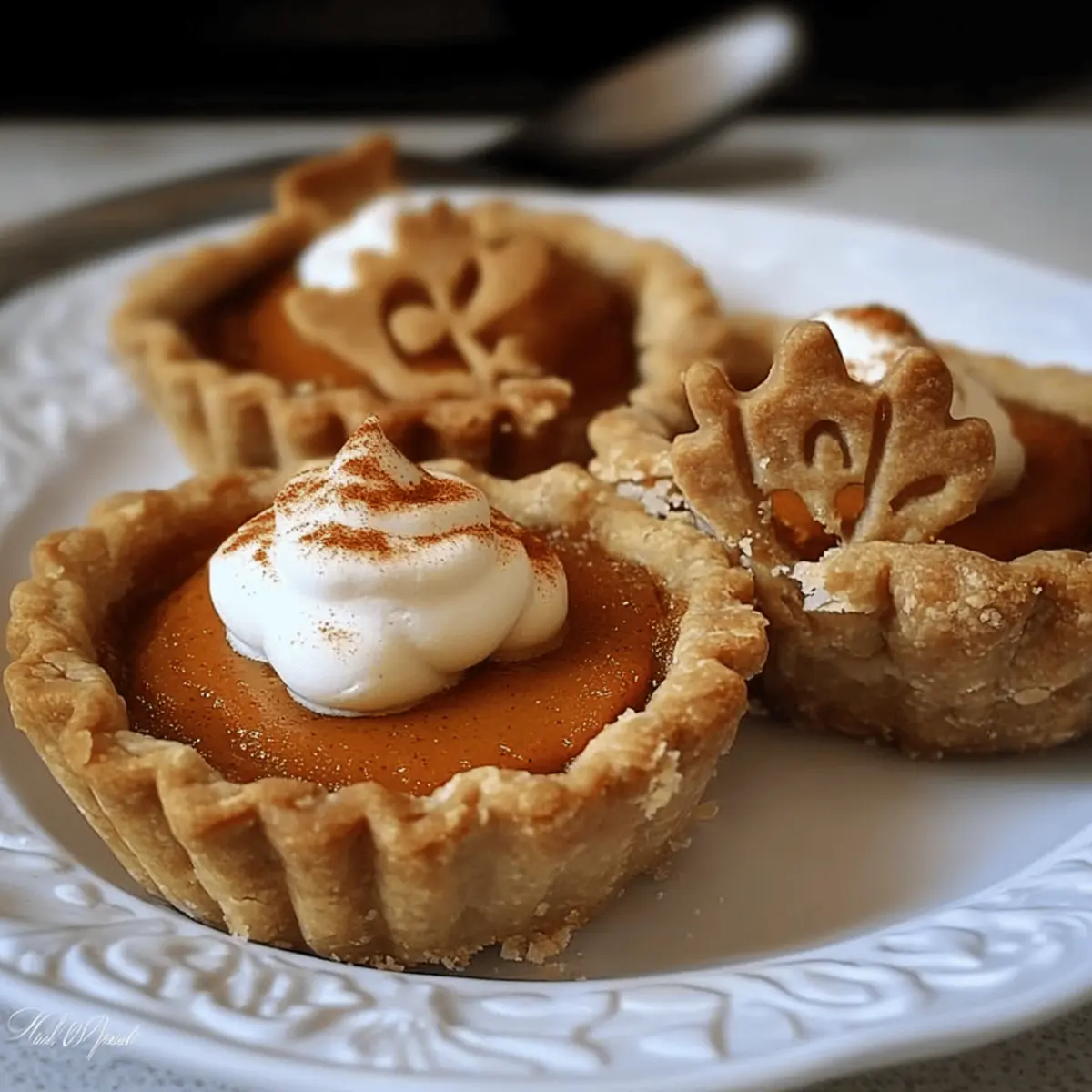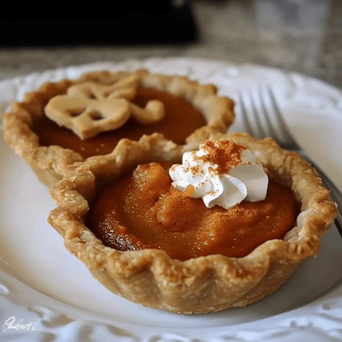 Jump to Recipe Print RecipeAs I was decorating my home for fall, the scent of cinnamon and nutmeg filled the air, instantly transporting me to cozy gatherings and warm kitchens. There’s something enchanting about autumn, and what better way to celebrate than with these Easy Mini Pumpkin Pies? Designed for effortless preparation with ready-made pie crusts, these delightful treats combine the comforting flavors of pumpkin and spice in a perfectly portioned snack. Not only are they a breeze to whip up—ideal for those hectic days—they’re also a budget-friendly option that doesn’t skimp on flavor. Whether you’re hosting a festive gathering or simply craving a tasty dessert, these Pumpkin Pie Mini Desserts are bound to impress. Are you ready to bring the taste of fall into your home? Why are Mini Pumpkin Pies a Must-Bake? Simplicity is key! These Easy Mini Pumpkin Pies come together in no time using ready-made pie crusts, making them a perfect choice for those busy afternoons. Flavor-packed with traditional pumpkin spices, each bite brings a cozy taste of fall that everyone will adore. Versatile enough for any occasion, they shine at dessert tables or casual family gatherings. Crowd-pleasing portions ensure you’re never left with too much, while being budget-friendly makes them ideal for anyone looking to indulge without breaking the bank. For additional flavor inspirations, check out my Mini Cheesecakes New for more tempting bites! Pumpkin Pie Mini Dessert Ingredients • The perfect blend of flavors awaits! For the Crust Ready-made pie crust – Convenience at its best; opt for a pre-rolled version for effortless assembly. For the Filling Canned pumpkin pie mix – The star of the show; choose a high-quality mix for optimum taste. Evaporated milk – Adds luxurious creaminess; can be swapped with coconut milk for a delightful dairy-free twist. For the Topper Fall-themed cookie cutters – These are optional but will elevate your presentation beautifully; consider using shapes like leaves or acorns for that seasonal flair. These Pumpkin Pie Mini Desserts are not just tasty but also incredibly easy to prepare! Step‑by‑Step Instructions for Pumpkin Pie Mini Dessert Step 1: Prepare the Crusts Begin by preheating your oven to the temperature recommended for your ready-made pie crust. Roll out the crust on a lightly floured surface and use a 4-inch round cookie cutter to create circles. Press each circle gently into the cups of a greased cupcake pan, ensuring they fit snugly and form a little cup. This will be the cozy base for your Pumpkin Pie Mini Dessert. Step 2: Fill the Pies Using a measuring cup, carefully pour the canned pumpkin pie mix into each prepared crust until filled to the edge. Take your time to avoid overfilling, as this might lead to spills during baking. Once filled, you should see that the vibrant orange filling peeks through the crust beautifully. Now, it’s time to get those mini pies into the oven! Step 3: Add Decor After baking your mini pies for about 13 minutes, the crust should be just starting to turn a light golden brown. While they bake, reroll any scraps of crust to create fun fall-themed cutouts using cookie cutters. Brush these decorative pieces lightly with evaporated milk for a lovely glaze, and place them on top of the pies when they are done baking. Step 4: Bake to Perfection Lower the oven temperature to 350°F after the initial baking time. Bake the mini pumpkin pies for an additional 10-15 minutes, or until the filling is set and a toothpick inserted in the center comes out clean. Watch for a slight puffiness in the filling; that’s your cue that the texture will be just right for these delightful treats. Step 5: Cool and Serve Once baked, remove the Pumpkin Pie Mini Desserts from the oven and let them cool in the pan for about 10 minutes. Carefully transfer them to a wire rack to cool completely, or serve them warm. Enjoy them plain or with a dollop of whipped cream for a festive touch, perfect for autumn gatherings. Pumpkin Pie Mini Dessert Variations Feel free to put your own spin on these delightful mini pumpkin pies; your creativity can shine through in every bite! Dairy-Free: Swap evaporated milk for coconut milk for a rich, creamy option that’s also dairy-free. The subtle coconut flavor will blend beautifully with the pumpkin spices. Sweet Potato Twist: Replace canned pumpkin pie mix with sweet potato puree for a unique flavor while keeping that cozy autumn essence. The sweetness pairs perfectly with warm spices. Nutty Delight: Add chopped pecans or walnuts to the filling for delightful crunch and texture. This added layer brings a rustic vibe to your mini pies, enhancing their overall heartiness. Spice It Up: Experiment with your spice blend by incorporating cardamom or allspice for an extra flavor profile. A pinch of fresh ginger would elevate the warmth even further, making each bite irresistibly exciting! Mini Cheesecake Layer: Create a luscious layer at the bottom of each crust using cream cheese mixed with sugar and vanilla and then top with pumpkin pie filling. This twist adds a creamy texture that pairs wonderfully with the pumpkin. Choco-Pumpkin Fusion: Drizzle melted chocolate on top or mix chocolate chips into the filling for a decadent twist that will satisfy those chocolate cravings while maintaining the essence of fall flavors. Flavorful Glaze: Brush the finished pies with a maple syrup glaze for an extra touch of sweetness and shine. This adds beautiful richness and enhances the fall theme, making them even more enticing. Serve with Whipped Goodness: Don’t forget to top these mini pies with whipped cream or serve alongside a scoop of vanilla ice cream, creating a delightful balance of flavors and textures. For more dessert ideas, why not indulge in these tempting Mini Cheesecakes New or the luxurious Cream Cheese Pie as companion treats? With these variations, your Pumpkin Pie Mini Desserts will be as exciting as