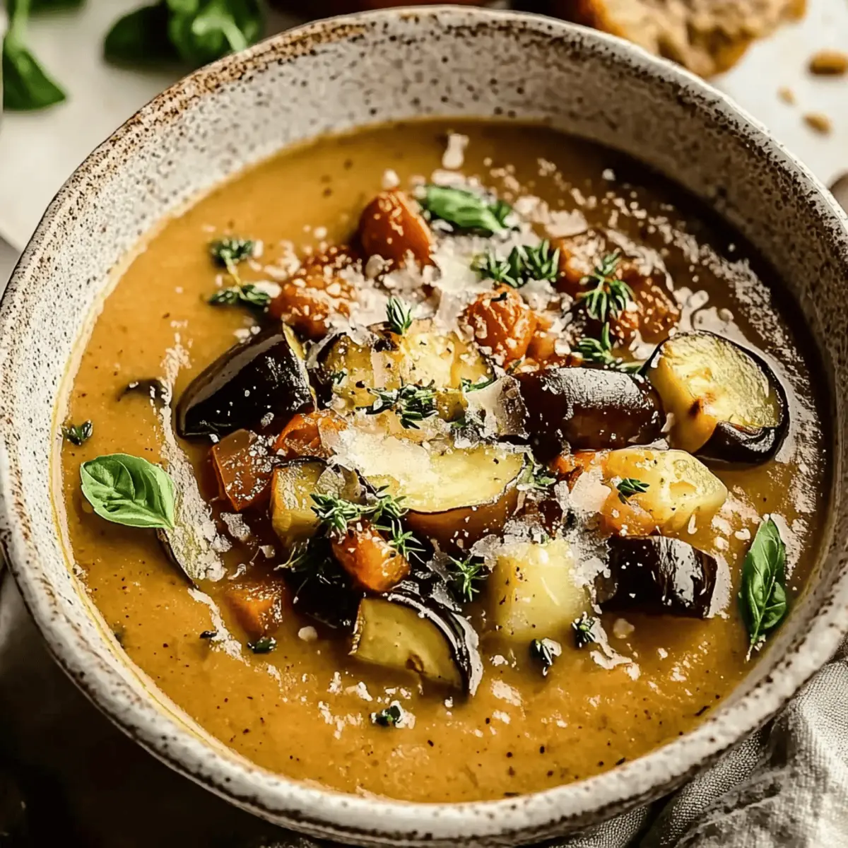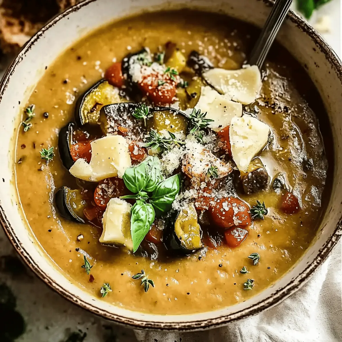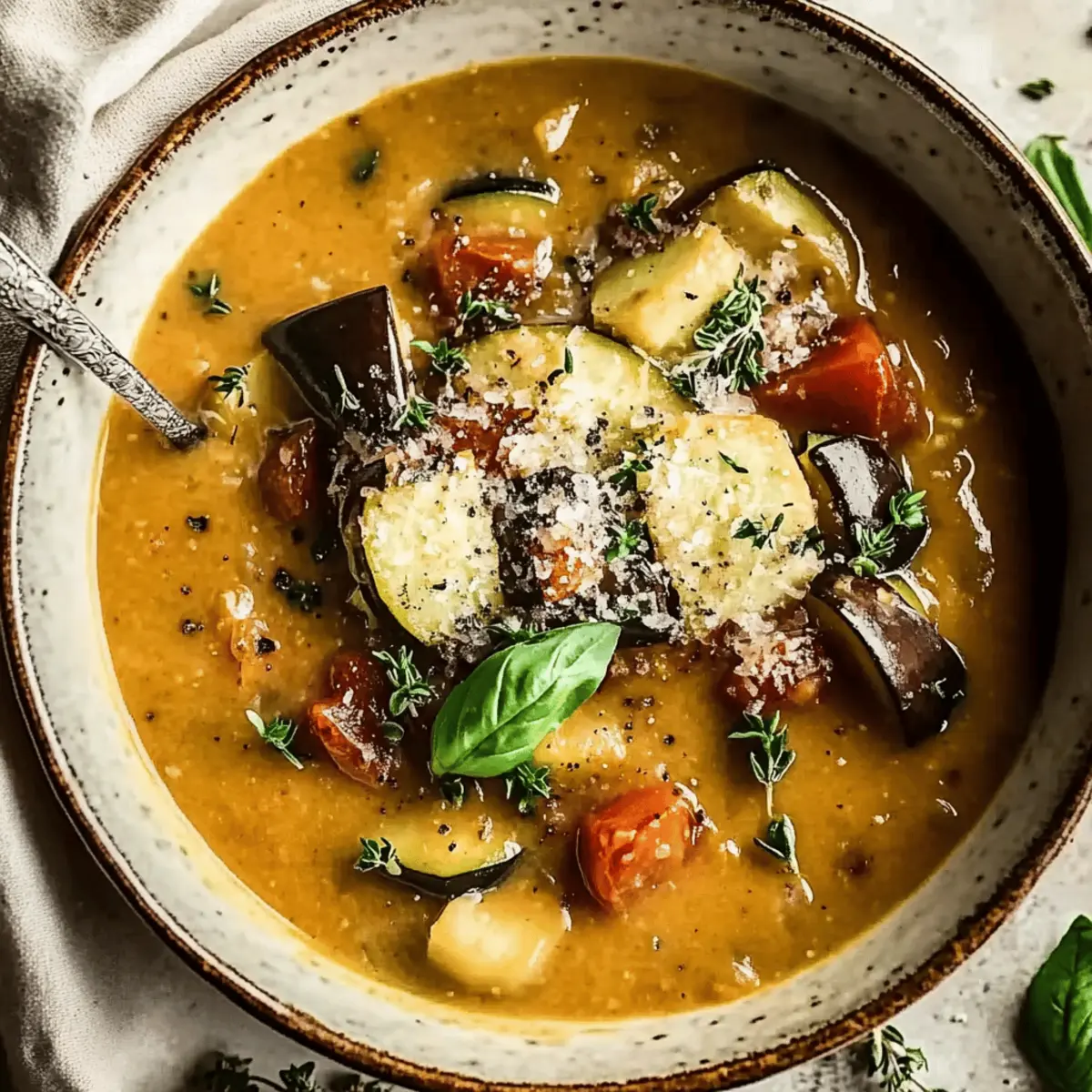 Jump to Recipe Print RecipeAs the days grow shorter and a hint of chill fills the air, there’s something incredibly soothing about a steaming bowl of soup. My Hearty Ratatouille Soup is like a warm hug on a plate, combining the rich flavors of eggplant, zucchini, and tomatoes to create a nourishing, vegetarian delight. This cozy dish is not only quick to prepare but also perfect for those evenings when you want to gather with family around the table, enjoying a hearty meal that satisfies. Plus, the vibrant colors of summer’s bounty bring a little joy to dreary days. Shall we dive into this delicious journey together and discover how to create this comforting soup? Why Is Ratatouille Soup So Special? Comforting warmth: This soup delivers a cozy embrace on cold days, perfect for warming your heart and soul. Flavorful blend: Each spoonful is packed with the vibrant tastes of summer vegetables like zucchini and eggplant. Quick & easy: With simple preparation and cooking steps, you can whip this up in no time—ideal for busy weeknights! Crowd-pleaser: Whether you’re feeding a family or hosting friends, this dish appeals to both vegetarians and meat-lovers alike. Meal prep friendly: Make it ahead and enjoy delicious leftovers that only improve in flavor—consider pairing it with a crusty bread for a filling meal. Explore other comforting soups like Crock Pot Soup or Olive Garden Soup for more cozy options! Ratatouille Soup Ingredients • The vibrant flavors are waiting! For the Soup Base Olive Oil – Provides healthy fat for sautéing vegetables; avocado oil offers a nice flavor substitute. Onion – Base flavor that adds a natural sweetness; shallots can be a milder alternative. Garlic – Adds aromatic depth; fresh garlic is recommended for the best taste. Red Bell Pepper – Provides sweetness and color; yellow or green bell peppers can easily work in its place. Yellow Bell Pepper – Similar functions to red varieties; for a spicier kick, try jalapeño instead. Zucchini – Adds moisture and texture; summer squash can substitute nicely. Eggplant – Contributes a hearty texture; mushrooms can also bring a different umami flavor. Crushed Tomatoes (28 oz) – Forms the soup’s rich base; about 2-3 cups of fresh tomatoes can be used. Tomato Sauce (15 oz) – Adds depth and smoothness; more crushed tomatoes can replace it if needed. Vegetable Broth (4 cups) – Acts as the liquid base; chicken broth can be used for non-vegetarian guests. Herbs & Seasonings Dried Oregano – Adds an earthy flavor; fresh oregano can be used at double the amount. Dried Basil – Brings sweetness and aroma; fresh basil is ideal when added at the end of cooking. Dried Thyme – Compliments vegetable flavors; herb mixes are great in a pinch. Red Pepper Flakes – Optional, adds a touch of heat; a splash of hot sauce can replace it for some zing. Salt and Black Pepper – Essential for seasoning; adjust to taste for the perfect flavor balance. For Garnishing Fresh Basil Leaves – Enhances flavors and adds a fresh touch; parsley can be a nice substitute. Crusty Bread – Complements the soup beautifully; artisan or sourdough bread are excellent choices. Dive into the making of this delightful Ratatouille Soup and feel the warmth of home-cooked love in every bite! Step‑by‑Step Instructions for Ratatouille Soup Step 1: Prepare Ingredients Begin by washing and chopping all your vegetables. Dice the onion, mince the garlic, and chop the red and yellow bell peppers, zucchini, and eggplant into uniform ½-inch pieces. This helps with even cooking and creates a delightful blend of flavors in your Ratatouille Soup. Arrange the prepared vegetables together for an organized cooking process. Step 2: Sauté Vegetables In a large pot, heat 2 tablespoons of olive oil over medium heat until shimmering. Add the diced onion and sauté for 5-7 minutes, or until softened and translucent. Next, add the minced garlic, stirring for about 1 minute until fragrant. Add the bell peppers, cooking for an additional 5 minutes, followed by the zucchini and eggplant. Continue to sauté the mixture until the vegetables are fork-tender, about 5-7 minutes. Step 3: Combine and Simmer Once the vegetables are ready, stir in the 28 oz of crushed tomatoes and 15 oz of tomato sauce, ensuring everything is well combined. Pour in 4 cups of vegetable broth, and add the dried oregano, basil, thyme, salt, and black pepper to taste. Increase the heat until a gentle simmer is reached, then reduce the heat, cover the pot, and let the Ratatouille Soup cook for 30-60 minutes, stirring occasionally to blend the flavors. Step 4: Adjust Seasoning After simmering, taste your Ratatouille Soup and adjust the seasoning as needed. If you prefer a creamier texture, take a ladle of the soup and blend it until smooth, then stir it back into the pot. Let it simmer for another 5 minutes, allowing the flavors to meld beautifully. Step 5: Serve and Garnish Ladle the steaming Ratatouille Soup into bowls, and garnish with fresh basil leaves for a burst of flavor. For a delightful meal, serve alongside crusty bread for dipping. Enjoy the warm colors and satisfying aromas that fill your kitchen as you savor each comforting spoonful! Ratatouille Soup Variations & Substitutions Feel free to get creative with your Ratatouille Soup! Customizing this recipe can enhance flavors or accommodate dietary needs, making it truly your own. Dairy-Free: Substitute any cheese or cream with a splash of coconut milk for a creamy texture without the dairy. Spicy Kick: Add diced jalapeños or extra red pepper flakes to amp up the heat and awaken your taste buds. Mushroom Medley: Swap eggplant for a mix of your favorite mushrooms, providing a delightful earthy flavor and unique texture. Herb Explosion: Instead of dried herbs, substitute fresh versions for a vibrant burst of flavor; just double the amount since they’re more subtle. Greens Galore: Toss in a handful of fresh spinach or kale 