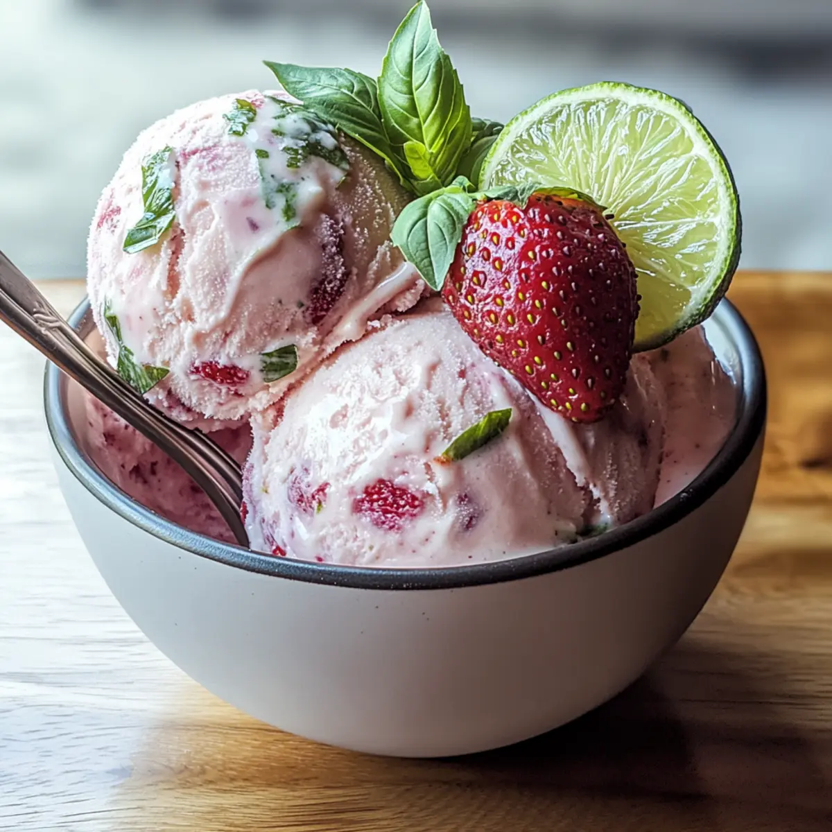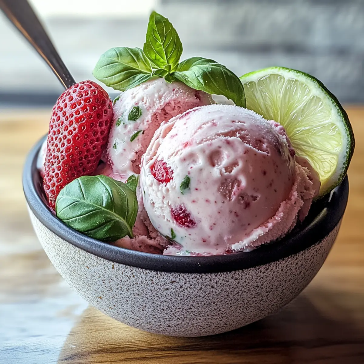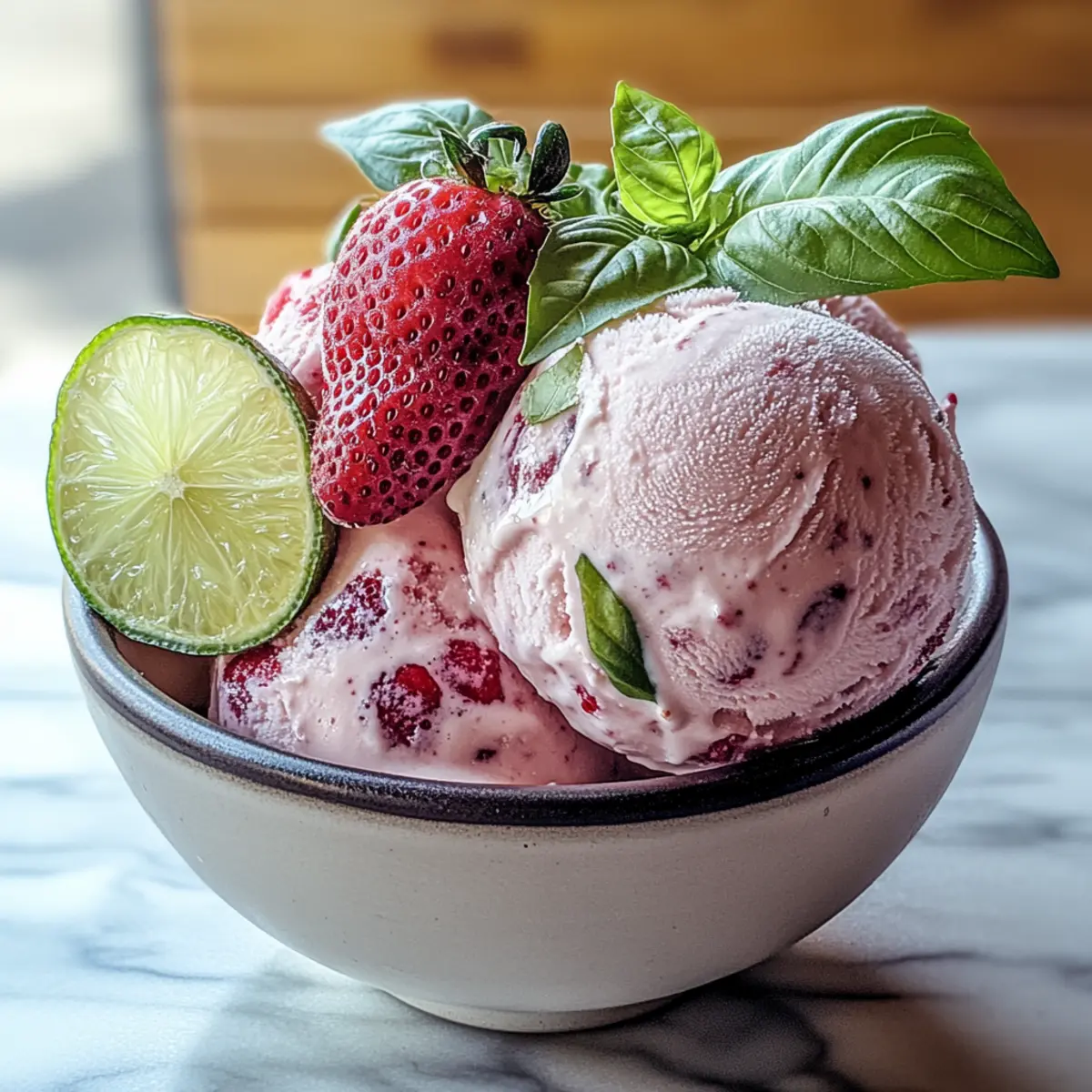This Roasted Strawberries & Lime Basil Ice Cream combines rich flavors of caramelized strawberries, zesty lime, and aromatic basil for a refreshing dessert.