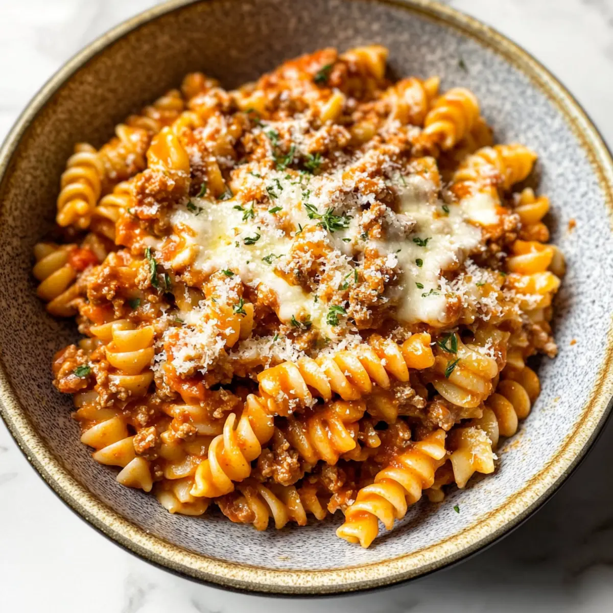 Jump to Recipe Print RecipeAs I stood in my kitchen, trying to decide what to whip up for dinner, the clock seemed to tick louder than usual. I needed something quick yet satisfying, and that’s when my go-to One Pot Cheesy Rotini Pasta with Ground Beef came to mind. This dish marries the comforting embrace of rich tomato sauce with tender rotini pasta, savory ground beef, and gooey mozzarella cheese—all prepared in just one pot! Not only does it turn a hectic weeknight into a stress-free cooking experience, but it also guarantees a happy crowd at the dinner table. Plus, the cleanup is a breeze, giving you more time to enjoy good food and great company. Ready to dive into a dinner that pleasures both your taste buds and your busy schedule? Let’s get started! Why is One Pot Cheesy Rotini Pasta a Winner? Flavor Explosion: The combination of savory ground beef, tangy tomato sauce, and melted mozzarella creates a delightful symphony of flavors that will have everyone asking for seconds. Effortless Cooking: With just one pot, you’ll save precious time and minimize cleanup – perfect for busy weeknights or when preparing meals for the family. Kid-Friendly: This dish is a crowd-pleaser, appealing to young and old alike. Serve it with a side salad for a well-rounded meal the whole family will enjoy! Gourmet Comfort: You’ll feel like a chef with this homemade twist on traditional comfort food. Plus, you can easily customize it by adding your favorite veggies or swapping ground beef for Italian sausage! For another quick and delicious option, check out Buffalo Chicken Pasta or for a lighter meal, try Chicken Broccoli Pasta. Rotini Pasta Ingredients • The essential components for your delightful One Pot Cheesy Rotini Pasta! For the Pasta Dish Lean Ground Beef – A hearty protein source; feel free to substitute with ground turkey or chicken for a leaner twist. Tomato Paste – Intensifies the tomato flavor; if you’re in a pinch, tomato sauce works just fine. Garlic – Freshly minced offers aromatic depth; you can swap in garlic powder for a quicker alternative. Onion Powder – Adds a savory undertone; fresh chopped onions can be sautéed if preferred. Sugar – Helps balance the acidity of tomatoes; it’s optional and can be left out if desired. Dried Oregano – Brings Mediterranean flair; Italian seasoning is a great substitute for more herbaceous complexity. Italian Seasoning – A delightful herb blend to complement the pasta. Salt – Essential for enhancing flavor; adjust according to your dietary needs. Crushed Red Pepper Flakes – Optional for some heat; simply omit if you prefer a milder meal. Beef Broth – Provides moisture; a vegetable broth can lighten it up for a vegetarian option. Crushed Tomatoes – Forms the sauce’s flavorful base; canned diced tomatoes can replace if needed. Uncooked Rotini Pasta – The central carb that soaks up all that cheesy goodness; choose gluten-free pasta for a better fit for dietary needs. Shredded Mozzarella – Melts into a creamy delight; feel free to use fontina or cheddar as a variation. Pepper – Add to taste for final seasoning. Freshly Grated Parmesan Cheese & Fresh Basil – Optional but delightful garnishes to elevate your dish. With these fantastic ingredients on hand, you’re only moments away from turning your busy night into a delicious and fulfilling dinner! Enjoy this comforting, cheesy rotini pasta creation that will surely please everyone at your table. Step‑by‑Step Instructions for One Pot Cheesy Rotini Pasta with Ground Beef Step 1: Brown the Ground Beef In a large soup pot or Dutch oven, heat the pot over medium-high heat. Add in the lean ground beef and cook for 7-8 minutes, breaking it apart with a spatula until browned and no longer pink. Once fully cooked, if there’s excess fat, carefully drain it away to ensure a balanced flavor in your One Pot Cheesy Rotini Pasta. Step 2: Sauté the Aromatics Stir in the tomato paste and minced garlic, cooking for an additional minute until fragrant. This will enhance the flavor of your sauce. As the mixture cooks, the aroma of garlic will begin to waft through the air, indicating it’s time to proceed. You want the garlic to become slightly golden without burning, adding depth to the overall dish. Step 3: Add the Spices Next, sprinkle in the onion powder, sugar, dried oregano, Italian seasoning, salt, and optional crushed red pepper flakes. Mix everything well with the beef and let the spices bloom for about a minute. This step enhances the flavor profile of your One Pot Cheesy Rotini Pasta, creating a fragrant and inviting mixture before adding the liquids. Step 4: Incorporate the Liquids Pour in the beef broth and crushed tomatoes, stirring until everything is evenly combined. Increase the heat to bring the mixture to a vigorous boil. This moment is crucial as it lays the foundation of your sauce, so keep an eye on it until you see bubbles forming vigorously across the surface. Step 5: Cook the Rotini Pasta Once boiling, add the uncooked rotini pasta to the pot, stirring occasionally to prevent sticking. Lower the heat to maintain a gentle simmer and cook for about 12 minutes, or until the pasta is al dente. Keep an eye on the pasta’s texture, and give it a taste towards the end to ensure it’s cooked perfectly for your One Pot Cheesy Rotini Pasta. Step 6: Melt the Cheese After the pasta reaches the desired doneness, remove the pot from heat. Sprinkle shredded mozzarella evenly over the top and cover the pot with a lid for about 5 minutes. This will allow the cheese to melt into a creamy layer that perfectly envelops the pasta. When you uncover it, the melted mozzarella should be oozy and inviting. Step 7: Final Touches Gently toss the melted cheese into the pasta, mixing it well while seasoning with freshly ground pepper and more salt if needed. The result should be a rich and creamy dish ready to be served. Portion it out while it’s still warm, enjoying t