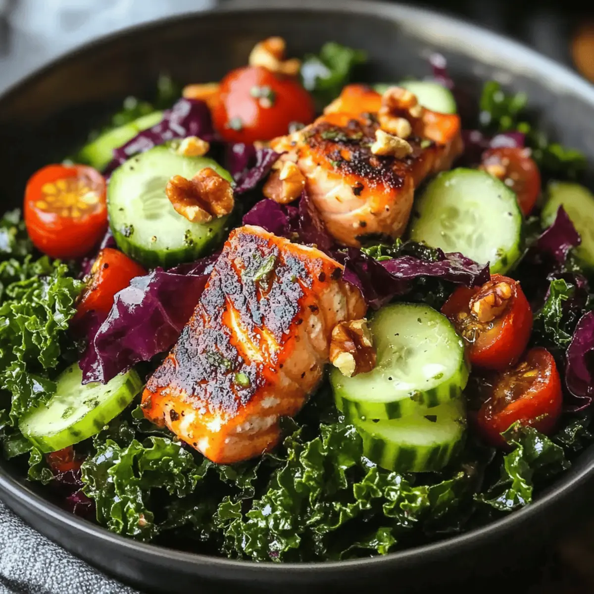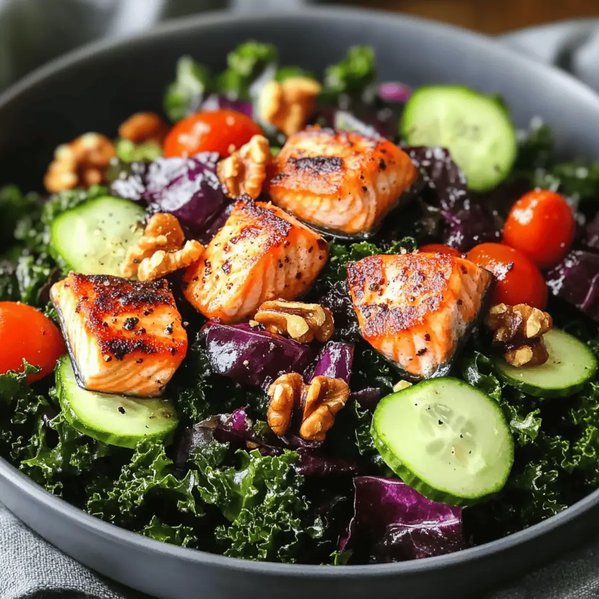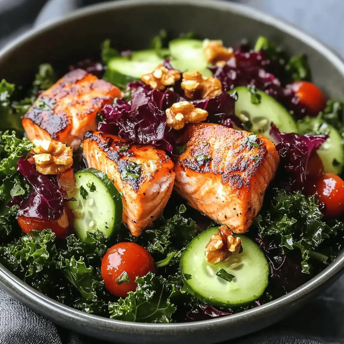 Enjoy a refreshing and nutritious Salmon Kale Salad, packed with omega-3s and customizable ingredients for a healthy meal.
