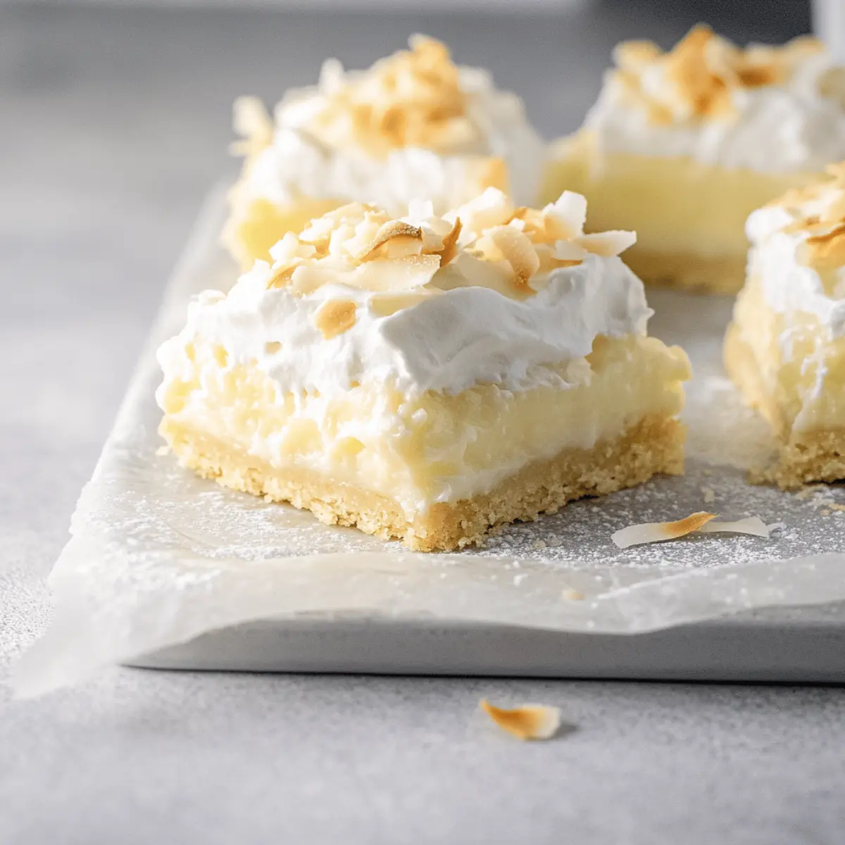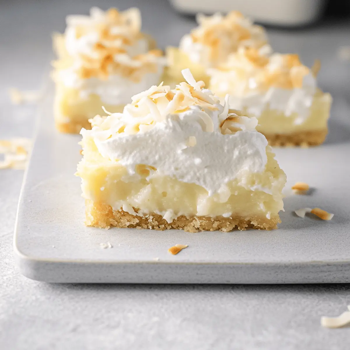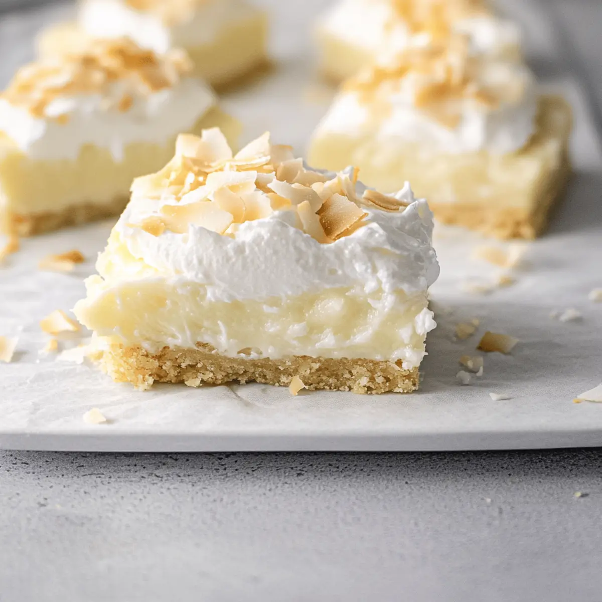Jump to Recipe Print RecipeStepping into the kitchen, the sweet aroma of coconut always takes me back to my childhood summers. It’s that nostalgic vibe that inspired me to create these Easy Coconut Cream Pie Bars with Buttery Shortbread Crust. This delightful dessert brings together a rich coconut cream filling and a light, whipped topping for a taste of paradise without the hassle of baking an entire pie. Perfect for any gathering, these bars are not only a crowd-pleaser but also incredibly easy to whip up, making them the ideal antidote to a day of fast food. With just a few simple steps, you can impress your friends and family with this homemade treat. Curious to discover how to make these delicious bars that balance creamy and crunchy perfection? Let’s dive into the recipe! Why Make Coconut Cream Pie Bars? Simplicity at Its Best: With just a handful of ingredients and straightforward steps, preparing these bars is a breeze for any home cook. Heavenly Coconut Flavor: Experience a tropical burst of flavor with the rich coconut cream filling that will transport your taste buds to paradise. Perfect for Any Occasion: Whether it’s a sunny picnic or a cozy family dinner, these bars are the ultimate dessert to impress guests at any gathering. No-Bake Chilling Technique: Just prepare, chill, and serve! There’s no need to worry about baking—these bars set perfectly in the fridge. Crowd-Pleasing Treat: Everyone loves coconut! With a buttery shortbread layer and a fluffy whipped topping, this dessert appeals to all. If you love delightful desserts that are easy to make and delicious, you might also enjoy our Cookies and Cream Cupcakes or indulge in the creamy bliss of our Moist Strawberry Shortcake Cake with Whipped Cream Frosting. Coconut Cream Pie Bars Ingredients For the Shortbread Crust All-Purpose Flour – Provides structure to the crust; you can substitute with gluten-free flour for a gluten-free version. Unsalted Butter – Adds richness; make sure it’s melted for easy mixing. Powdered Sugar – Sweetens the crust while keeping it tender; granulated sugar can be used, but texture may change. Vanilla Extract – Enhances flavor; try almond extract for a different twist. Salt – Balances flavors and enhances sweetness; use kosher salt for better control. For the Coconut Cream Filling Milk (2%) – Creates a creamy texture for the filling; whole or almond milk works as alternatives. Coconut Milk – Imparts a rich coconut flavor; full-fat gives the best results. Granulated Sugar – Sweetens the filling; coconut sugar is a lower-sugar option. Corn Starch – Thickens the pudding filling; substitute with arrowroot powder if needed. Egg Yolks – Enrich the filling; try silken tofu or a commercial egg replacer for an egg-free alternative. Unsweetened Shredded Coconut – Adds texture and flavor; for less sweetness, use unsweetened coconut flakes. For the Whipped Cream Topping Heavy Whipping Cream – Forms a fluffy topping; light cream can be a lighter alternative, but the texture may vary. Sugar (for Whipped Cream) – Sweetens the topping; opt for powdered sugar for a smoother finish. Vanilla Extract (for Whipped Cream) – Adds extra flavor; can be omitted if desired. These enticing Coconut Cream Pie Bars will surely be the highlight of your dessert table—so grab those ingredients and let’s get started! Step‑by‑Step Instructions for Easy Coconut Cream Pie Bars with Buttery Shortbread Crust Step 1: Prepare Shortbread Crust Preheat your oven to 350°F (175°C). In a mixing bowl, combine the all-purpose flour, melted unsalted butter, powdered sugar, vanilla extract, and salt. Mix until a crumbly texture forms. Press this mixture firmly into the bottom of a lined 9×13-inch baking pan. Bake for 17-20 minutes, or until the edges are lightly golden brown, then allow it to cool completely. Step 2: Make Coconut Pudding Filling In a medium saucepan, whisk together the 2% milk, coconut milk, granulated sugar, corn starch, salt, and egg yolks until fully combined. Cook over medium heat, constantly whisking, until the mixture comes to a gentle boil and thickens, about 5-7 minutes. Once thick, remove from heat and stir in the butter, shredded coconut, and a splash of vanilla extract until smooth. Step 3: Assemble Bars Pour the warm coconut pudding filling over the cooled shortbread crust, using a spatula to spread it evenly. Cover the pan with plastic wrap and place it in the refrigerator. Chill for at least 4 hours, or until the filling is set and firm, ensuring that the layers meld beautifully for the perfect Coconut Cream Pie Bars. Step 4: Prepare Whipped Cream In a mixing bowl, beat the heavy whipping cream, sugar, and vanilla extract on high speed until medium-stiff peaks form, about 2-4 minutes. Be careful not to overbeat, as you want the whipped cream to stay light and fluffy. This will be your delicious topping, ready to crown the coconut pudding. Step 5: Final Assembly Once the coconut filling is set, remove it from the refrigerator. Gently spread the whipped cream over the top of the pudding layer, smoothing it into an even layer. For an added touch of flavor, sprinkle with toasted coconut flakes if desired. Slice into bars and serve chilled for a refreshing dessert experience. What to Serve with Easy Coconut Cream Pie Bars A refreshing tropical treat like this deserves delightful companions to enhance your dessert experience. Fresh Fruit Salad: A vibrant mix of tropical fruits like pineapple, mango, and berries adds freshness and a burst of colors, perfectly complementing the creamy bars. The juicy sweetness balances the richness of the coconut filling. Chocolate Chip Cookies: The chewy texture and delightful chocolate notes of classic cookies create a wonderful contrast to the silky coconut cream. Pairing rich and sweet flavors will surely satisfy your sweet tooth. Iced Coffee: A chilled, creamy iced coffee offers a refreshing and energizing beverage option. The coffee
