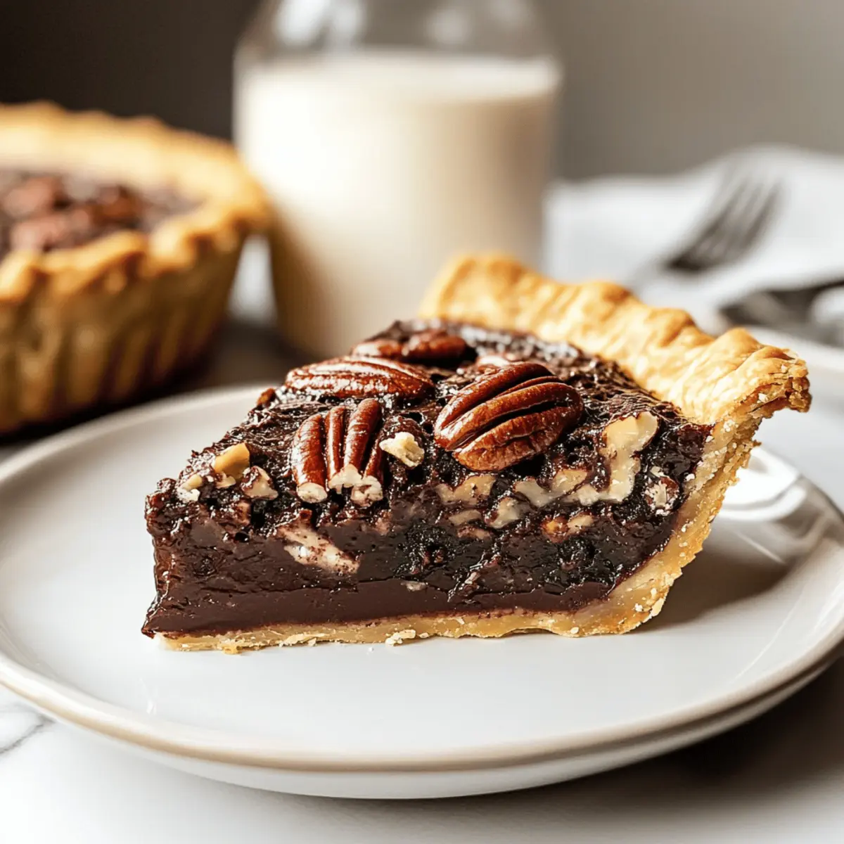 Jump to Recipe Print RecipeAs I lifted the pie from the oven, a symphony of warm scents filled the kitchen, igniting memories of cherished family gatherings. This Salted Chocolate Pecan Pie is my delightful twist on the classic, transforming the traditional dessert into something both familiar and intriguingly new. By swapping out corn syrup for rich sweetened condensed milk, I’ve created a filling that’s as fudgy as a brownie, beautifully balanced by the crunch of pecans and a sprinkle of flaky sea salt. The best part? Its quick prep makes it perfect for busy holiday baking, and it’s sure to be a crowd-pleaser at any gathering. Ready to impress your guests with this indulgent yet simple dessert? Why is this pie a must-try? Decadent Flavor: The combination of rich chocolate and crunchy pecans creates a flavor explosion that will have everyone begging for more. Quick Prep: You’ll love how simple this recipe is, making it perfect for last-minute holiday baking without sacrificing taste. Unique Twist: By using sweetened condensed milk instead of corn syrup, you’re making a pie that’s both innovative and nostalgic. Crowd-Pleasing Delight: This Salted Chocolate Pecan Pie is guaranteed to impress guests, turning any gathering into a festive celebration. Versatile Options: Feeling creative? Try different nuts or flavored chocolate to make this pie uniquely yours! Pair it with a scoop of vanilla ice cream or a slice of Cream Cheese Pie for a delightful dessert spread. Salted Chocolate Pecan Pie Ingredients For the Crust All-butter pie crust – Offers a flaky base; store-bought is a convenient option. For the Filling Pecan halves – Introduces crunch and flavor; consider adding extra for garnish. Bittersweet chocolate – Delivers a deep chocolate taste; swap for semisweet if you prefer sweeter. Unsalted butter – Provides rich flavor; browning it enhances nuttiness. Sweetened condensed milk – This key ingredient replaces corn syrup for a creamy sweetener; avoid substitutions. Brown sugar – Adds sweetness and depth; coconut sugar can be used for a less processed option. Dutch process cocoa powder – Boosts chocolate richness; regular cocoa powder works in a pinch. Eggs – Essential for binding; use room temperature for smooth mixing. Vanilla bean paste – Enriches flavor; feel free to substitute with vanilla extract if needed. Flaky sea salt – Balances sweetness; sprinkle extra on top before serving for added flavor. This delectable Salted Chocolate Pecan Pie will make any gathering feel special! Step‑by‑Step Instructions for Salted Chocolate Pecan Pie Step 1: Prepare the Pie Crust Begin by rolling out your all-butter pie crust onto a lightly floured surface. Carefully transfer the crust to a pie pan, pressing it against the edges. Use a fork to dock the base for steam release, then chill the unbaked crust in the refrigerator for 30 minutes, ensuring a flaky texture when baked. Step 2: Pre-Bake the Crust Preheat your oven to 400°F (200°C). While the oven heats, toast the pecan halves on a baking sheet for 5-7 minutes until they’re fragrant. Remove the crust from the fridge, line it with parchment paper, and fill with weights or beans. Blind bake for 15 minutes, then take out the weights and continue baking for an additional 5 minutes until lightly golden. Step 3: Make Brown Butter In a medium saucepan, melt the unsalted butter over medium-low heat. Stir continuously for 5-6 minutes until the butter turns a rich golden brown and emits a nutty aroma. Remove the pan from the heat and whisk in the chopped bittersweet chocolate until fully melted and smooth, creating a luscious chocolate mixture for your salted chocolate pecan pie. Step 4: Combine Filling Ingredients In a large mixing bowl, whisk together the sweetened condensed milk, brown sugar, and eggs until the mixture is smooth and well blended. Gradually add the melted chocolate mixture, Dutch process cocoa powder, vanilla bean paste, and a pinch of flaky sea salt. Finally, fold in the chopped pecans, ensuring they’re evenly distributed throughout the filling. Step 5: Bake the Pie Pour the decadent filling into the pre-baked pie crust, spreading it evenly. Arrange additional pecan halves on top for an appealing presentation. Bake in the preheated oven at 350°F (175°C) for 35-45 minutes, or until the edges are puffed and the center remains slightly gooey, a defining feature of a perfect salted chocolate pecan pie. Step 6: Cool and Chill Once baked, remove the pie from the oven and allow it to cool to room temperature for at least 1 hour. Then, transfer it to the refrigerator and let it chill for a minimum of 2 hours before serving, helping the flavors meld beautifully and ensuring the ideal texture. Make Ahead Options This Salted Chocolate Pecan Pie is a fantastic choice for busy home cooks looking to save time! You can prepare the crust and filling separately up to 3 days in advance. To do this, simply blind bake the crust and let it cool completely, then refrigerate it, covering tightly to maintain its crispness. Prepare the filling, and instead of baking, store it in an airtight container in the fridge. When you’re ready to serve, pour the chilled filling into the pre-baked crust, arrange the pecans on top, and bake as directed. This allows you to enjoy a delicious pie without all the last-minute stress, ensuring it’s just as indulgent and delightful when it’s time to share! Expert Tips for Salted Chocolate Pecan Pie Perfect Crust: Ensure the pie crust is well-chilled before baking; this prevents shrinking and creates a flaky texture while making your salted chocolate pecan pie even more delightful. Brown Butter Success: Watch closely while browning the butter to avoid burning; it’s this step that adds a nutty depth to your filling, enhancing the overall flavor. Ingredient Temperature: Use room-temperature eggs and condensed milk to ensure a smooth filling; cold ingredients can lead to uneven mixing