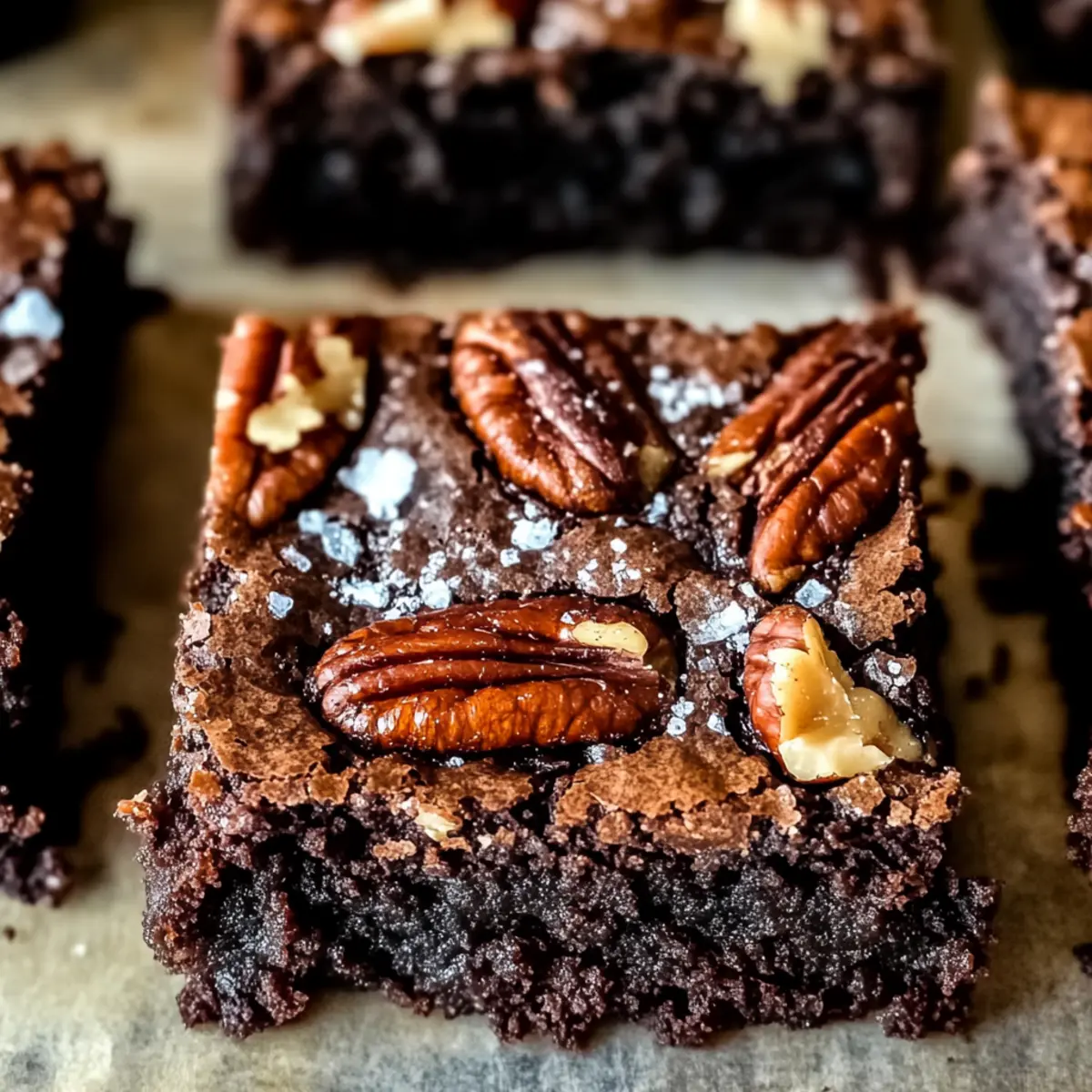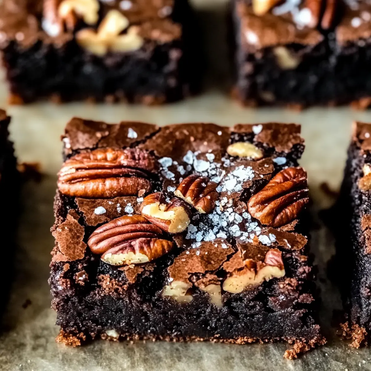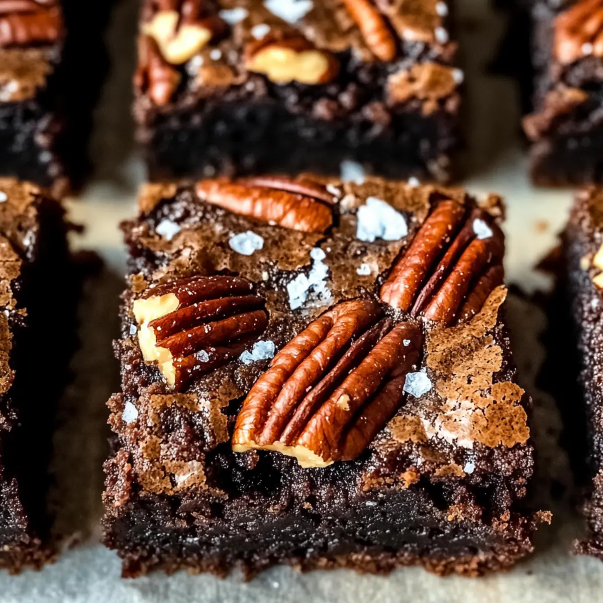 Jump to Recipe Print RecipeAs I stirred the silky cocoa and watched it blend with creamy butter, a wave of nostalgia washed over me. The recipe for Salted Pecan Pie Brownies is more than just dessert; it’s a delightful embrace of my favorite flavors, combining the richness of fudgy brownies with a sweet, salty pecan topping. What’s incredible about this treat is how effortlessly it wows friends and family while keeping prep time short—so you can focus on what matters most: making memories. Plus, these brownies are adaptable, with easy substitutions for gluten-free and dairy-free needs, ensuring everyone can indulge in a slice. Are you ready to elevate your dessert game and impress your guests with this irresistible twist on a classic? Why Are These Brownies So Irresistible? Decadent Flavors: The perfect blend of rich, fudgy chocolate and sweet, crunchy pecans creates a dessert that’s hard to resist. Quick Prep Time: In just a few simple steps, you can whip up these show-stopping brownies and have more time to savor moments with loved ones. Versatile Options: With suggested substitutions for gluten-free and dairy-free diets, everyone can join in on the treat. Crowd-Pleasing Appeal: Their sweet and salty profile makes them a favorite at gatherings—perfect for impressing guests. Make-Ahead Convenience: Prep the brownie batter or pecan topping in advance, giving you flexibility when hosting. For a delightful pairing, consider serving these brownies alongside a scoop of vanilla ice cream or a drizzle of caramel sauce, reminiscent of a Cream Cheese Pie or a rich Peanut Butter Pies. Salted Pecan Pie Brownies Ingredients For the Brownies • All-Purpose Flour – Provides structure; can substitute with gluten-free flour. • Salt – Enhances flavor; no substitute needed. • Baking Powder – Leavening agent for texture; don’t omit for best results. • Unsweetened Cocoa Powder – Contributes rich chocolate flavor; use Dutch-processed for a milder taste. • Espresso Powder – Intensifies chocolate flavor; can omit or replace with instant coffee granules. • Unsalted Butter – Adds richness; for a dairy-free option, use dairy-free butter substitute. • Vegetable Oil – Keeps brownies moist; can substitute with melted coconut oil. • Granulated Sugar – Sweetness; can substitute with coconut sugar. • Large Eggs – Binds ingredients; no substitutions recommended. • Vanilla Extract – Enhances flavor profile; imitation vanilla can be used if necessary. • Light or Dark Brown Sugar – Adds moisture and flavor; can be used interchangeably. For the Pecan Topping • Light Corn Syrup – Sweetens and adds gooey texture; maple syrup or honey can be alternatives. • Chopped Pecans – Offers crunch and nutty flavor; walnuts can be used as a substitute. • Sea Salt Flakes – Provides a salty contrast; use kosher salt if unavailable. Indulge in making these Salted Pecan Pie Brownies and watch as they become the highlight of your dessert spread! Step‑by‑Step Instructions for Salted Pecan Pie Brownies Step 1: Preheat the Oven and Prepare the Pan Begin by preheating your oven to 350°F (175°C). While the oven is heating, grease an 8-inch square baking pan with butter or baking spray to ensure your brownies release easily once baked. This step sets the stage for your Salted Pecan Pie Brownies to come out perfectly. Step 2: Whisk Together Dry Ingredients In a medium bowl, whisk together the all-purpose flour, salt, baking powder, unsweetened cocoa powder, and espresso powder. This dry mixture is essential for the structure and richness of your brownies. Aim for a uniform blend, giving a visual cue of a consistent color and texture before moving to the next step. Step 3: Cream the Wet Ingredients In a large mixing bowl, cream together the unsalted butter, vegetable oil, granulated sugar, light brown sugar, and eggs using a hand mixer on medium speed for about 2-3 minutes, or until smooth and fluffy. Add in the vanilla extract, ensuring every bit is thoroughly combined. This creamy mixture is the heart of your lovely brownies. Step 4: Combine the Mixtures Gradually add the dry ingredients into the wet mixture, mixing on low speed just until combined. Take care not to overmix, as this could affect the fudgy texture of your Salted Pecan Pie Brownies. The batter should be thick and glossy, inviting you to pour it into the prepared baking pan. Step 5: Bake the Brownies Pour the brownie batter into the greased baking pan, spreading it evenly with a spatula. Place it in the preheated oven and bake for 25-30 minutes. You’ll know it’s ready when the edges appear set and the center has a slightly underbaked jiggle; this will result in a wonderfully fudgy texture. Step 6: Prepare the Pecan Topping While the brownies are baking, prepare the pecan topping. In a medium saucepan over medium heat, combine light corn syrup, granulated sugar, light brown sugar, flour, melted butter, egg, and vanilla. Stir until well blended and remove from heat. Gently fold in the chopped pecans, creating a delicious topping that will be irresistibly crunchy. Step 7: Add the Pecan Topping Once the brownie base has baked for 25-30 minutes, carefully pour the pecan mixture over the top, spreading it evenly with a spatula. Sprinkle sea salt flakes over the topping for that perfect sweet and salty contrast. Return the pan to the oven and bake for an additional 15-20 minutes, allowing the topping to set. Step 8: Cool and Serve After baking, remove the pan from the oven and let the Salted Pecan Pie Brownies cool completely on a wire rack. This cooling step is essential for achieving clean, neat slices when you cut into these delectable treats. Once cooled, slice into squares and serve to your delighted family and friends! Salted Pecan Pie Brownies Variations Feel free to explore these delightful twists and substitutions that will make your Salted Pecan Pie Brownies even more enjoyable! Gluten-Free: Swap all-purp