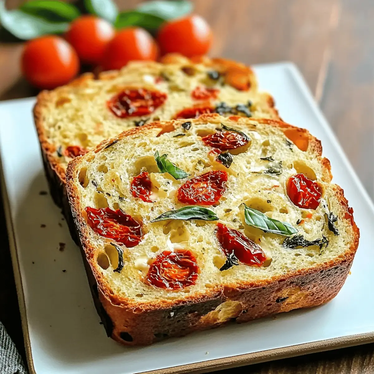 Jump to Recipe Print RecipeThe aroma of baking bread has a way of making even the busiest kitchens feel like a cozy home. That’s why I’m thrilled to share with you my take on Savory Caprese Bread—a delightful Italian-inspired quick bread that brings the beloved flavors of a Caprese salad right to your table. What makes this recipe stand out is its simplicity: it’s a no-yeast creation that comes together in minutes, making it perfect for those who crave homemade goodness without spending hours in the kitchen. With its soft, moist interior and the delicious combination of creamy mozzarella, sweet sun-dried tomatoes, and fragrant fresh basil, this bread is not only a showstopper at potlucks and picnics, but it also makes for a fantastic accompaniment to your favorite soups. Ready to find out how simple it is to make this savory delight? Let’s dive in! Why is Savory Caprese Bread a Must-Try? Simplicity, this no-yeast bread is incredibly easy to whip up, making it accessible for bakers of all skill levels. Flavor-packed, the combination of mozzarella, sun-dried tomatoes, and basil delivers a delightful taste that will impress your family and friends. Versatile, enjoy it warm with olive oil, or as a side for soups, enhancing every meal. Quick to make, it’s perfect for a spontaneous gathering or a cozy night in. Crowd-pleaser, everyone will love the inviting aroma and appetizing slices! Pair it with some Honey Butter Cornbread for a delightful spread or serve alongside Gingerbread Men Cookies for dessert. You won’t be disappointed! Savory Caprese Bread Ingredients • Gather the essentials to create this delightful Savory Caprese Bread! For the Batter 2 large eggs – Provide structure and moisture; substitute with ½ cup unsweetened applesauce for a vegan option. ½ cup whole milk – Contributes moisture and richness; can be swapped with any plant-based milk for a dairy-free version. ¼ cup olive oil – Adds fat for flavor and texture; use any neutral oil if desired. 2 tbsp plain Greek yogurt or sour cream – Adds tanginess and moisture; substitute with an equal amount of buttermilk. 1 ½ cups all-purpose flour – The main structure ingredient; for gluten-free versions, use a 1:1 gluten-free flour blend. 1 ½ tsp baking powder – Acts as a leavening agent to create a light texture. ½ tsp salt – Enhances overall flavor. ¼ tsp garlic powder – Adds aromatic flavor; fresh minced garlic can also be used (1 clove). Cheesy and Flavorful Additions ¾ cup shredded mozzarella cheese – Provides flavor and gooey texture; use a dairy-free cheese alternative if needed. ⅓ cup chopped sun-dried tomatoes (in oil, drained) – Adds sweetness and vibrant flavor; fresh tomatoes can be used, but may alter texture. ¼ cup chopped fresh basil – Provides a fresh herbal note; substitute with 1 tbsp dried basil if fresh is unavailable. Optional Kick Pinch of black pepper or red pepper flakes – For added heat and a touch of spiciness to elevate your Savory Caprese Bread! Step‑by‑Step Instructions for Savory Caprese Bread Step 1: Preheat and Prep Preheat your oven to 350°F (175°C) and prepare an 8×4-inch loaf pan by greasing it and lining it with parchment paper. This ensures easy removal of your Savory Caprese Bread later on. The warm oven will create the perfect environment for your bread to rise beautifully. Step 2: Mix Wet Ingredients In a large mixing bowl, whisk together 2 large eggs, ½ cup whole milk, ¼ cup olive oil, and 2 tablespoons of Greek yogurt until the mixture is smooth and well combined. Take a moment to enjoy the creamy texture as you blend; this will be the moist base of your savory bread. Step 3: Combine Dry Ingredients In a separate bowl, mix together 1 ½ cups of all-purpose flour, 1 ½ teaspoons of baking powder, ½ teaspoon of salt, and ¼ teaspoon of garlic powder. Stir until the dry ingredients are evenly distributed, which will help those flavors come together in your Savory Caprese Bread. Step 4: Combine and Fold Carefully add the dry mixture to your wet ingredients, stirring gently until just combined—be cautious not to overmix. This light blending is key to keeping your Savory Caprese Bread tender. Fold in ¾ cup of shredded mozzarella, ⅓ cup of chopped sun-dried tomatoes, and ¼ cup of fresh basil, which will infuse the bread with delightful flavors. Step 5: Bake Pour the batter into your prepared loaf pan, smoothing the top for an even rise. Place it in the preheated oven and bake for 40–45 minutes. Your Savory Caprese Bread is ready when it turns golden brown, and a toothpick inserted into the center comes out clean. Step 6: Cool and Slice Once baked, let the bread cool in the pan for about 10 minutes. This resting time helps to set the bread’s structure. Carefully transfer the bread to a wire rack to cool completely before slicing. The warm, savory aroma will delight your senses—perfect for enjoying a slice at room temperature or slightly warm! What to Serve with Savory Caprese Bread Imagine the delightful aromas wafting through your kitchen, as you craft not just a loaf of bread, but a centerpiece for a fabulous meal. Creamy Tomato Soup: A classic pairing, its rich and tangy flavors balance perfectly with the cheesy bread, making it a comforting duo. Garlic Roasted Vegetables: This fragrant medley adds a delicious crunch and earthy flavor, enhancing every bite of your Savory Caprese Bread. Mixed Green Salad: Tossed with a zesty lemon vinaigrette, fresh greens provide a refreshing contrast to the hearty bread, brightening the meal. Bruschetta Topping: Top slices with this fresh tomato and basil mixture for an appetizer that reflects the bread’s flavors. It’s vibrant and tasty! Chilled White Wine: A crisp Sauvignon Blanc complements the fresh ingredients, enhancing your dining experience with its refreshing notes. Herbed Olive Oil Dip: Serve olive oil infused with herbs for dipping, adding a luscious richness that elevates the bread