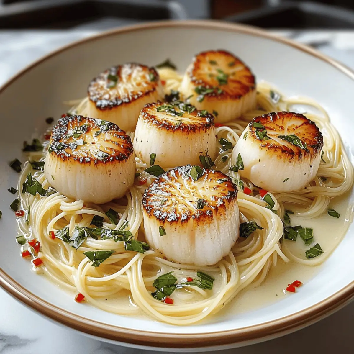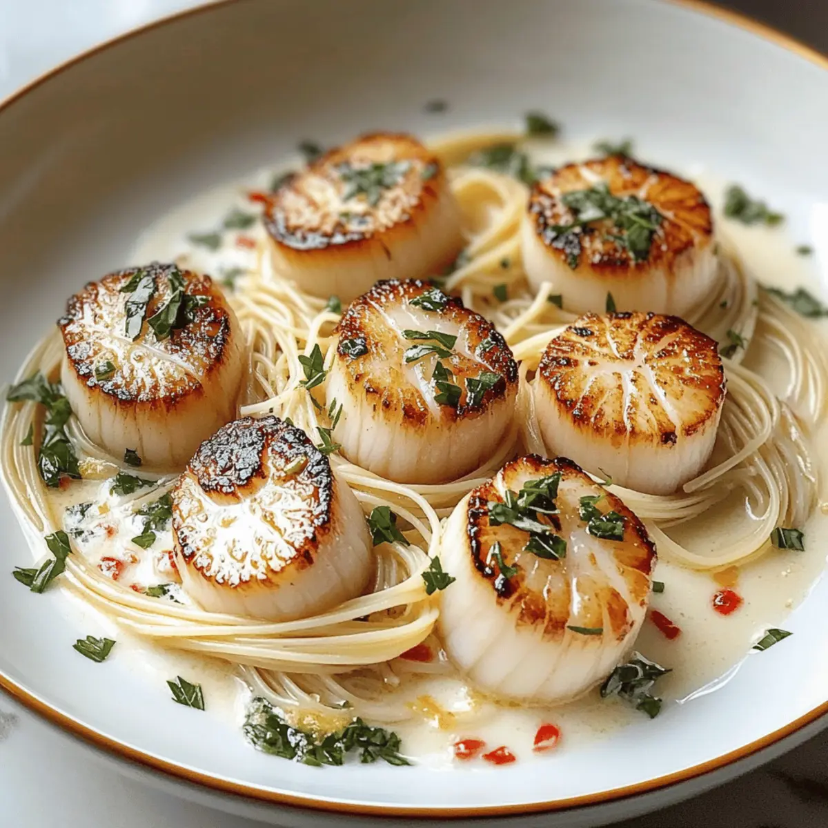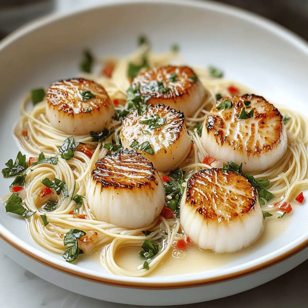 Jump to Recipe Print RecipeThe aroma of butter sizzling in a skillet instantly transports me to seaside bistros, where each plate tells a story of culinary delight. This Elegant Sea Scallops with Angel Hair Pasta in Lemon-Butter Sauce is one such tale—a quick dinner that combines sophistication with simplicity in every bite. Perfect for those evenings when time is tight yet you crave something special, this dish takes just 20 minutes from prep to plate. The sweet, tender scallops beautifully sear alongside the delicate angel hair, leaving you with a restaurant-quality experience right at home. And the customizable options? Whether you prefer a touch of creaminess or a sprinkle of Parmesan, there’s an easy way to make it your own. Curious to dive into a meal that feels like a warm embrace? Let’s get started! Why Choose Sea Scallops with Pasta? Quick Dinner: This recipe comes together in just 20 minutes, making it a perfect choice for bustling weeknights. Elegant Presentation: The combination of seared scallops and delicate angel hair offers a visually stunning dish that impresses any dinner guest. Customizable Flavors: Whether you crave a creamy texture or a zesty kick from lemon, tailoring this dish to your taste is easy! Fresh Ingredients: Using fresh herbs and quality scallops ensures every bite bursts with flavor. If you enjoy seafood, this is a must-try! Crowd-Pleasing Appeal: Perfect for date nights or special occasions, this dish turns ordinary meals into something extraordinary, just like our Chicken Broccoli Pasta. Sea Scallops with Angel Hair Pasta Ingredients • Discover the delightful components that make this dish a culinary gem! For the Pasta Angel Hair Pasta – Provides a delicate base that absorbs the sauce beautifully; swap for vermicelli if needed. For the Sauce Butter – Adds richness and flavor; olive oil is a light alternative if you prefer. Garlic – Infuses the oil with aromatic notes; garlic powder can substitute for a milder taste. Heavy Cream (optional) – Creates a creamier, indulgent sauce; skip for a lighter dish that’s ideal for warmer evenings. Lemon Juice – Balances the richness of the butter with refreshing brightness; feel free to swap with lime juice for a twist. Salt and Pepper – Essential seasonings to elevate all flavors; opt for freshly ground black pepper for the best taste. For the Scallops Sea Scallops – The star ingredient with a sweet, tender texture; ensure they’re dried well for that perfect sear. For Garnishing Fresh Basil – Introduces aromatic freshness; consider a sprinkle for a lovely pop of color. Fresh Parsley – Adds a clean, slightly peppery flavor that complements the scallops beautifully. Grated Parmesan Cheese (optional) – Offers a savory edge to the dish; remember to use it sparingly to let the scallop flavor shine through. This delightful assemblage captures the essence of Sea Scallops with Angel Hair Pasta, making every bite a testament to homemade elegance! Step‑by‑Step Instructions for Sea Scallops with Angel Hair Pasta Step 1: Cook the Pasta Start by bringing a large pot of salted water to a rolling boil. Add the angel hair pasta and cook for about 4 minutes, or until al dente; it should be tender but still firm to the bite. Once cooked, drain the pasta in a colander, reserving a small amount of the pasta water if desired, and set it aside while you move on to the next steps. Step 2: Sauté Garlic In a large skillet over medium heat, melt 2 tablespoons of butter. Once melted, add minced garlic and sauté for approximately 1 minute until fragrant but not browned. This fragrant garlic forms the base of the lemon-butter sauce for the Sea Scallops with Angel Hair Pasta, filling your kitchen with a delightful aroma that signals deliciousness to come. Step 3: Cook Scallops Carefully add the rinsed and thoroughly dried sea scallops to the skillet, making sure not to overcrowd them. Sear the scallops for about 2-3 minutes on each side until they are golden brown and opaque, feeling firm to the touch. Pay attention to their cooking; they should develop a lovely caramelized crust, which enhances their natural sweetness and flavor. Step 4: Combine Ingredients Once the scallops are perfectly seared, lower the heat and add chopped fresh basil, parsley, lemon juice, salt, and pepper to the skillet. For a creamier nature, you can also stir in heavy cream at this point. Gently toss the mixture together, allowing the flavors to meld beautifully while the herbs wilt, creating a luscious sauce to coat the pasta. Step 5: Toss with Pasta Add the cooked angel hair pasta to the skillet, gently tossing everything together until the pasta is well-coated with the lemon-butter sauce. If the mixture seems too dry, you can add a splash of the reserved pasta water. This step brings all the elements of your Sea Scallops with Angel Hair Pasta together in a beautiful and flavorful harmony, ready to be plated. Step 6: Serve Carefully plate the dish hot, garnishing with freshly grated Parmesan cheese, if desired, for an extra hit of umami. Serve your elegant Sea Scallops with Angel Hair Pasta immediately, enjoying the delightful combination of flavors and textures that make this meal truly special. A crisp salad or rustic bread makes a lovely addition to this exquisite dining experience. What to Serve with Sea Scallops with Angel Hair Pasta A beautifully plated meal of scallops draped over angel hair pasta calls for the perfect companions to make the dining experience truly exceptional. Crisp Arugula Salad: This light, peppery salad with a squeeze of lemon adds a refreshing contrast to the richness of the scallops, brightening each bite. Garlic Bread: Crunchy and buttery with a hint of garlic, this beloved classic is perfect for mopping up any remnants of the lemon-butter sauce. Roasted Asparagus: Tender asparagus adds a delightful crunch and earthy flavor, complementing the sweet scallops beautifully while also providing a vibrant