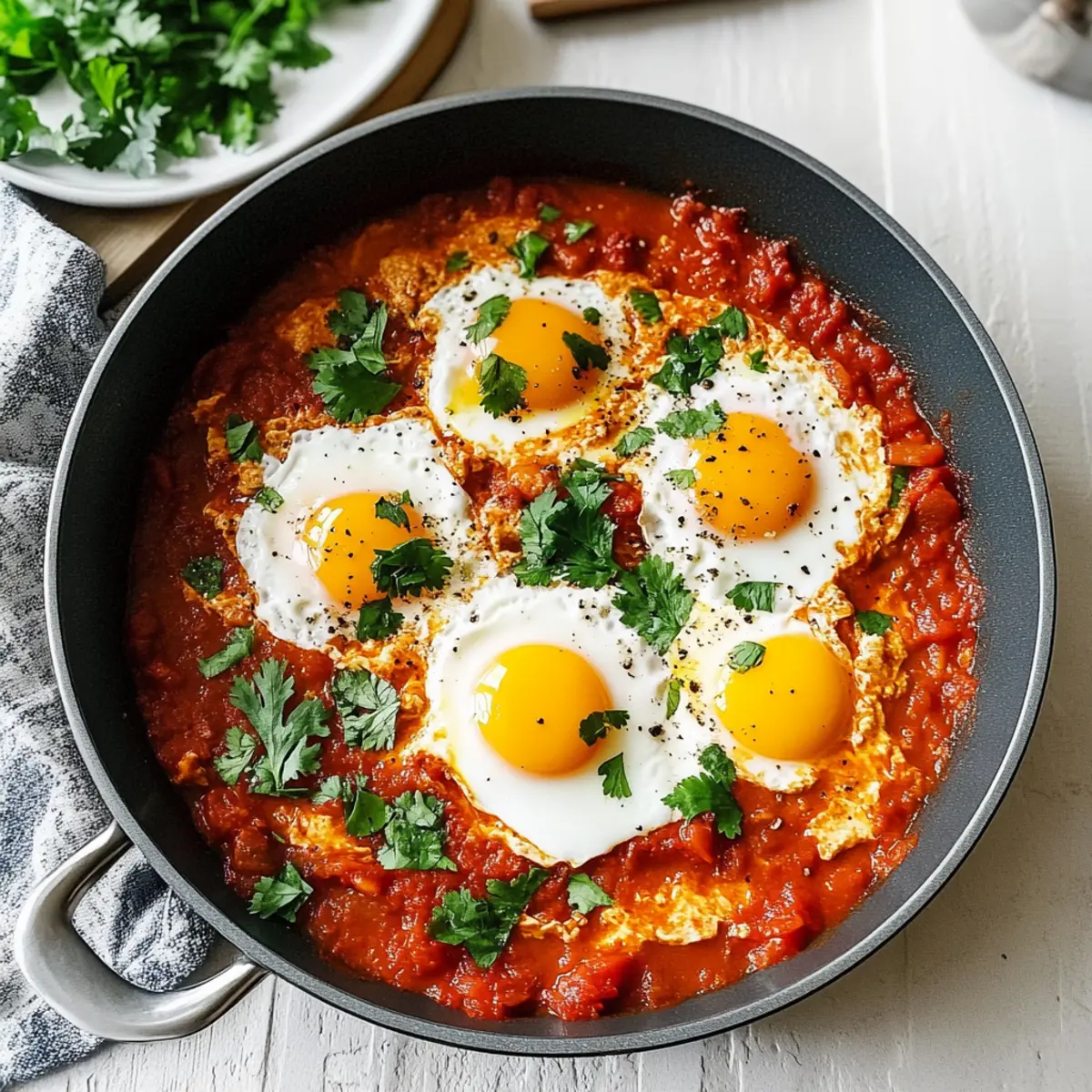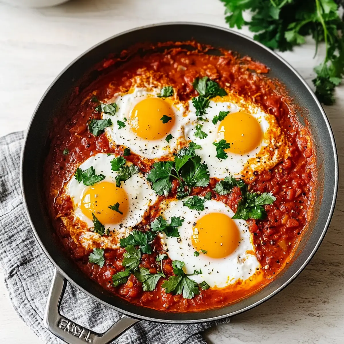 Shakshuka is an excellent choice for meal prep enthusiasts! You can prepare the rich tomato sauce up to 3 days in advance, allowing the flavors to meld beautifully. To do this, simply sauté the onions, peppers, garlic, and spices, then add the tomatoes and seasonings. Once the sauce is made, let it cool before transferring it to an airtight container and refrigerating. When you’re ready to serve, just reheat the sauce gently on the stove, create wells, and crack fresh eggs into it, cooking until your eggs reach desired doneness. This way, you’ll enjoy just as delicious shakshuka with minimal last-minute effort, perfect for busy weeknights!