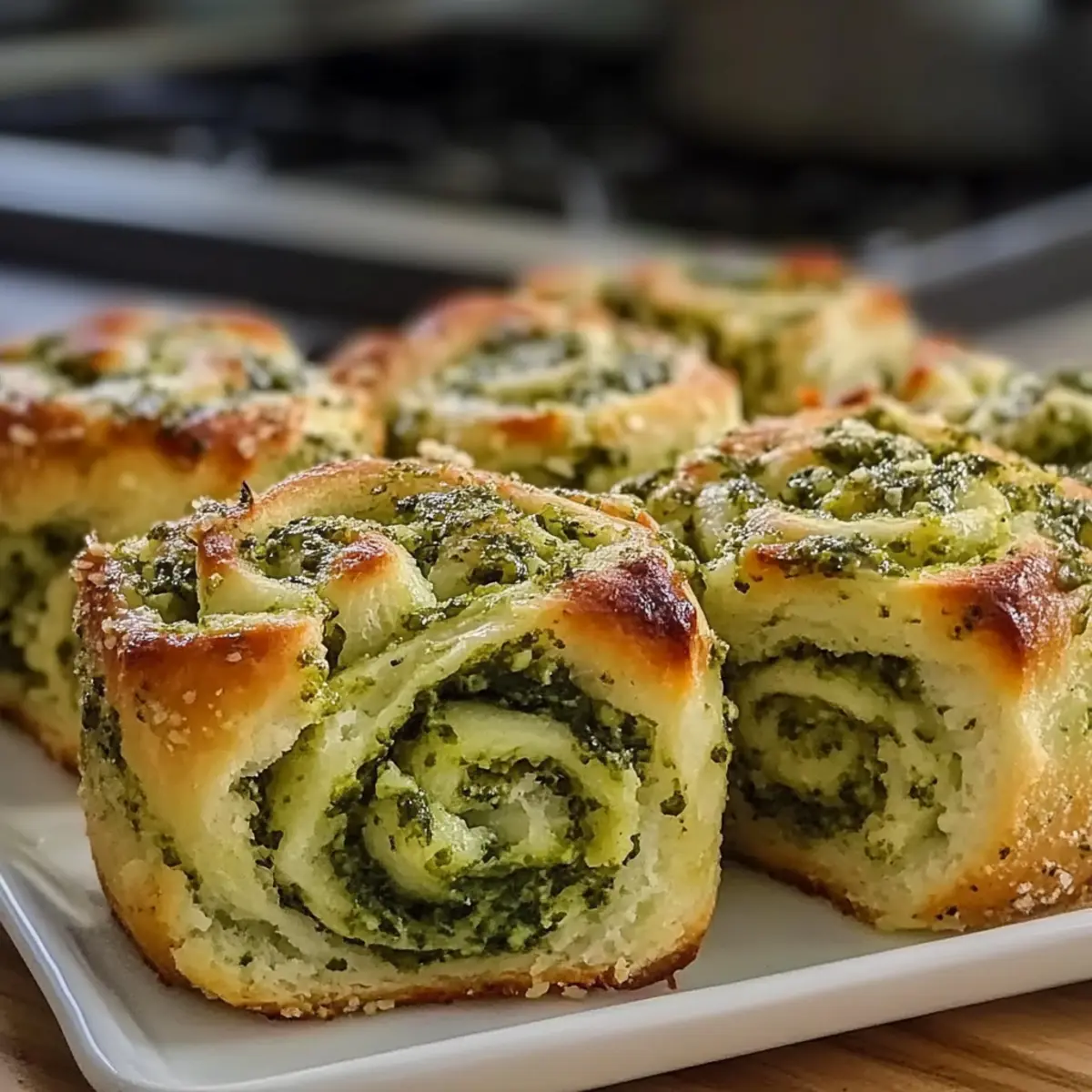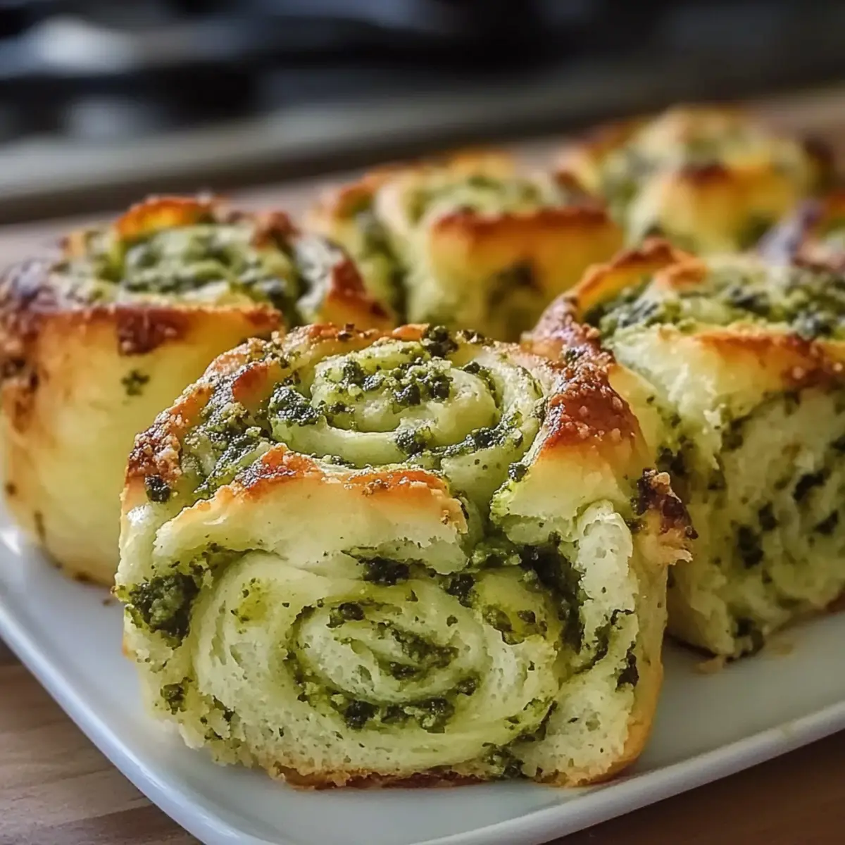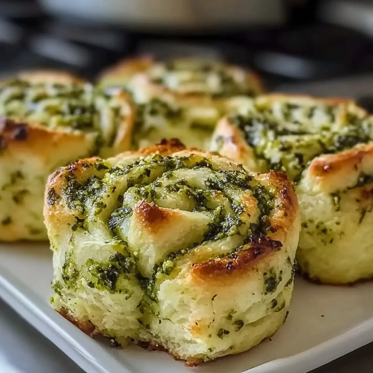 Jump to Recipe Print RecipeAs the scent of freshly baked bread fills my kitchen, I can’t help but smile at the whimsical shapes about to bring festive cheer to our St. Patrick’s Day celebration. These Fluffy Shamrock Garlic Pesto Rolls not only add a pop of vibrant green to the table, but they also come with the irresistible perk of being both easy to make and pliable to dietary preferences—perfect for a crowd! With each soft, buttery bite, you’ll taste the lively garlic pesto harmonizing with the warmth of the freshly baked dough. These rolls are a delightful twist on tradition, set to impress even the pickiest eaters. Are you ready to make your St. Patrick’s Day gathering truly unforgettable? Let’s dive into this scrumptious recipe! Why Are These Rolls a Must-Try? Festive Appeal: These Shamrock Garlic Pesto Rolls are not only delicious but also add a whimsical touch to your St. Patrick’s Day feast. Versatile Options: Easily adapt them for dietary needs with vegan, gluten-free, or nut-free alternatives. Flavor Explosion: The garlic pesto infuses every bite with rich, savory flavors that will have your guests coming back for more. Texture Perfection: Light, fluffy, and buttery, these rolls have a melt-in-your-mouth quality that’s truly irresistible. Quick and Easy: With straightforward instructions, you can have these festive treats on the table in no time, making them perfect for any home chef. Crowd-Pleaser: Whether you’re serving them as a side or as part of a festive brunch, they’re sure to wow friends and family alike! If you love homemade flavors, check out these Honey Garlic Salmon for an elegant pairing. Shamrock Garlic Pesto Rolls Ingredients For the Dough • All-Purpose Flour – Provides structure and body to your rolls; King Arthur or Bob’s Red Mill yields the best results. • Milk – Enriches the dough for a tender texture; use non-dairy milk for a vegan alternative. • Butter – Adds richness and flavor; substitute with plant-based butter for vegan eaters. • Yeast – The magical leavening agent that helps the dough rise; always use fresh for reliable results. • Salt – Enhances overall flavor; adjust to suit your taste. For the Pesto • Garlic – Infuses the rolls with a savory aroma; fresh garlic is best for maximum flavor. • Spinach and Basil – Create a vibrant pesto, rich in color and nutrients; you can use kale or parsley if spinach is lacking. • Pine Nuts – Contributes a nutty richness; for nut-free needs, simply omit or replace with sunflower seeds. • Parmesan Cheese – Adds savory depth to the pesto; can be omitted for a vegan or dairy-free version. • Olive Oil – Helps blend the pesto to a smooth consistency while enhancing the flavor. Make these Shamrock Garlic Pesto Rolls as a delightful centerpiece for your St. Patrick’s Day celebration, perfect for impressing guests and family alike! Step‑by‑Step Instructions for Shamrock Garlic Pesto Rolls Step 1: Make the Dough In a large mixing bowl, combine 4 cups of all-purpose flour, 2 packets of fresh yeast, 1 cup of warm milk (around 110°F), and 1/4 cup of melted butter. Stir thoroughly until a shaggy dough forms. Transfer the dough onto a floured surface and knead for about 8-10 minutes until it’s smooth and elastic, feeling slightly tacky to the touch. Step 2: Prepare Pesto While the dough is rising, prepare the garlic pesto. In a blender or food processor, add 2 cups of fresh spinach, 1 cup of basil leaves, 3 cloves of garlic, 1/4 cup of pine nuts, and 1/4 cup of olive oil. Blend until the mixture is smooth and vibrant green. Adjust the consistency with more oil if necessary, and add salt to taste before setting aside. Step 3: Mix Ingredients After kneading, pour the prepared garlic pesto into the dough. This will not only enhance flavor but also give your Shamrock Garlic Pesto Rolls a gorgeous green hue. Knead the dough again gently, about 1-2 minutes, until the pesto is fully integrated and the dough is well-combined. Step 4: Shape Rolls Divide the dough into equal portions, about the size of golf balls. Roll each piece into a strip approximately 8 inches long. Form each strip into a shamrock shape by creating three leaves with a knotted center, making two cuts at one end for the leaves to fan out distinctly. Place each shaped roll on a lined baking sheet. Step 5: Second Rise Cover the shaped rolls with a clean tea towel and let them rise in a warm area until doubled in size, which should take about 30-45 minutes. You’ll know they’re ready when they feel airy and have visibly puffed up, creating an inviting sight for your upcoming baking. Step 6: Bake Preheat your oven to 375°F (190°C) while the rolls are rising. Once ready, place the baking sheet in the oven and bake the rolls for 20-24 minutes. Keep an eye on them; they should turn golden brown and develop a crisp exterior while remaining soft inside, filling your kitchen with an irresistible aroma. Step 7: Finish As soon as you remove the Shamrock Garlic Pesto Rolls from the oven, brush them generously with melted butter. This step is crucial for adding an extra layer of richness and keeping them beautifully soft. Allow them to cool slightly before serving, enjoying the way they glisten invitingly on your table. How to Store and Freeze Shamrock Garlic Pesto Rolls Room Temperature: Store your rolls in an airtight container at room temperature for up to 2 days. This keeps them soft and fluffy, perfect for snacking or serving fresh! Fridge: If you need to keep the rolls longer, they can be stored in the fridge for up to 5 days. Wrap them tightly to prevent them from drying out. Freezer: For longer storage, freeze the rolls for up to 2 months. Place them in a freezer-safe bag or container, ensuring to remove as much air as possible to prevent freezer burn. Reheating: To reheat, simply pop the frozen rolls in the oven at 350°F (175°C) for about 10-15 minutes. They’ll taste freshly baked, ready to impr