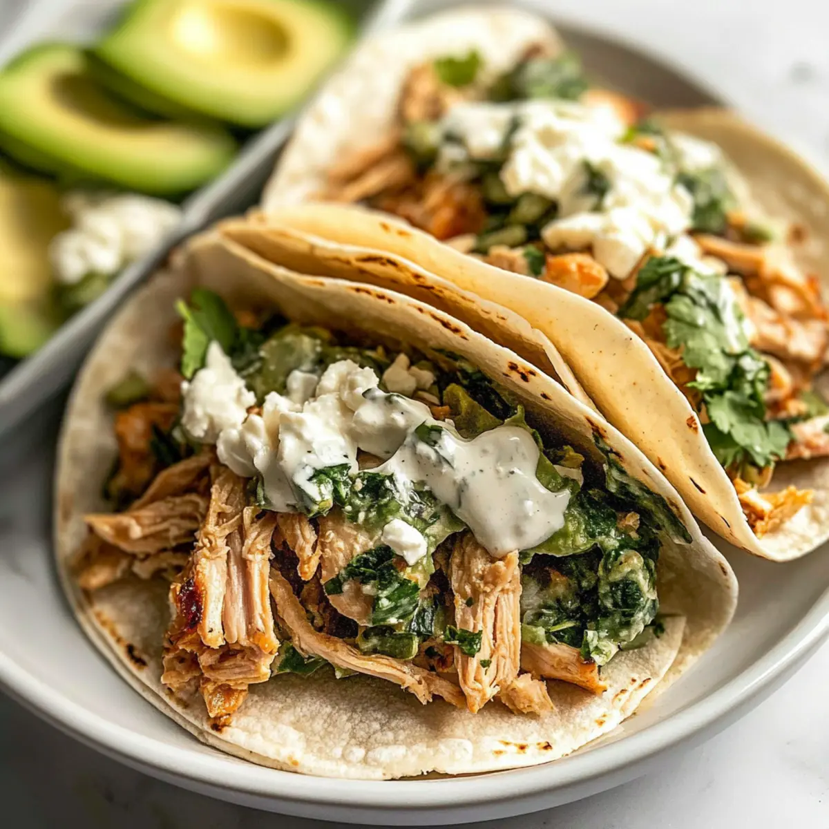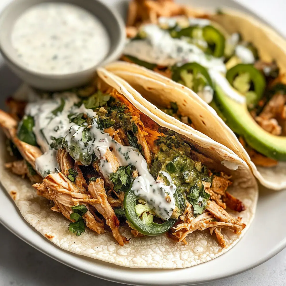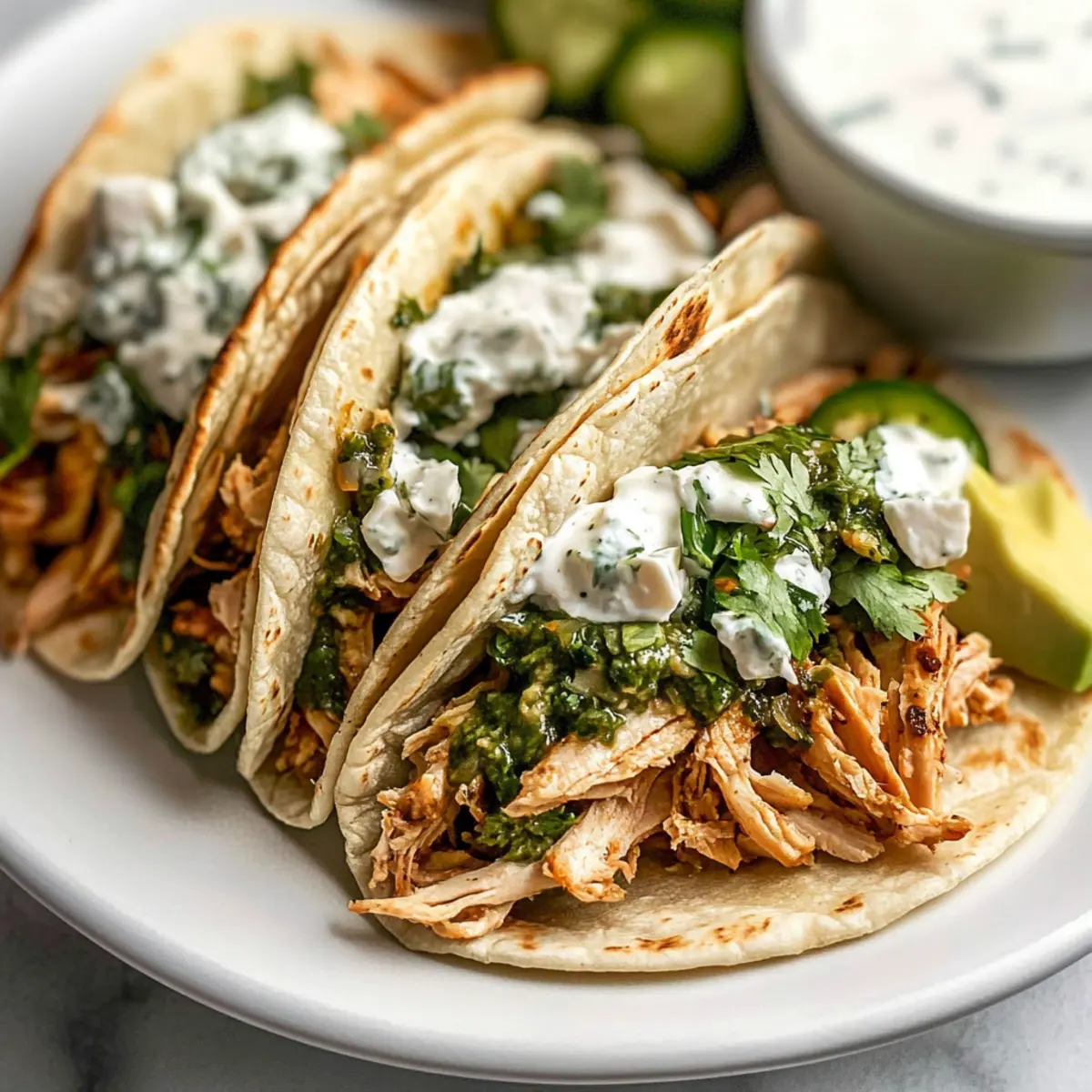 Jump to Recipe Print RecipeAs I flipped through my recipe notebook, a burst of color caught my eye—vibrant tacos dripping with a creamy chimichurri sauce. These shredded chicken tacos with creamy chimichurri sauce are not only a feast for the eyes, but they also promise a delightful culinary experience, ready in mere minutes. Perfect for those who crave wholesome meals without spending hours in the kitchen, this recipe is a small-batch wonder that easily adapts to your family’s preferences. With their tender, spiced chicken nestled in soft tortillas, topped with fresh romaine and rich avocado, these tacos make weeknight dinners an exciting affair. Want to discover how you can make them your own and use up leftovers? Let’s dive into the world of flavorful creations! Why Are These Tacos a Must-Try? Quick Preparation: These shredded chicken tacos are ready in just 30 minutes, perfect for those busy weeknights. Customizable Ingredients: Tailor to your taste—swap chicken for shredded pork or beef, or even keep it vegetarian! Creamy Chimichurri Sauce: This zesty sauce adds layers of flavor, making every bite a delightful experience. Crowd-Pleasing Appeal: Whether it’s a family dinner or a small gathering, everyone will love digging into these vibrant tacos. Versatile Leftovers: Use leftover chicken in salads or grain bowls, minimizing food waste while enjoying delicious meals. Satisfying Crunch: The fresh romaine and creamy avocado elevate these tacos, adding texture to the savory goodness. For more fun taco ideas, check out my Crockpot Chicken Tacos or explore the flavors of Poblano Chicken Tacos. Shredded Chicken Tacos Ingredients • Everything you need to make these scrumptious tacos! For the Chimichurri Sauce Mayonnaise – Adds creaminess to the sauce. Substitution: Greek yogurt for a lighter option. Greek Yogurt – Provides a rich, tangy base for the chimichurri. Use full-fat for best results. Minced Shallot – Offers a mild onion flavor to the sauce. Substitution: Finely chopped red onion. Parsley – Fresh, herbaceous notes complement the chimichurri. Alternative: Fresh cilantro can also be used. Cilantro – Adds brightness to the sauce. Substitution: Omit for personal preference. Garlic – Essential for depth of flavor. Use fresh or garlic powder in a pinch. Extra Virgin Olive Oil – Helps emulsify the sauce. Substitution: Avocado oil. Red Wine Vinegar – Provides acidity to balance flavors. Substitution: Apple cider vinegar. Kosher Salt – Enhances flavors. Adjust according to taste. For the Tacos Avocado Oil – For cooking the chicken. Substitution: Canola or olive oil. Chicken Breast – The main protein source, cooked and shredded. Substitution: Chicken thighs for juiciness. Garlic Powder, Kosher Salt, Black Pepper – Seasoning for the chicken. Adjust based on seasoning preference. Jalapeño – Adds heat. Optional: Substitute with bell pepper for milder flavor. Red Onion – For crunch and flavor in the filling. Substitution: Green onions. Flour Tortillas – Holds the filling together. Substitution: Corn tortillas for a gluten-free option. Shredded Romaine Lettuce – Provides crunch. Substitution: Iceberg lettuce or arugula. Avocado – Creamy texture and richness. Optional: Omit if not preferred. Feta Cheese – Adds salty, tangy flavor. Substitution: Cotija cheese or omit completely. Enjoy crafting your delightful shredded chicken tacos with this easy-to-follow ingredient guide! Step‑by‑Step Instructions for Creamy Chimichurri Shredded Chicken Tacos Step 1: Make the Sauce In a medium bowl, whisk together ¼ cup mayonnaise, ¼ cup Greek yogurt, and 1 minced shallot until smooth. Stir in ½ cup chopped parsley, ¼ cup chopped cilantro, 2 cloves of minced garlic, ¼ cup extra virgin olive oil, 2 tablespoons red wine vinegar, and a pinch of kosher salt. Taste the creamy chimichurri sauce and adjust the seasoning if needed. Set aside to allow the flavors to meld. Step 2: Prepare Chicken Combine 1 teaspoon of garlic powder, ½ teaspoon kosher salt, and ½ teaspoon black pepper in a small bowl. Pat 1 pound of chicken breast dry, then rub the seasoning mix evenly over the chicken. Let the seasoned chicken sit for about 10 minutes to absorb the flavors while you gather your cooking equipment. Step 3: Cook Chicken Heat 2 tablespoons of avocado oil in a large skillet over medium heat until shimmering, about 2 minutes. Carefully add the seasoned chicken breasts to the pan, cooking for 4-5 minutes on each side or until the internal temperature reaches 165°F and the chicken is golden brown. Transfer the chicken to a plate and allow it to rest for a few minutes before shredding. Step 4: Sauté Vegetables In the same skillet, add a splash of water to deglaze the pan, scraping any browned bits off the bottom. Add 1 sliced jalapeño and ½ cup of thinly sliced red onion to the skillet. Sauté for 3-4 minutes until the vegetables are tender and fragrant. The mixture should soften and become slightly translucent, enhancing the taco filling. Step 5: Combine Return the shredded chicken back to the skillet with the sautéed jalapeños and onions. Mix everything well and add a handful of chopped cilantro, tossing to combine. Cook for an additional 1-2 minutes until heated through, allowing the chicken to soak up the savory flavors. Now your flavorful shredded chicken filling is ready! Step 6: Assemble Tacos Warm the flour tortillas in a dry skillet over medium heat for about 30 seconds on each side to make them pliable. Lay out the tortillas and layer each with a handful of shredded romaine lettuce, a generous scoop of the chicken mixture, slices of creamy avocado, and crumbled feta cheese if desired. Drizzle the tacos with the creamy chimichurri sauce and serve warm to tantalize your taste buds! Variations & Substitutions for Shredded Chicken Tacos Feel free to let your creativity shine as you make these tacos your own with delightful twists and swaps! Pork Option: Swap chi