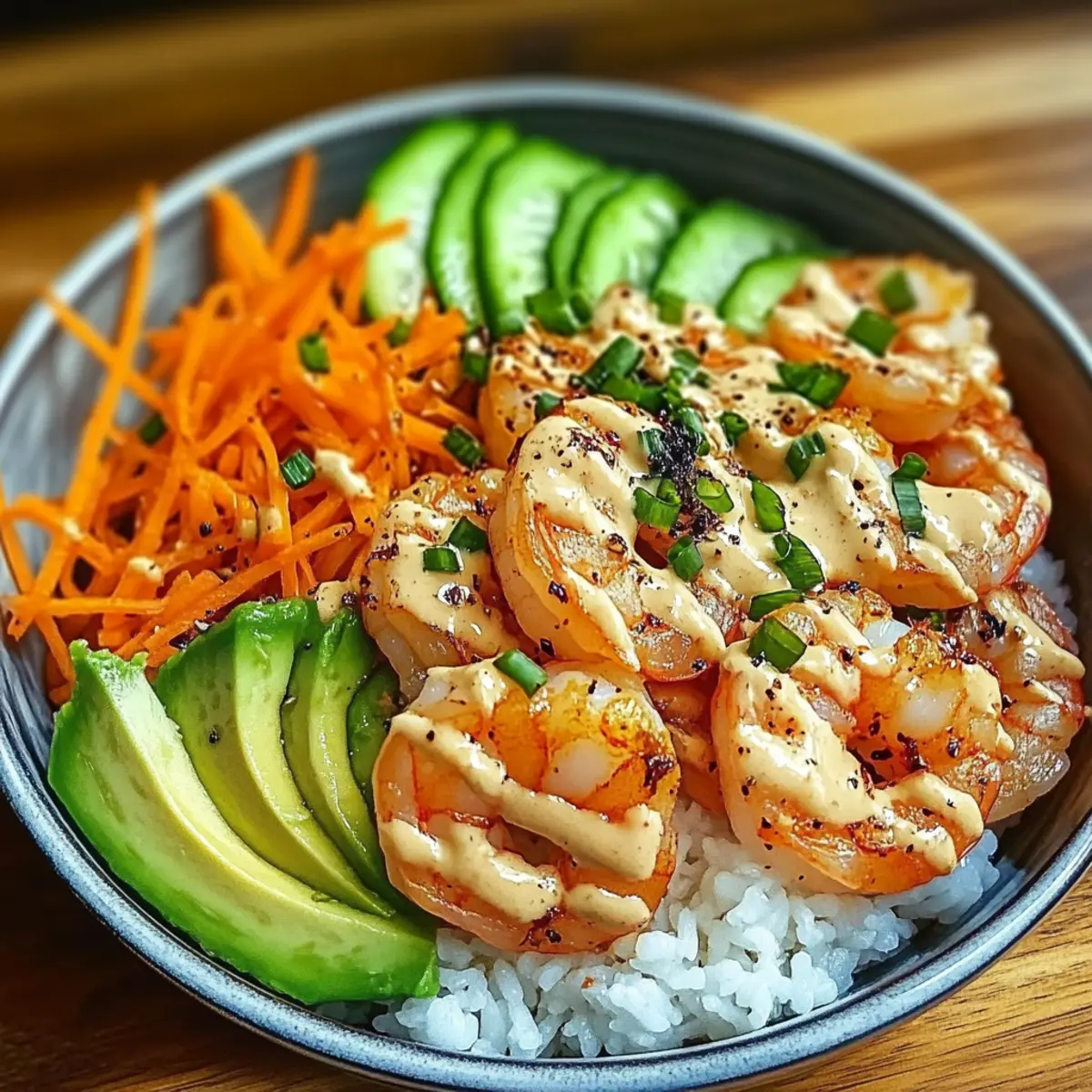 Jump to Recipe Print RecipeCaught between a long day and a hungry belly, I realized I needed a meal that could save the evening and offer a burst of flavor. Enter my Quick and Flavorful Shrimp Rice Bowls with Spicy Mayo—which are as satisfying as they are simple to whip up. In just 30 minutes, you can have a protein-rich, customizable dish on your table, perfect for busy weeknights or meal prep sessions. The beauty of this recipe lies in its adaptability; swap ingredients based on your cravings, or scale up the spice to suit your taste. As I drizzled the creamy spicy mayo over the vibrant bowls, I couldn’t help but wonder—what’s your favorite topping to elevate a classic rice bowl? Why Are Shrimp Rice Bowls So Great? Quick Preparation: In just 30 minutes, you can create a delicious meal that fits your hectic life. Customizable Options: Adjust the ingredients to suit your preferences—swap shrimp for tofu or chicken, or choose between brown rice or cauliflower rice. Nutritious Ingredients: Packed with protein and vitamins, these bowls offer a well-balanced meal option that doesn’t compromise on flavor. Crowd-Pleaser: Perfect for families or gatherings, they cater to a variety of tastes; add extra toppings like pickled ginger or sesame seeds for an extra oomph! Delicious Sauce: The creamy spicy mayo adds the perfect zing, making every bite a flavorful adventure. Enjoy with other delightful recipes like Garlic Shrimp Over Mashed Potatoes for even more delicious options! Shrimp Rice Bowls Ingredients • Prepare your delicious Shrimp Rice Bowls with Spicy Mayo with these simple ingredients. For the Spicy Mayo Mayonnaise – This creamy base enriches the sauce; substitute with Greek yogurt for a lighter version. Sriracha – Adds the perfect kick; feel free to adjust based on your spice tolerance. Lime Juice – Brightens the mayo and adds freshness; lemon juice is a good alternative. For the Shrimp Shrimp – The star protein, which can be swapped with chicken or tofu depending on your preference. Olive Oil – Ideal for cooking the shrimp; use canola or avocado oil if you prefer a different flavor. Soy Sauce – Adds umami and saltiness; tamari can be used for a gluten-free option. For the Rice and Vegetables Rice – Choose white, brown, or quinoa for your base; cauliflower rice works for a low-carb option. Carrots – For a delicious crunch and natural sweetness; feel free to add other vegetables you love. Cucumbers – Adds freshness to your bowls, creating a lovely balance with the spicy mayo. Radishes – Give a colorful pop and a slightly peppery flavor; you can substitute with bell peppers if needed. Avocado – Creamy richness that elevates the dish; makes it even more nutritious. Green Onions – For a fresh, mild onion taste; chop finely for best results. For the Garnish Sesame Seeds – Sprinkle on top for texture and a nutty flavor; entirely optional but recommended. Cilantro – Adds an aromatic freshness; can be omitted if you’re not a fan. These ingredients come together to create a delightful meal that you can modify to fit every taste and occasion. Happy cooking! Step‑by‑Step Instructions for Shrimp Rice Bowls with Spicy Mayo Step 1: Make the Spicy Mayo In a small bowl, whisk together mayonnaise, sriracha, lime juice, and soy sauce until smooth and creamy. You can adjust the sriracha to suit your spice preference, adding more for extra heat. Once mixed, set the spicy mayo aside to let the flavors meld while you prepare the rest of the ingredients. Step 2: Prepare the Shrimp Heat a skillet over medium heat and add a drizzle of olive oil. Once the oil is shimmering, add the shrimp in a single layer. Cook for about 3-4 minutes on each side, or until the shrimp turn pink and opaque. Make sure they are cooked evenly by not overcrowding the pan; you can do this in batches if necessary. Step 3: Season the Shrimp While the shrimp are cooking, season them with soy sauce, garlic powder, smoked paprika, black pepper, and a touch of honey or maple syrup for a hint of sweetness. This blend will enhance the flavor of your shrimp, creating a delicious base for your Shrimp Rice Bowls with Spicy Mayo. Step 4: Cook the Rice Prepare your rice according to the package instructions while the shrimp cook. If you prefer a quicker option, you can also use microwaveable rice packets. Once done, fluff the rice with a fork and ensure it’s steaming hot and ready to absorb the flavors of the shrimp and spicy mayo. Step 5: Assemble the Bowls Divide the cooked rice evenly among four bowls as the base for your shrimp rice bowls. Layer the cooked shrimp on top of the rice, making sure to distribute them evenly so every bite is flavorful. This arrangement sets the stage for adding vibrant vegetables next. Step 6: Add the Vegetables Arrange the shredded carrots, cucumber slices, radishes, avocado, and chopped green onions around the shrimp in each bowl. This colorful display not only adds texture and flavor but also makes your Shrimp Rice Bowls visually appealing. Feel free to customize the veggies based on your preference or what you have on hand. Step 7: Drizzle with Spicy Mayo Generously drizzle the spicy mayo over the assembled bowls, letting it cascade over the shrimp and vegetables. The rich flavors of the mayo bring all the components together, elevating your meal. Optional: you can sprinkle sesame seeds and cilantro on top for added texture and freshness. Step 8: Serve and Garnish If desired, add pickled ginger and seaweed strips for an authentic touch. Serve the Shrimp Rice Bowls with Spicy Mayo immediately while everything is fresh and vibrant. Enjoy a quick meal filled with flavor that is sure to satisfy your hunger and brighten your day! Storage Tips for Shrimp Rice Bowls with Spicy Mayo Fridge: Store assembled bowls in airtight containers for up to 3 days. Keep spicy mayo separate to maintain its creamy texture and vibrant flavor. Freezer: For longer storage, freeze individual