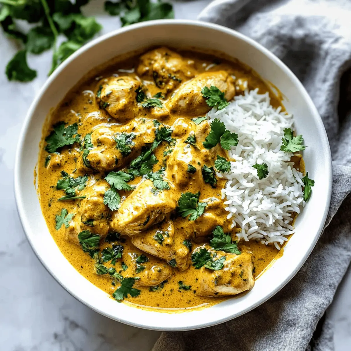 Jump to Recipe Print RecipeThe air was thick with the fragrant scent of spices simmering away, transporting me to the vibrant streets of India, where comfort food reigns supreme. Today, I want to share my take on a beloved dish: Easy Slow Cooker Chicken Korma. This recipe celebrates the tender chicken marinated in creamy yogurt and slow-cooked with rich coconut milk and zesty tomatoes. What makes this dish truly irresistible is its effortless preparation—you can set it and forget it, freeing up precious time for yourself. Plus, it’s incredibly adaptable, allowing you to swap in different proteins or veggies based on what you have on hand. Are you ready to dive into a bowl of warmth and flavor? Let’s get cooking! Why is Chicken Korma So Irresistible? Unmatched Comfort: The warm spices and creamy coconut sauce create an embrace of flavor, making every bite comforting and fulfilling. Effortless Preparation: Just marinate, toss in the slow cooker, and let it do the work—perfect for busy weeknights. Adaptable Delight: Swap chicken for lamb, beef, or even hearty vegetables for a personalized twist. Crowd-Pleasing Flavor: This dish is sure to impress guests and family alike, reminiscent of dining out but made from home. Pair it perfectly with fluffy basmati rice or warm naan for that complete signature experience that you’ll love. Don’t forget to check out my Crockpot Chicken Tacos for another mouth-watering slow-cooked recipe! Slow Cooker Chicken Korma Ingredients • Here’s everything you need to create this easy and delectable dish: For the Marinade Full-fat Greek yogurt – A creamy base that tenderizes chicken; sour cream can be a quick substitute. Garam masala – The essential spice blend that brings authentic korma flavor; do not skip this! Ground cumin – Imparts earthy tones that add depth and warmth. Ground coriander – Provides a light citrus hint to balance the spices. Curry powder – Infuses mild flavors that enrich the overall profile; adjust to your taste. Turmeric – Offers a vibrant color and subtle bitterness; saffron can be used for a fragrant alternative. Chili powder and chili flakes – Perfect for adding heat; tweak according to your preference. For the Main Dish Chicken thighs (boneless, skinless) – Juicy and tender; use chicken breasts for a leaner option. Onion – Builds the flavorful foundation; fresh is best! Shallot – Adds sweetness and depth when sautéed. Garlic – A must for aromatic success. Ginger – Brightens and balances the dish beautifully. For the Sauce Coconut milk – Provides creaminess and sweetness, complementing the spices superbly. Opt for light coconut milk for a healthier twist. Tomato paste – Contributes acidity and thickness; substitute with roasted red pepper sauce if avoiding tomatoes. Let the rich aromas of this Slow Cooker Chicken Korma fill your kitchen, and savor the flavors of comfort. Happy cooking! Step‑by‑Step Instructions for Slow Cooker Chicken Korma Step 1: Marinate Chicken In a mixing bowl, combine full-fat Greek yogurt with garam masala, ground cumin, ground coriander, curry powder, turmeric, chili powder, and chili flakes. Coat the boneless, skinless chicken thighs thoroughly with this aromatic marinade. Cover the bowl and let the chicken marinate for at least 30 minutes, or for deeper flavor, refrigerate overnight. Step 2: Brown Chicken Heat a skillet over medium-high heat or set your slow cooker to the sauté function. Add a splash of oil and sear the marinated chicken pieces until they are golden brown on all sides, about 4-5 minutes. This step will enhance the depth of flavor in your Slow Cooker Chicken Korma, so don’t skip it if time allows. Step 3: Sauté Aromatics In the same skillet or slow cooker, add finely chopped onion, shallot, garlic, and ginger. Sauté these aromatics for about 5-7 minutes, stirring occasionally, until they turn golden and fragrant. This builds the foundational flavor for your korma and creates an inviting aroma throughout your kitchen. Step 4: Build the Sauce Add the reserved yogurt marinade, tomato paste, remaining turmeric, and coconut milk to the sautéed aromatics. Stir well to combine and let the mixture simmer gently for about 5 minutes, allowing the sauce to come together and thicken slightly. The vibrant colors and rich scents indicate you’re on the right track to a delicious Slow Cooker Chicken Korma. Step 5: Slow Cook Transfer the browned chicken into the slow cooker and pour the sauce over it. Stir gently to ensure the chicken is coated. Cover and cook on low for 6 hours or on high for 3 hours. The chicken should be tender and easily shredded when fully cooked, soaking in all the delightful flavors of your korma. Step 6: Serve Once the cooking time is complete, give the Slow Cooker Chicken Korma a gentle stir. Serve the dish hot, garnished with fresh coriander, chickpeas, or nuts if desired. Pair it with fluffy basmati rice or warm naan to complete your meal, enjoying the wonderful blend of spices and creaminess that defines this comforting dish. Expert Tips for Slow Cooker Chicken Korma Marinate Longer: Enhance flavor by marinating the chicken overnight; it deepens the spice infusion and tenderness. Browning Optional: While browning enhances richness, if you’re short on time, skip this step without compromising much on taste. Thicken Sauces: For a thicker sauce, try adding a cornstarch slurry towards the end or remove the lid to let some moisture escape. Veggie Boost: Incorporate vegetables like peas or spinach for added nutrition; just adjust cooking times to ensure they cook through. Taste as You Go: Adjust spice levels according to your preference; remember, ‘slow cooker’ often mellows flavors as it cooks. With these tips, your Slow Cooker Chicken Korma will be sure to impress! What to Serve with Slow Cooker Chicken Korma Create a delightful meal experience that brings warmth to the table alongside your aromatic dish. Fluffy Basmati Rice: Pe