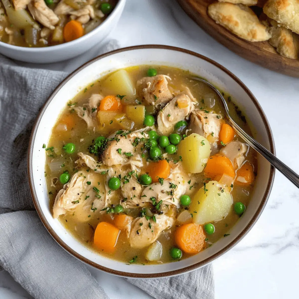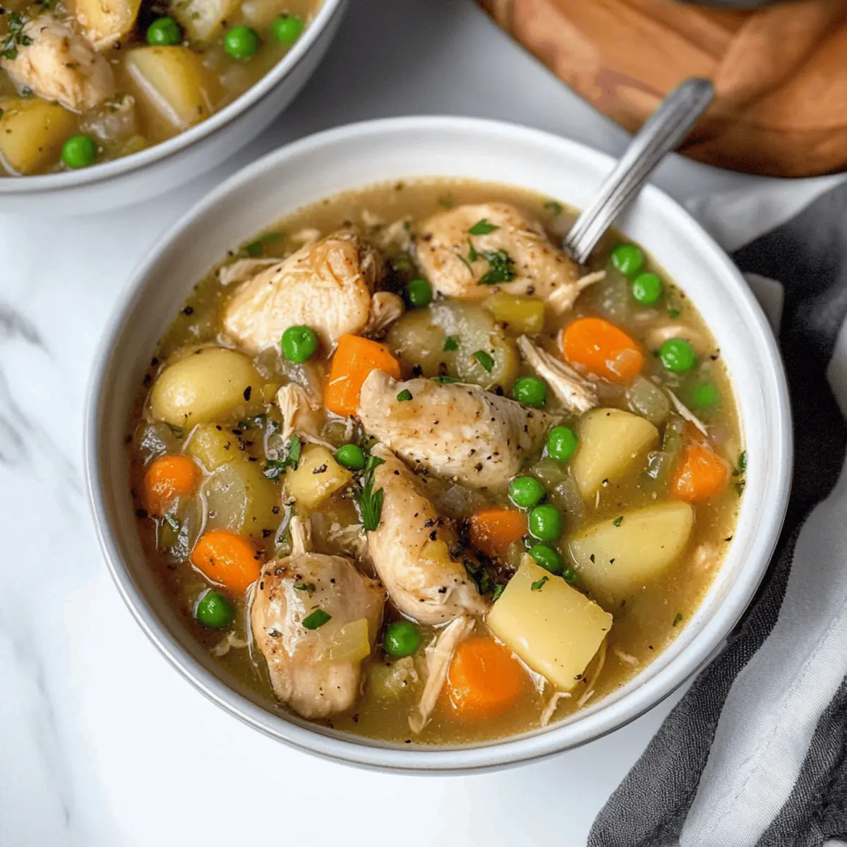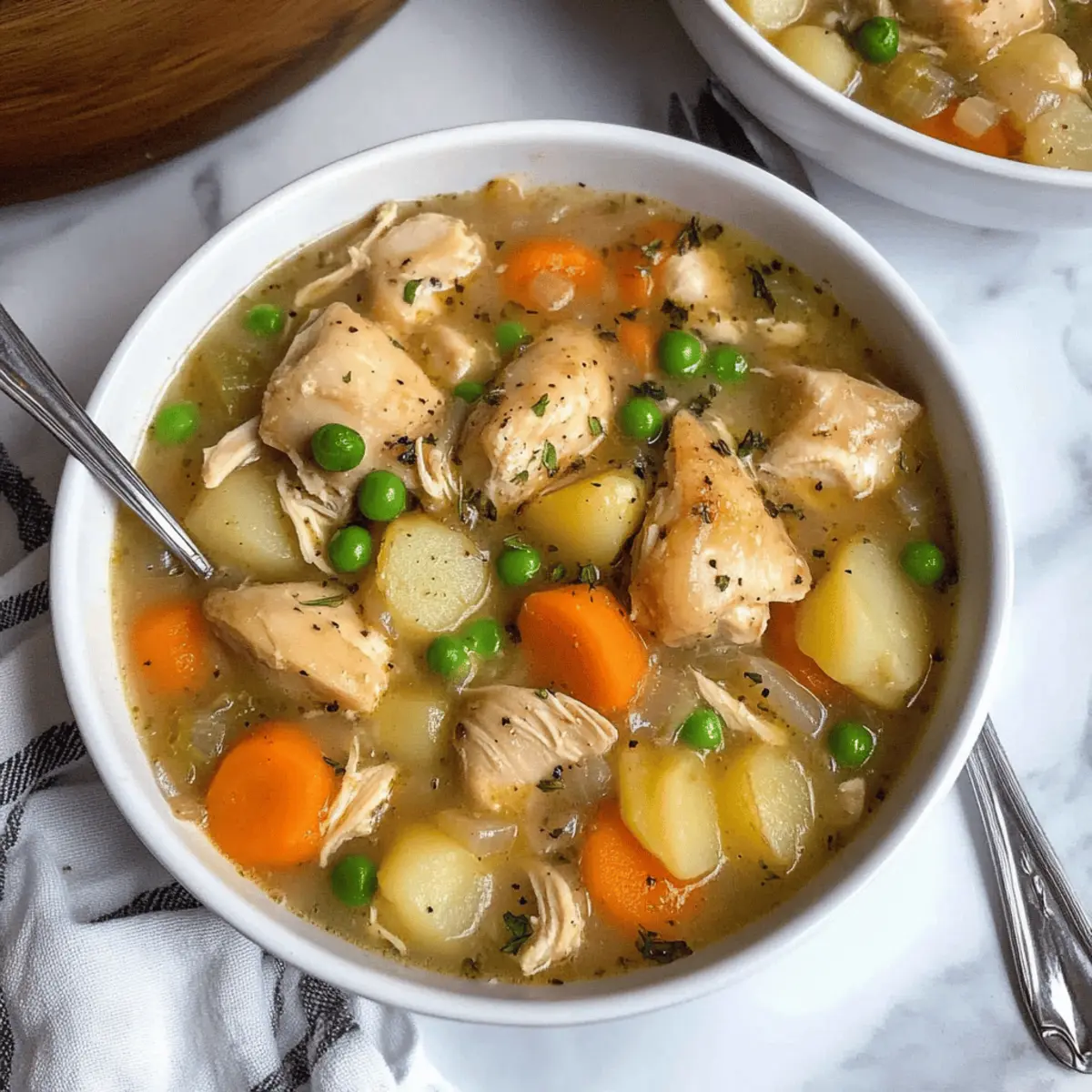 Jump to Recipe Print RecipeAs I shuffled through my kitchen one chilly evening, I stumbled upon the perfect remedy for the cold—my Simple Slow Cooker Chicken Stew. This hearty dish fills your home with warmth and rich aromas, making it an absolute must on a crisp day. Packed with tender chicken, colorful veggies, and a creamy broth, this stew is not only a cozy meal but also meal prep-friendly, ensuring you have delicious comfort waiting for you at the end of a long day. Plus, it’s versatile enough to cater to gluten-free and dairy-free diets, letting everyone join in on the cozy goodness. Ready to see how this simple slow cooker recipe can become your next go-to? Let’s dive in! Why is this Chicken Stew a Must-Try? Deliciously Hearty: Each bowl of this stew is filled with tender chicken and vibrant vegetables, making it the perfect comfort food for cold evenings. Easy Prep: Simply brown the chicken, toss in the ingredients, and let your slow cooker work its magic while you relax or tackle chores. Diet-Friendly Options: Both gluten-free and dairy-free variations ensure that no one misses out on this warm treat. Family Favorite: The rich flavors and creamy texture are sure to satisfy picky eaters, inspiring your loved ones to request this stew again and again! Meal Prep Champion: Cook a big batch, store leftovers, and indulge in quick, wholesome meals throughout the week, perfectly paired with Crockpot Chicken Tacos or Chicken Dumplings Cozy! Slow Cooker Chicken Stew Ingredients For the Stew • Chicken Thighs – Main protein source, adds rich flavor; substitute chicken breasts for a leaner option. • Olive Oil – For browning chicken; enhances flavor; can use other cooking oils if preferred. • Onion – Adds aromatic base flavor; leeks or shallots can be substituted if desired. • Garlic – Boosts overall flavor; adds warmth; jarred minced garlic may be used (approx. 2 tablespoons). • Carrots – For sweetness and texture; optional vegetable choice; can use other root vegetables. • Celery – Adds crunch and depth; can be omitted if not available. • Potatoes – Provides substance to the stew; use Yukon gold for creaminess; substitute with sweet potatoes for variation. • Chicken Broth – Base liquid; use low-sodium for a healthier option; homemade broth also works well. • Milk (or Dairy-Free Alternatives) – Adds creaminess; can be replaced with almond milk or coconut milk for a dairy-free version. • Green Peas – Add color and texture; can substitute with frozen corn or beans. • Flour (or Gluten-Free Substitute) – Thickening agent; swap for 1-to-1 gluten-free flour if needed. • Salt and Black Pepper – Essential seasonings for flavor enhancement; use to taste. With these ingredients, you’re well on your way to creating a delightful Slow Cooker Chicken Stew that not only warms the soul but also nourishes the body! Step‑by‑Step Instructions for Slow Cooker Chicken Stew Step 1: Brown the Chicken In a large skillet, heat 2 tablespoons of olive oil over medium-high heat. Add the chicken thighs, cooking for about 4-5 minutes on each side until they are golden brown. This step enhances the flavor profile of your Slow Cooker Chicken Stew, so make sure to achieve a nice sear before transferring the chicken to your slow cooker. Step 2: Prepare the Vegetables Once the chicken is browned, chop the onions, carrots, celery, and potatoes into bite-sized pieces. Layer these chopped vegetables evenly in the bottom of the slow cooker. Their bright colors will create a beautiful base for your stew while adding depth and nutrition to the dish. Step 3: Combine Ingredients Place the browned chicken thighs on top of the vegetables in the slow cooker. Then, mince 2-3 cloves of garlic and sprinkle them over the chicken. Pour in 4 cups of chicken broth, stirring gently to combine all the ingredients, ensuring the vegetables are well-distributed around the chicken for even cooking. Step 4: Season and Set Add 1-2 teaspoons of salt and black pepper to taste, stirring everything together lightly. Cover the slow cooker with its lid, setting the temperature to low for 6-7 hours or high for 3-4 hours. Allow your Slow Cooker Chicken Stew to simmer gently, filling your home with its delicious aroma. Step 5: Finish with Creaminess About 20 minutes before serving, stir in one cup of milk or a dairy-free alternative, along with one cup of green peas. This addition will create a creamy texture that enhances the overall comfort of the stew. Cover the slow cooker again and let it cook for an additional 20 minutes until everything is heated through. Step 6: Adjust Seasoning and Serve Before serving, taste the stew and adjust any seasonings with additional salt and black pepper as desired. Once satisfied, ladle your hearty Slow Cooker Chicken Stew into bowls, pairing it with crusty bread or a fresh salad for a complete meal. Enjoy the warm, nourishing goodness you’ve created! Expert Tips for Slow Cooker Chicken Stew Brown the Chicken: Always brown the chicken thighs to develop deeper flavors. Skipping this step can leave your stew lacking richness. Uniform Vegetable Cuts: Chop your vegetables into similar sizes for even cooking. This prevents any pieces from becoming mushy while others remain undercooked. Adjust Cooking Time: If you’re using larger chicken breasts instead of thighs, check for doneness after 3-4 hours on high or 5-6 hours on low to avoid overcooking. Thickening Techniques: To thicken your stew effectively, mix the flour with cold broth before adding it to the mixture. This helps prevent lumps and creates a creamy consistency. Use Fresh Herbs: For an extra flavor boost, consider adding fresh herbs like thyme or rosemary during the last hour of cooking for a delicious aromatic finish. Storage Tips: This slow cooker chicken stew keeps well in the fridge for up to 3-4 days and can be frozen for up to 3 months. Reheat thoroughly before serving. Slow Cooker Chicken Stew Varia