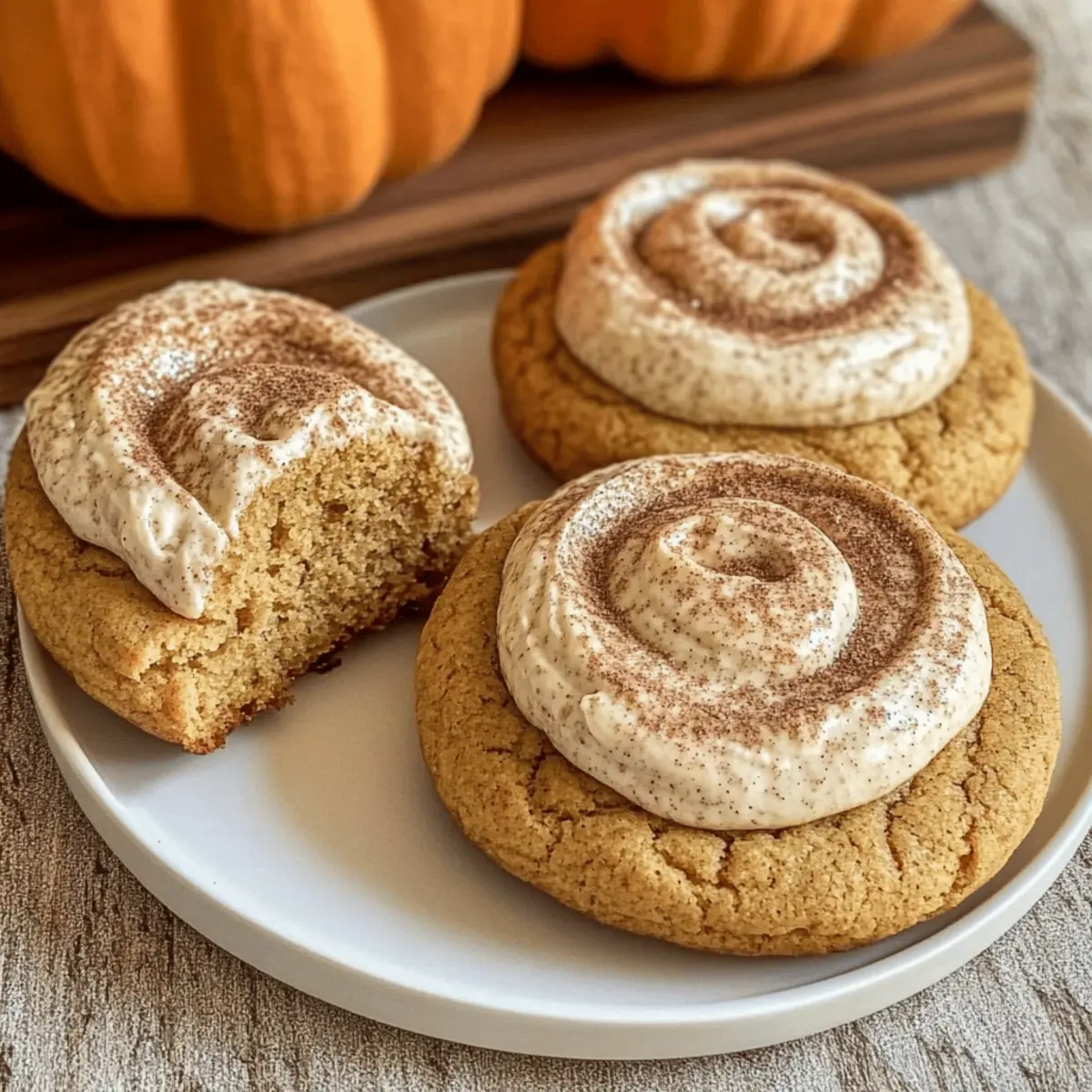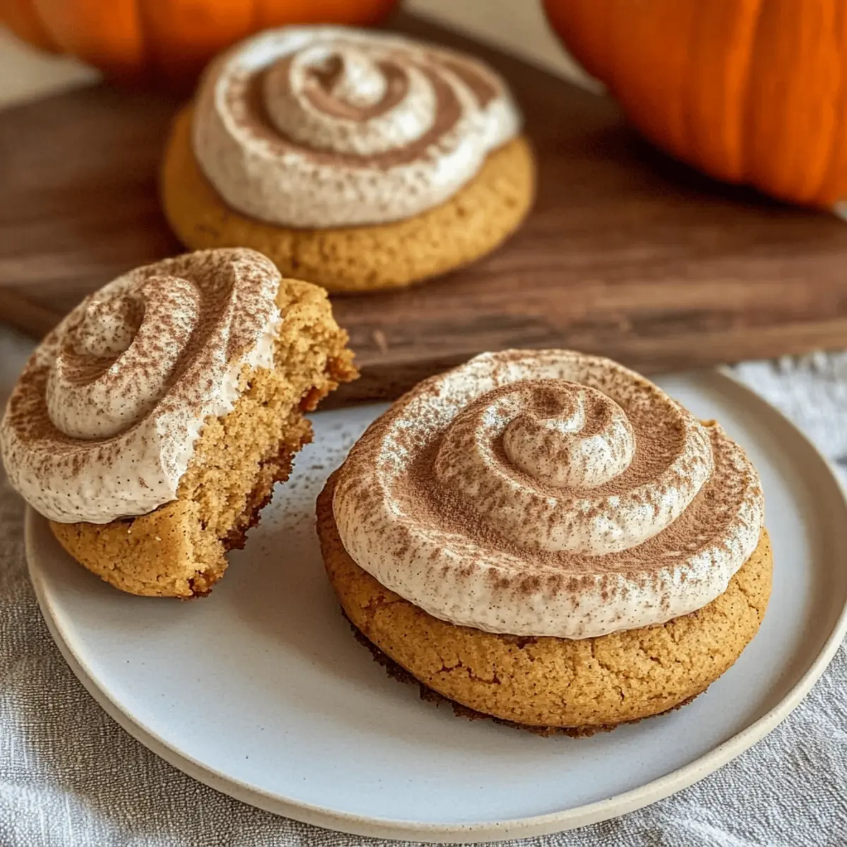 Jump to Recipe Print RecipeThe air is crisp, and the leaves are turning vibrant hues – it’s the perfect time for a cozy baking session! My soft vegan pumpkin cookies with creamy cinnamon frosting are the ultimate treat to embrace the fall season. Not only do they fill your kitchen with the warm, inviting scent of spices, but they’re also a deliciously healthy option that everyone will love. These cookies are simple to whip up, making them a go-to recipe for gatherings or a sweet pick-me-up during a busy week. Plus, with choices for gluten-free and refined sugar-free options, you’re set to cater to various dietary needs without compromising on taste. Curious to find out how to create this seasonal delight? Let’s dive in! Why are these cookies a must-try? Irresistible Flavor: These soft pumpkin cookies are packed with the warm, spiced essence of fall, making each bite a delightful experience. Cinnamon Frosting: The creamy topping is the perfect complement, adding a sweet richness that elevates the simple cookie to bakery-level indulgence. Vegan and Healthy: Enjoy a guilt-free treat with this refined sugar-free and vegan recipe that doesn’t compromise on flavor. Easy to Make: The straightforward process means you can whip these up in no time—perfect for last-minute surprises or cozy gatherings. Crowd-Pleaser: Whether you’re hosting friends or treating yourself, these cookies are sure to please. For more fall-inspired treats, check out these delicious Pumpkin Cream Cheese muffins or Apple Cinnamon Kodiak cakes! Soft Pumpkin Cookies Ingredients For the Cookies Pumpkin Puree – Adds moisture and a subtle pumpkin flavor; use canned or homemade puree for best results. Brown Sugar – Provides sweetness and enhances chewiness; can substitute with coconut sugar for a refined-sugar-free option. Coconut Oil – Acts as a fat for tenderness; substitute with vegan butter or refined oil for different flavor profiles. Flour (Gluten-Free Blend) – Provides structure; use a 1:1 gluten-free flour blend or all-purpose flour if not gluten-free. Baking Soda – Helps cookies rise; ensuring it’s fresh will yield the best results. Cinnamon – Adds warmth and flavor; adjust the quantity for more or less spice based on preference. Vanilla Extract – Enhances sweetness and flavor depth; opt for pure extract to elevate your cookies. For the Frosting Vegan Cream Cheese – The base for the frosting, providing a creamy texture; substitute with nut or soy-based cream cheese alternatives if desired. Powdered Sugar – Sweetens the frosting and creates a smooth texture; feel free to reduce for a less sweet frosting. These Soft Pumpkin Cookies with Cinnamon Frosting will become your new fall favorite by filling your home with cozy aromas and delightful tastes! Step‑by‑Step Instructions for Soft Pumpkin Cookies with Cinnamon Frosting Step 1: Preheat and Prepare Baking Sheet Begin by preheating your oven to 350°F (175°C). While the oven warms up, line a baking sheet with parchment paper to prevent the cookies from sticking. This ensures an easy cleanup and helps maintain their soft texture as they bake. Step 2: Mix Wet Ingredients In a large mixing bowl, combine 1 cup of pumpkin puree, ½ cup of melted coconut oil, and 1 cup of brown sugar. Use a whisk to blend these ingredients until the mixture appears smooth and slightly glossy, inviting the warm, cozy flavors of your Soft Pumpkin Cookies. Step 3: Combine Dry Ingredients Next, add 2 cups of gluten-free flour, 1 teaspoon of baking soda, 1 teaspoon of cinnamon, and 1 teaspoon of vanilla extract to the wet mixture. Gently stir the ingredients together until thoroughly incorporated, forming a sticky dough that symbolizes the essence of fall. Step 4: Shape the Cookies Using a tablespoon or cookie scoop, drop dollops of dough onto the prepared baking sheet, spacing them about 2 inches apart. If desired, shape the cookies into round discs for a more polished look. These dollops will spread slightly during baking, creating the soft, chewy texture you aim for. Step 5: Bake the Cookies Place the baking sheet in the preheated oven and bake for 10-12 minutes. You’ll know the cookies are ready when the edges appear set and the tops look softly puffed and barely golden. Keep an eye on them to ensure they don’t overbake, as you want that soft texture in your Soft Pumpkin Cookies. Step 6: Cool the Cookies After baking, remove the cookies from the oven and let them cool on the baking sheet for 5 minutes. This resting period allows them to firm up slightly before transferring them to a wire rack, where they can cool completely and develop their delightful flavors. Step 7: Prepare the Cinnamon Frosting While the cookies cool, prepare the cinnamon frosting. In a separate mixing bowl, beat together 8 oz of vegan cream cheese and 1 cup of powdered sugar until smooth and creamy. The frosting should be thick yet spreadable, enveloping the cookies in a decadent layer of sweetness. Step 8: Frost the Cookies Once the cookies have cooled completely, gently frost the tops using a spatula or piping bag. Swirl the creamy cinnamon frosting over each cookie, creating beautiful, inviting peaks that emphasize the deliciousness of your Soft Pumpkin Cookies with Cinnamon Frosting. Step 9: Serve or Store Your delightful cookies are now ready to serve! Enjoy them fresh with a cup of cider or store them in an airtight container at room temperature for up to 4 days. If you need to keep them longer, refrigerate for up to 7 days, savoring the flavors of fall with every bite. Expert Tips for Soft Pumpkin Cookies Check Pumpkin Purée: Ensure your pumpkin puree is well-drained. Excess moisture can lead to soggy cookies, so pat it dry if necessary. Avoid Overbaking: For the perfect chewy texture in your Soft Pumpkin Cookies, take them out when they’re just set around the edges. They’ll firm up as they cool! Customize Your Spices: Don’t hesitate to adjust the cinnamon according t