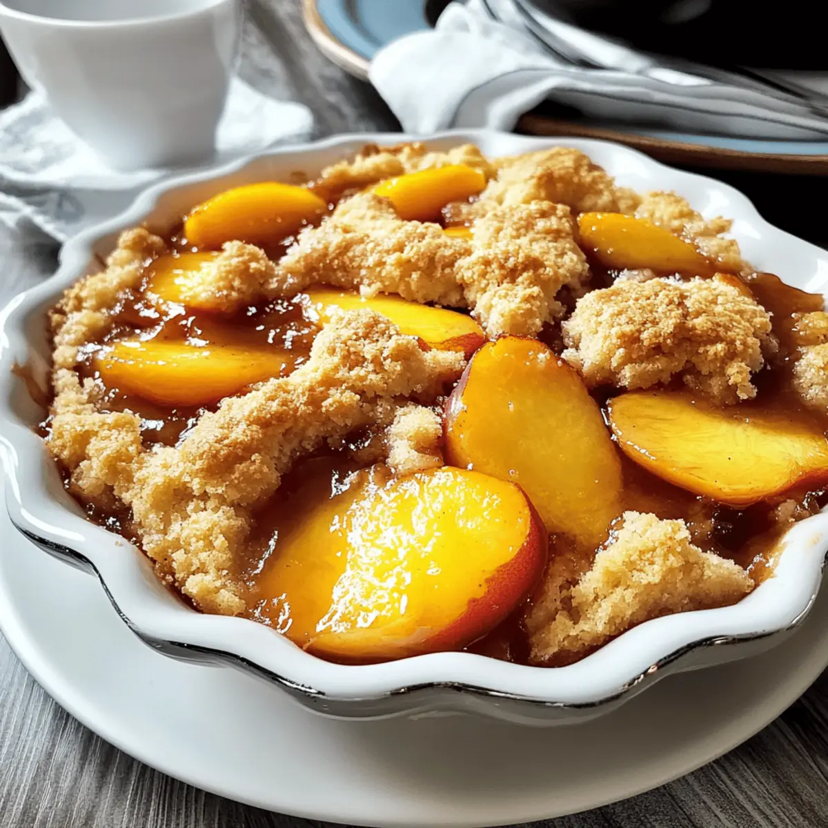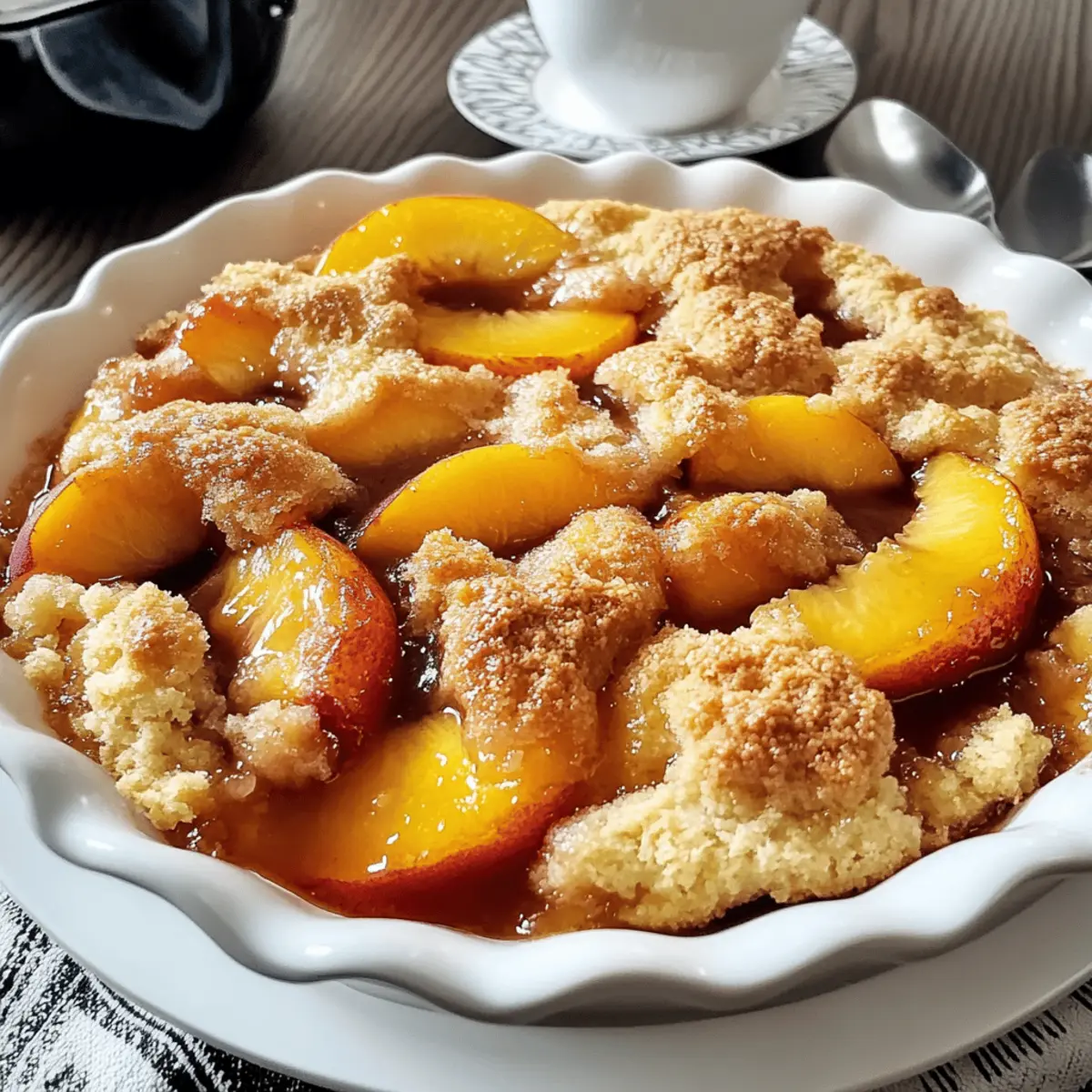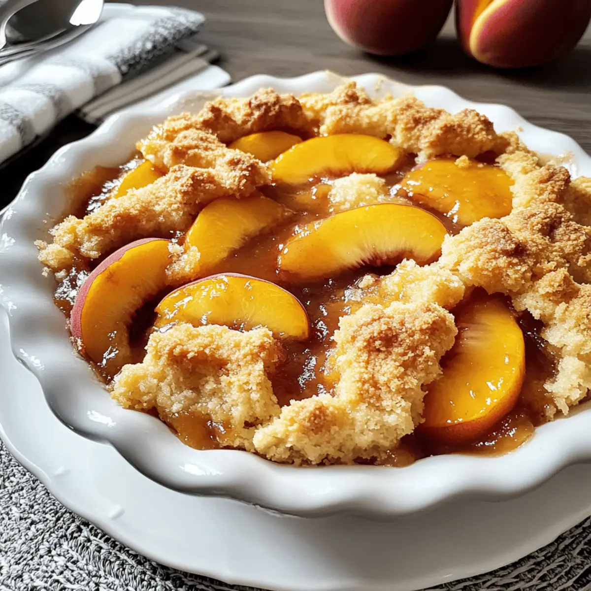 Jump to Recipe Print RecipeAs I stood in my kitchen, the scent of summertime wafted through the air, instantly transporting me to my grandmother’s porch, where warm peach cobbler was always the star of family gatherings. This Southern Peach Cobbler isn’t just a dessert; it’s a celebration of comfort, blending juicy peaches with a buttery, flaky topping that will have everyone asking for seconds. With just 30 minutes of prep and 45 minutes in the oven, this beginner-friendly recipe delivers not only nostalgia but also the joy of homemade goodness, perfect for those cozy evenings or backyard barbecues. So, why settle for fast food when you can whip up this classic treat that brings a taste of the South right to your table? Ready to discover how to make this timeless dessert? Why is Southern Peach Cobbler a Must-Try? Comforting Flavors: This Southern Peach Cobbler captures the essence of home with its warm, sweet peach filling and buttery topping. Beginner-Friendly: With only 30 minutes of prep and simple ingredients, it’s perfect for novice bakers eager to impress without the stress. Versatile Delight: Feel free to experiment with fruit substitutions like strawberries or blueberries to switch up the flavors and suit your preferences. Crowd-Pleasing Appeal: Whether for family dinners or summer barbecues, it’s sure to be a hit, making everyone come back for seconds. Why resort to fast food when a slice of homemade goodness awaits? Pair it with a scoop of vanilla ice cream for an extra-indulgent experience that everyone will cherish. Southern Peach Cobbler Ingredients For the Peach Filling • Fresh Peaches – The main star of this cobbler; opt for ripe ones for the best flavor. • Granulated Sugar (1 cup, divided) – Sweetens the filling and helps create a golden crust; feel free to use light brown sugar for a richer taste. • Brown Sugar (½ cup) – Adds caramel notes that enhance the sweetness of the peaches. • Ground Cinnamon (½ teaspoon) – Provides a warm aroma and complements the sweet peaches. • Ground Nutmeg (¼ teaspoon) – Offers subtle complexity that balances the sweetness beautifully. • Lemon Juice (2 teaspoons) – Brightens the flavor profile, ensuring it’s not overly sweet. • Vanilla Extract (1 teaspoon) – Infuses a creamy, floral quality to the filling. For the Topping • All-Purpose Flour (2 cups) – Forms the lovely base of the topping; consider substituting with gluten-free flour for a different texture. • Baking Powder (1 tablespoon) – Ensures the topping rises nicely, keeping it fluffy and light. • Salt (¼ teaspoon) – Enhances and balances the overall flavor. • Unsalted Butter (1 cup, chilled and cut into small pieces) – Critical for achieving that tender, flaky texture. • Whole Milk (1 cup) – Adds moisture for dough formation; substitute with plant-based milk if desired. Optional Toppings • Vanilla Ice Cream or Whipped Cream – Elevate this classic Southern Peach Cobbler to dessert perfection. Indulge in the robust flavors of Southern Peach Cobbler as you gather around the table, sharing laughter and memories. 🍑 Step‑by‑Step Instructions for Southern Peach Cobbler Step 1: Preheat the Oven Begin by preheating your oven to 375°F (190°C). This step is crucial for achieving that perfect golden-brown crust on your Southern Peach Cobbler. Ensure your oven is fully heated before you place your cobbler inside, allowing for even baking throughout. Step 2: Prepare the Peach Filling If you’re using fresh peaches, peel and slice them into thin wedges. In a large mixing bowl, combine the peaches with ½ cup of granulated sugar, brown sugar, ground cinnamon, ground nutmeg, lemon juice, and vanilla extract. Stir gently yet thoroughly, letting the mixture sit for 10 minutes to allow the flavors to meld and the juices to start releasing. Step 3: Make the Topping Mixture In a separate bowl, whisk together 2 cups of all-purpose flour, the remaining ½ cup of granulated sugar, baking powder, and salt. Take your time to ensure this dry mixture is well combined, as it forms the base of the topping for your cobbler, contributing to its light and airy texture. Step 4: Incorporate the Butter Next, cut in 1 cup of chilled, unsalted butter using a pastry cutter or your hands. You want the mixture to resemble coarse crumbs; this will help create a flaky topping. The butter should remain cold to ensure the best texture, so work quickly to integrate it into the dry ingredients. Step 5: Form the Dough Gradually pour in 1 cup of whole milk, mixing gently. You want to combine the ingredients just until a dough forms, being careful not to overmix as this can make your topping dense. The dough should be slightly sticky but manageable. Step 6: Assemble the Cobbler Spread the prepared peach mixture evenly in a 9×13 inch baking dish. Make sure the peaches are evenly distributed to ensure every bite of this Southern Peach Cobbler is filled with juicy flavor. Step 7: Add the Topping Using a spoon, drop dollops of the dough over the peach mixture, covering as much surface area as possible without fully pressing it into the fruit. This rustic look adds to the charm of the cobbler, making it both tempting and appetizing. Step 8: Sprinkle for Extra Flavor For an added touch of sweetness and crunch, sprinkle a little extra granulated sugar and a dash of cinnamon over the topping. This will create a delightful golden crust as it bakes, making your Southern Peach Cobbler irresistibly luscious. Step 9: Bake Until Golden Place your assembled cobbler in the preheated oven and bake for 40 to 45 minutes. You’ll know it’s ready when the topping is beautifully golden brown and the peach filling is bubbling cheerfully around the edges, creating an inviting aroma. Step 10: Cool Before Serving Once baked, remove your Southern Peach Cobbler from the oven and let it cool for 10 minutes before serving. This brief cooling time allows the filling to set slightly,