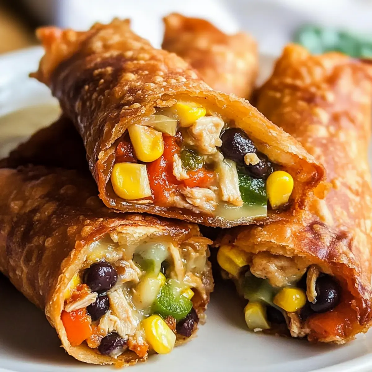 Jump to Recipe Print RecipeThere I was, staring into an empty fridge, feeling the weight of yet another night of takeout. Then it hit me: why not bring the zesty flavors of the Southwest right into my kitchen? Enter my Crispy Southwest Chicken Egg Rolls recipe! With juicy chicken, sweet corn, and a medley of fresh veggies expertly tucked into crispy wrappers, these bite-sized wonders are not only a crowd-pleaser but also make for a fantastic snack or appetizer. Plus, they’re versatile enough to be baked for a healthier twist or fried for that unforgettable crunch. As game day approaches or a family gathering is in the works, these egg rolls promise to become the highlight of your spread. Curious about how to whip up these delicious morsels and impress your guests? Stick with me through the steps! Why are these egg rolls a must-try? Flavor Explosion: Each bite is a delightful mix of tender chicken, sweet corn, and hearty black beans, encapsulating the vibrant tastes of the Southwest. Quick & Easy: The recipe comes together quickly, making it a perfect option for busy weeknights or last-minute gatherings. Adaptable: Feel free to swap in your favorite veggies or proteins—whether it’s ground turkey or extra greens, the choice is yours! For more bite-sized inspiration, check out my Japanese Egg Sandwich or try a sweet touch with Three-Ingredient Peach Sorbet. Crowd-Pleaser: Whether hosting a party or enjoying a cozy movie night, these egg rolls are sure to impress and satisfy everyone around the table! Healthier Snacking: Opt for baking instead of frying to keep things light without sacrificing flavor. Southwest Egg Rolls Recipe Ingredients • Let’s gather everything you need to create these delicious bites! For the Filling Chicken (cooked, shredded or chopped) – Main protein source; substitute with rotisserie chicken for quick prep. Corn – Adds sweetness and texture; frozen corn can be used as a substitute. Black Beans – Provides fiber and protein; drain and rinse to remove excess sodium. Spinach (chopped) – Adds nutritional value and freshness; can substitute with kale or another leafy green. Red Bell Pepper (diced) – Sweet flavor and vibrant color; other bell peppers or mild chili can be used. Jalapeño (diced, de-seeded) – Brings mild heat; omit for a milder option or substitute with green bell pepper. Cumin – Adds earthiness; essential for the Southwest flavor profile. Chili Powder – For warmth and depth; adjust according to spice preference. Salt & Black Pepper – Enhances flavors; use sea salt for a different taste. Monterey Jack Cheese – Provides creaminess and binding; substitute with cheddar or mozzarella if preferred. For the Wrapping Egg Roll Wrappers – Encases the filling; wonton wrappers can be a thinner alternative, although may yield different results. This Southwest Egg Rolls Recipe is designed to fill your kitchen with irresistible aromas and flavors, so let’s get rolling! Step‑by‑Step Instructions for Crispy Southwest Chicken Egg Rolls Recipe Step 1: Prepare the Filling In a large mixing bowl, combine the cooked, shredded chicken, sweet corn, drained black beans, chopped spinach, diced red bell pepper, and jalapeño. Sprinkle in the cumin, chili powder, salt, and black pepper. Stir the mixture well until everything is evenly coated, then gently fold in the Monterey Jack cheese to create a flavorful filling for your Southwest Chicken Egg Rolls. Step 2: Wrap the Egg Rolls Lay an egg roll wrapper on a clean, flat surface with one point facing you. Spoon about 2-3 tablespoons of the filling onto the wrapper, spreading it along the center. Fold the bottom corner up over the filling, tuck in the sides snugly, and roll the wrapper tightly upwards, sealing the edge with a dab of water. Repeat until all filling is wrapped up deliciously! Step 3: Fry the Egg Rolls Heat about two inches of vegetable oil in a large skillet over medium-high heat until it reaches 350°F. Carefully place the prepared Southwest Chicken Egg Rolls in the hot oil, cooking for 2-3 minutes on each side until they turn golden brown and crispy. Use a slotted spoon to remove them and transfer to paper towels to drain excess oil. Step 4: Bake the Egg Rolls Preheat your oven to 425°F if you prefer baking. Place the wrapped egg rolls on a parchment-lined baking sheet, making sure they aren’t touching. Lightly brush the tops with oil for that crispy finish. Bake for 15-20 minutes, flipping halfway through, until they are golden and crunchy—trust your nose to detect that uplifting aroma! Step 5: Serve with Dips Once your crispy Southwest Chicken Egg Rolls are ready, serve them warm alongside your favorite dipping sauces like avocado ranch, guacamole, or salsa. These delightful bites are perfect for sharing at gatherings or enjoying on your own during a cozy evening, bringing everyone to the table for a taste of homemade goodness! Make Ahead Options These Crispy Southwest Chicken Egg Rolls are perfect for meal prep enthusiasts! You can prepare the filling (chicken, corn, black beans, and veggies) up to 24 hours in advance—just store it in an airtight container in the refrigerator to keep everything fresh and flavorful. The assembled egg rolls can also be wrapped and stored in the fridge for up to 3 days before cooking. For best results, place parchment paper between layers to prevent sticking. When you’re ready to serve, simply fry or bake them as instructed: fry for 2-3 minutes per side or bake at 425°F for 15-20 minutes. This way, you’ll enjoy homemade deliciousness without the last-minute rush! What to Serve with Crispy Southwest Chicken Egg Rolls These delightful bites offer a wonderful opportunity to create a meal that tantalizes the taste buds and nourishes the soul. Creamy Avocado Ranch: This rich dip mirrors the egg rolls’ flavor with its coolness, making each bite a burst of freshness. Zesty Salsa: A chunky salsa adds brightness and zest, cutting through the cri