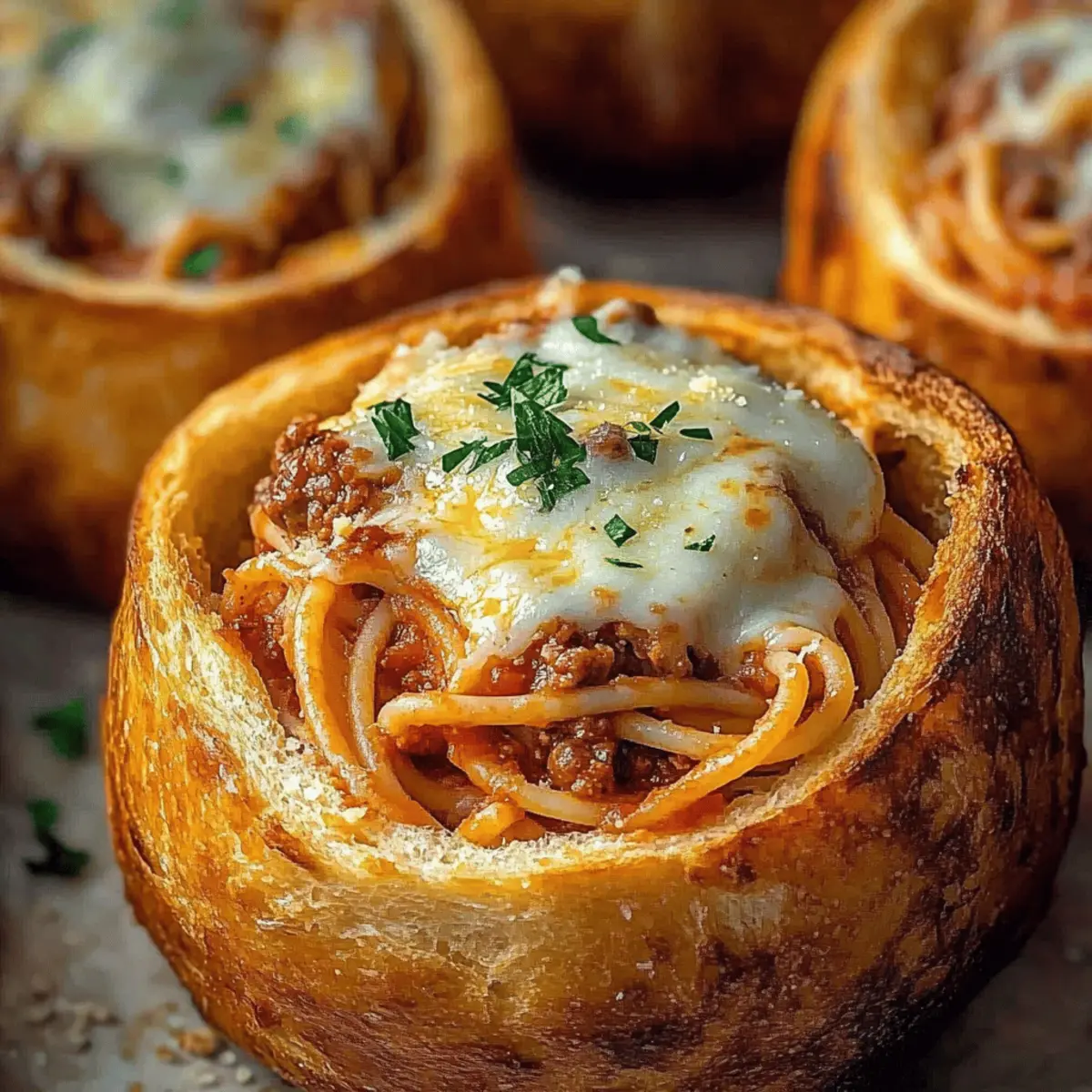 Spaghetti Garlic Bread Bowls are a comforting dish that combines crispy garlic bread and savory spaghetti, evoking memories of family dinners.