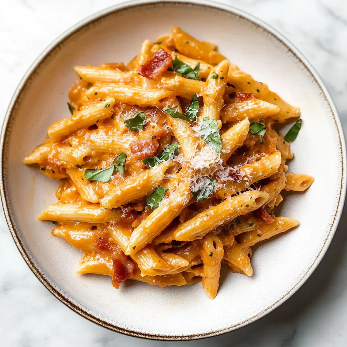 Jump to Recipe Print RecipeThe sizzle of bacon in a hot skillet instantly transports me to my happy place. With the tempting aroma wafting through the air, I’m reminded of cozy weeknight dinners shared with loved ones. Today, I’m excited to share my easy recipe for Spicy Bacon Tomato Pasta, a dish that perfectly balances creamy goodness with a gentle kick of heat. In just 30 minutes, you can whip up this mouthwatering meal, making it an ideal weeknight dinner that feels gourmet yet simple to prepare. Plus, the crispy bacon adds a delightful crunch that will keep everyone coming back for seconds. Curious about how to elevate your pasta game? Let’s dive in! Why choose Spicy Bacon Tomato Pasta? Speedy Convenience: You can prepare this delightful dish in just 30 minutes, making it perfect for busy weeknights. Flavor Explosion: The combination of creamy tomato sauce, crispy bacon, and a hint of spice creates an irresistible taste sensation. Comforting Comfort: This recipe brings a cozy, restaurant-quality experience to your dining table, perfect for those seeking comfort food. Versatile Options: Whether paired with a fresh side salad or some garlic bread, this pasta dish is adaptable to fit any meal setting. Total Crowd-Pleaser: Your family and friends will be clamoring for seconds, making it a hit for gatherings and special occasions. For more delicious ideas, check out my Tomato Spinach Shrimp or Spicy Honey Pepper dishes! Spicy Bacon Tomato Pasta Ingredients For the Pasta • Pasta – Use any short pasta shape like penne or farfalle for a perfect bite. For the Sauce • Bacon – Thick-cut is best for a satisfying crunch and savory flavor. • Onion – Provides natural sweetness; swap with shallots for a milder taste. • Garlic – Fresh is key for a robust flavor; skip the pre-minced for best results. • Dry White Wine – Enhances the sauce; choose a wine you enjoy for cooking. • Tomato Paste – Opt for double-concentrated for a deeper, richer tomato flavor. • Heavy Whipping Cream – Delivers a luscious creamy texture; half-and-half can be a lighter substitute. • Italian Seasoning – This blend of herbs adds depth; fresh herbs elevate the flavor even more. • Crushed Red Pepper Flakes – Adjust based on your heat preference for the spicy kick. For the Finish • Parmesan Cheese – Freshly grated gives the dish umami and creaminess; avoid pre-grated for best taste. • Fresh Basil – Adds bright herbal notes; parsley is a good swap if needed. • Salt & Pepper – Basic yet essential seasonings; adjust to taste for a well-balanced dish. With these ingredients, you’ll create a comforting, flavorful bowl of Spicy Bacon Tomato Pasta that’s sure to impress! Step‑by‑Step Instructions for Spicy Bacon Tomato Pasta Step 1: Boil the Pasta Start by bringing a large pot of salted water to a rolling boil. Add your preferred short pasta, like penne or farfalle, and cook according to the package instructions until al dente, usually around 8-10 minutes. Stir occasionally to prevent sticking, and keep an eye on the pasta’s texture to ensure the perfect bite. Step 2: Cook the Bacon While the pasta is cooking, heat a large skillet over medium-high heat. Add chopped thick-cut bacon and cook until it’s crispy and golden brown, about 6-8 minutes. Use a slotted spoon to transfer the bacon to a paper towel-lined plate, allowing the excess grease to drain while leaving the fat in the skillet for extra flavor. Step 3: Sauté the Onion In the same skillet with the bacon fat, reduce the heat to medium and add a chopped onion. Sauté for about 5-7 minutes, stirring frequently, until the onion turns translucent and softens. The delicious aroma will fill your kitchen, and you’ll know it’s ready when it’s fragrant and lightly caramelized. Step 4: Add Garlic and Wine Next, add minced garlic to the sautéed onion, stirring for about 30 seconds until it’s fragrant. Carefully pour in a splash of dry white wine, scraping up any brown bits from the skillet. Allow it to bubble and reduce slightly for about 30 more seconds, enhancing the flavors that will be the base of your creamy sauce. Step 5: Make the Sauce Stir in a generous dollop of tomato paste, followed by heavy whipping cream, Italian seasoning, and crushed red pepper flakes. Mix everything until smooth, allowing the sauce to gently simmer for about 5 minutes until it thickens and bubbles slightly, creating a rich, inviting sauce for your Spicy Bacon Tomato Pasta. Step 6: Combine Ingredients Once the sauce has thickened, return the crispy bacon and freshly chopped basil to the skillet. Remove from heat, and quickly stir in freshly grated Parmesan cheese, allowing it to melt into the creamy sauce. This step will add a layer of umami, making your dish irresistibly delicious. Step 7: Toss with Pasta Drain the pasta, reserving a cup of pasta water. Immediately add the drained pasta to the sauce and toss well to coat each piece thoroughly. If the sauce is too thick, loosen it with a splash of reserved pasta water until you reach your desired consistency. This will seamlessly blend the flavors in your Spicy Bacon Tomato Pasta. Step 8: Season and Serve Taste the pasta and adjust seasoning with salt and pepper as needed. Once perfectly seasoned, serve the dish hot, garnishing with extra Parmesan cheese and fresh basil if desired. The comforting, creamy pasta with crispy bacon awaits you and your loved ones, promising an unforgettable flavor experience. Make Ahead Options These Spicy Bacon Tomato Pasta ingredients are perfect for meal prep! You can cook the pasta and bacon up to 24 hours in advance. Simply refrigerate the cooked pasta in an airtight container, tossing it with a little olive oil to prevent sticking. You can also prepare the creamy sauce (up to 3 days ahead) by sautéing the onions, garlic, and other ingredients, then storing it in the fridge. When you’re ready to serve, reheat the sauce on the stovetop while adding 