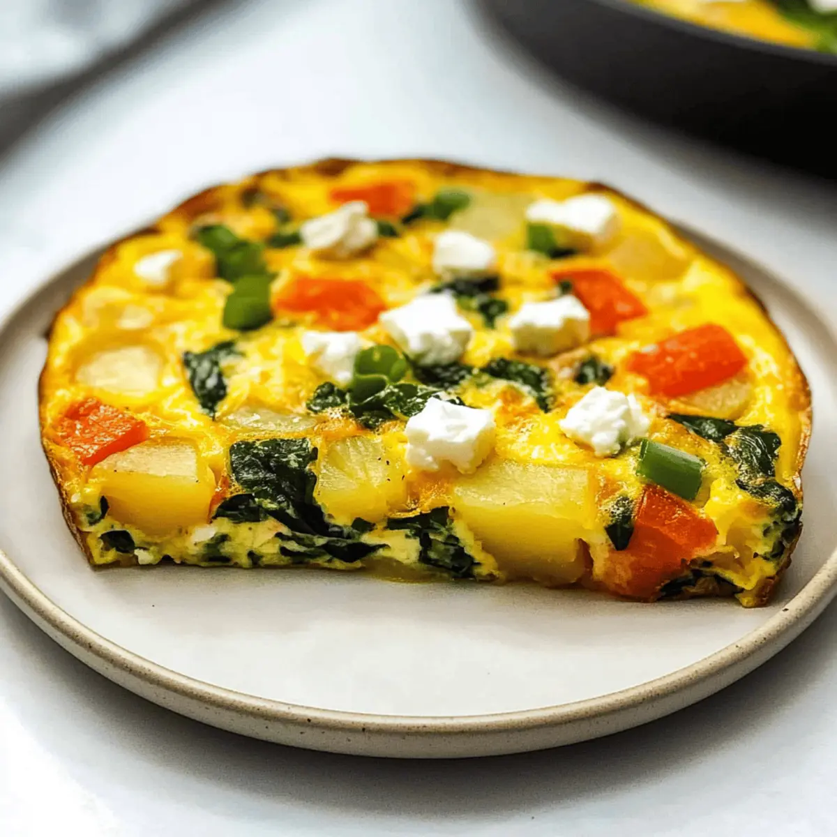 Jump to Recipe Print RecipeAs I stood in my kitchen, the savory scent of sautéing potatoes and fresh spinach began to wrap around me like a warm hug, instantly lifting my spirits. My trusty skillet was about to transform ordinary ingredients into a delightful Spinach and Potato Frittata—an effortless dish that’s perfect for breakfast or a cozy weeknight dinner. This recipe not only embraces simplicity with its one-pan approach but also caters to those of us who crave healthy, homemade food without spending hours in the kitchen. With vibrant colors and nutritious ingredients, this frittata is a feast for the eyes and the palate. Imagine the joy of serving it up for brunch or prepping it in advance for busy weekdays! Are you ready to elevate your meal prep game with this deliciously satisfying dish? Why is this frittata a must-try? Simplicity at Its Finest: This Spinach and Potato Frittata requires minimal ingredients and just one skillet, making cleanup a breeze! Flavor Explosion: The harmonious blend of creamy feta, tender potatoes, and fresh spinach delivers a rich, savory flavor that satisfies any palate. Meal Prep Champion: Perfect for preparing ahead of time, it stores well in the fridge, ensuring healthy breakfasts are always at your fingertips. Versatile Dish: With easy substitution options, feel free to customize this recipe with whatever veggies or cheeses you have on hand! Crowd Pleaser: Serve it for brunch alongside fresh salsa or a green salad, and watch it disappear in no time—every bite is a delight! Spinach and Potato Frittata Ingredients For the Frittata Eggs – The foundation of your frittata, providing a rich source of protein; use large eggs or an egg substitute for a vegan version. Milk – This adds creaminess and binds the frittata well; opt for plant-based milk for a dairy-free alternative. Sea Salt – Essential for enhancing flavor; adjust according to your preference. Black Pepper – Freshly ground pepper elevates the taste; add to suit your spice levels. Olive Oil – Ideal for sautéing ingredients, lending richness; can be substituted with butter or other oils. Russet Potatoes – The dish’s heartiness comes from these potatoes; try sweet potatoes for a unique twist. Red Pepper – Adds sweetness and a splash of color; feel free to substitute with any bell pepper. Green Onion – Offers a gentle onion flavor; shallots or chives work as great alternatives. Baby Spinach – Packed with nutrients and color, this ingredient is essential for the frittata; you can use kale or swiss chard if desired. Feta Cheese – Brings a creamy, tangy element; consider goat cheese as a substitute or omit entirely for a vegan option. Step‑by‑Step Instructions for Spinach and Potato Frittata Step 1: Preheat the Oven Begin your Spinach and Potato Frittata by preheating your oven to 450°F (232°C). This ensures the frittata will cook evenly and achieve a lovely golden color on top. While the oven heats, grab a mixing bowl or large measuring cup to whisk the eggs, milk, sea salt, and black pepper together until well combined and airy. Step 2: Sauté the Potatoes Heat a sturdy, oven-safe skillet over medium heat and add a splash of olive oil. Once the oil glistens, toss in the diced russet potatoes. Sauté them for about 5 minutes, stirring occasionally, until they turn golden brown and fork-tender. You’ll know they’re ready when they have a delightful crispness on the outside and softness inside. Step 3: Add Vegetables Next, add the diced red pepper and sliced green onion to the skillet. Continue sautéing for another 3-4 minutes until the vegetables soften and release their vibrant colors. Once softened, stir in the baby spinach, allowing it to wilt down for about 1-2 minutes. The mixture should look bright and plentiful as flavors meld together. Step 4: Combine with Egg Mixture Carefully pour the whisked egg mixture evenly over the sautéed vegetables in the skillet. Sprinkle crumbled feta cheese atop the egg and vegetable medley, letting it rest on the heat for 2-3 minutes. You’ll see the edges start to set, which means you’re almost ready for the oven! Step 5: Bake the Frittata Transfer the skillet to the preheated oven and bake for approximately 15 minutes. The frittata will puff up and turn golden, with the center set but still slightly jiggly. Keep an eye on it; once it appears firm and a beautiful golden-brown, it’s time to take it out and let it rest for a moment. Step 6: Slice and Serve Once the Spinach and Potato Frittata has cooled slightly, slice it into wedges using a sharp knife. Serve warm for a delightful breakfast or let it cool completely for meal prep. Store leftovers in sealed containers in the refrigerator for up to 4 days, making grab-and-go breakfasts an effortless delight! Storage Tips for Spinach and Potato Frittata Fridge: Store your Spinach and Potato Frittata in airtight containers for up to 4 days. This keeps it fresh and ready for a quick meal. Freezer: Freeze the frittata in individual slices wrapped in plastic wrap, then placed in a freezer bag, for up to 3 months for a convenient breakfast option. Reheating: Reheat slices in the microwave for about 1 minute or in the oven at 350°F (175°C) until heated through, ensuring it’s warm and fluffy. Meal Prep: Ideal for meal prep, this frittata can be made ahead of time and easily enjoyed throughout the week, allowing for healthy, hassle-free breakfasts! Tips for the Best Spinach and Potato Frittata Use Fresh Ingredients: Fresh spinach and high-quality eggs elevate the dish’s flavor; always choose the best produce you can find for delightful results. Don’t Overcrowd the Skillet: Using a large enough skillet allows for even cooking; overcrowding can lead to uneven textures and prevent browning. Watch the Spinach: Overcooking spinach can lead to a mushy texture; simply wilt it down for a minute to keep it vibrant and tender. Let It Set: Allow the frittata to rest for a few minut