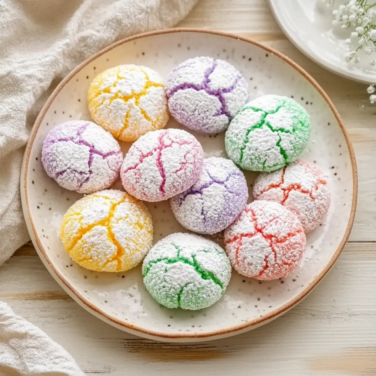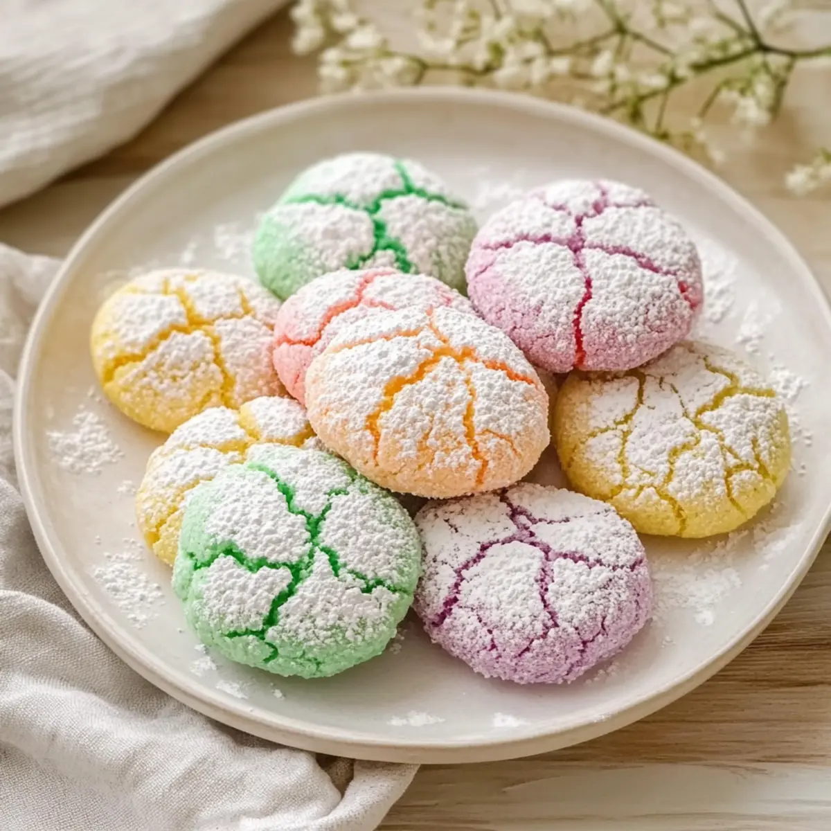 Jump to Recipe Print RecipeAs I cracked open a jar of gel food coloring and watched the vivid hues swirl into the dough, I felt a rush of excitement—the promise of festive Springtime Crinkle Cookies was just a mix away! These cheerful cookies not only deliver stunning pastel colors and delightful cracks dusted in powdered sugar but are also an absolute breeze to whip up, making them perfect for both novice bakers and seasoned pros alike. Ideal for celebrating Easter or brightening up any gathering, each bite offers a heavenly blend of sweet vanilla and almond flavors, sending taste buds waltzing into springtime bliss. Ready to indulge in a fun and easy dessert that will have everyone asking for seconds? Let’s jump into this delightful cookie adventure! Why Are Springtime Crinkle Cookies a Must-Bake? Vibrant Colors: These cookies not only taste fantastic but also bring a splash of color to your dessert table, making them perfect for any festive occasion. Beginner-Friendly: Ideal for novice bakers, this recipe simplifies the process with minimal ingredients and straightforward steps—no fancy equipment required! Flavorful Delight: Bursting with sweet vanilla and almond flavors, each bite is a delicious treat that will leave everyone craving more. Customizable Joy: With options for various pastel shades, you can tailor these cookies to any event, such as baby showers or Easter celebrations. Pair them with a refreshing springtime lemonade for a delightful afternoon treat. Springtime Crinkle Cookies Ingredients • Perfect for your festive baking! For the Cookie Dough All-purpose flour – Provides structure; substitute with a gluten-free blend for a gluten-free version. Baking powder – Aids in leavening for that light and airy texture we love. Salt – Enhances the flavor, bringing balance to the sweetness. Unsalted butter (softened) – Adds richness and moisture; margarine works in a pinch! Granulated sugar – Essential for sweetness and caramelization during baking. Large eggs – Binds the ingredients and helps create that soft texture. Vanilla extract – Infuses comforting aroma and flavor, making these cookies irresistible. Almond extract (optional) – Adds a subtle nutty flavor; feel free to substitute with extra vanilla if desired. For the Coating Powdered sugar – Coats the dough balls for that signature crinkle effect after baking. Gel food coloring (pastel shades) – Used to tint the dough; gel ensures colors stay vibrant without thinning the dough. These Springtime Crinkle Cookies are a delightful way to brighten any occasion! Step‑by‑Step Instructions for Springtime Crinkle Cookies Step 1: Preheat and Prepare Start your journey by preheating your oven to 350°F (175°C). While the oven warms up, line a baking sheet with parchment paper to prevent sticking and make cleanup easy. This simple step ensures your Springtime Crinkle Cookies bake evenly and achieve that perfect chewy texture with crisp edges. Step 2: Combine Dry Ingredients In a medium bowl, whisk together 2 cups of all-purpose flour, 2 teaspoons of baking powder, and half a teaspoon of salt. This mixture provides structure and flavor to your cookies. Make sure there are no lumps, as a uniform blend helps the cookies rise beautifully. Set the bowl aside while you focus on the wet ingredients. Step 3: Cream Butter and Sugar Grab a large mixing bowl and beat together ½ cup of softened unsalted butter and 1 cup of granulated sugar using an electric mixer. Mix on medium speed for about 2-3 minutes until the mixture is light and fluffy. This aeration is key for your Springtime Crinkle Cookies, contributing to their tender and chewy texture. Step 4: Incorporate Eggs and Extracts Now, crack in 2 large eggs, adding them one at a time to the creamed mixture. Ensure you mix well after each addition for about 30 seconds. Then, stir in 2 teaspoons of vanilla extract and ½ teaspoon of optional almond extract, merging all these flavors together until smooth and delightful. Step 5: Combine Wet and Dry Mixtures Gradually incorporate the dry flour mixture into the wet ingredients, stirring gently with a spatula or wooden spoon. Mix until just combined, ensuring not to overwork the dough. You should end up with a thick and cohesive dough that will be the base for your colorful Springtime Crinkle Cookies. Step 6: Color the Dough Divide your dough into portions and mix in your choice of gel food coloring to create lovely pastel shades. For even coloring, fold the gel in gently until you achieve a uniform look. Then, cover the dough with plastic wrap and chill in the refrigerator for at least 30 minutes. This step makes it easier to shape the dough and helps prevent spreading during baking. Step 7: Shape and Coat Once chilled, use a tablespoon to scoop portions of dough. Roll each piece into a ball and then roll them in powdered sugar, ensuring they are nicely coated. This will give your Springtime Crinkle Cookies that signature crackled effect, allowing them to bake up beautifully with white sugar contrasting against colorful dough. Step 8: Bake the Cookies Place the coated dough balls on your prepared baking sheet, spacing them about 2 inches apart. Bake in your preheated oven for about 10-12 minutes, or until the cookies’ tops are cracked and edges are set but the centers are still soft. These visual cues are essential to maintain that chewy center you’ll love! Step 9: Cool and Enjoy Allow your cookies to cool on the baking sheet for 3-5 minutes before transferring them to a wire rack to cool completely. This resting period lets the cookies firm up, enhancing their texture and flavor. Once cooled, you’ll have a delightful batch of Springtime Crinkle Cookies ready to brighten any gathering! Springtime Crinkle Cookies Variations Feel free to make these cookies your own with exciting twists and substitutions that spark joy in every bite! Almond-Free: Swap almond extract for an equal amount of extra vanilla extract fo