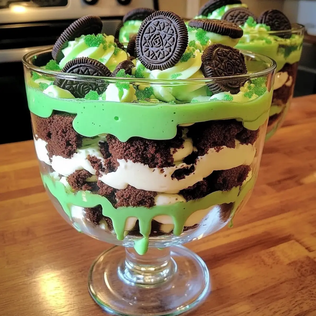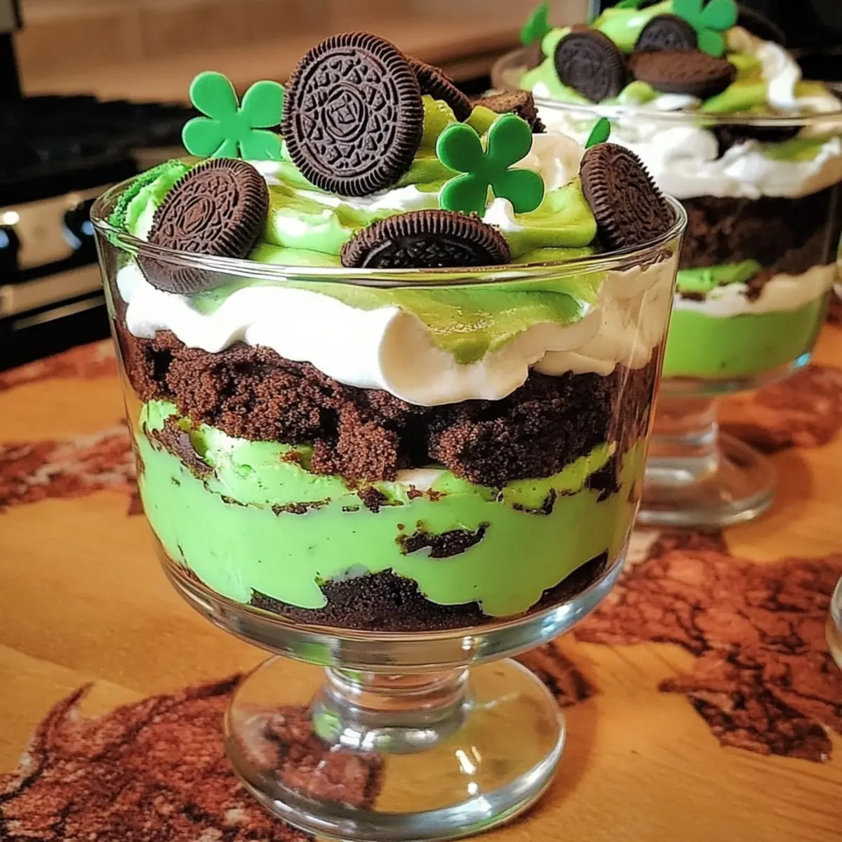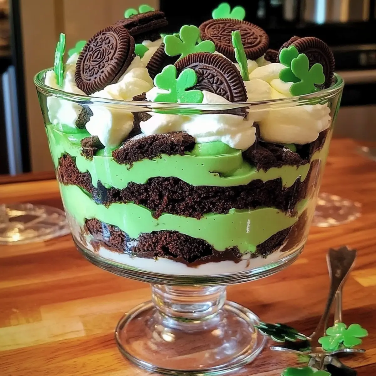 Jump to Recipe Print RecipeThe air was thick with the scent of chocolate as I rummaged through my pantry, searching for the perfect way to celebrate St. Patrick’s Day. That’s when I stumbled upon my trusty brownie mix, and inspiration struck! My St. Patrick’s Day Brownie Trifle is the kind of dessert that takes minimal effort but delivers maximum joy. This no-bake treat features layers of rich brownies, creamy vanilla pudding, and that delightful crunch of mint Oreos, making it the ultimate crowd-pleaser. Not only is it simple to assemble, but it also presents beautifully, creating a festive centerpiece on your table. Whether you’re hosting a gathering or just indulging in some family time, this trifle will have everyone reaching for seconds. Ready to whip up this delightful layered masterpiece? Let’s dive in! Why Is This Trifle a Must-Try? Effortless Preparation: This St. Patrick’s Day Brownie Trifle is incredibly simple to make, requiring no baking skills at all! Perfect for busy days or spontaneous gatherings. Layered Delight: The luscious layers of hearty brownies, creamy pudding, and crunchy Oreos create a visually stunning dessert that will impress your guests. Versatile Options: Feel free to switch up flavors with pistachio pudding or graham crackers for a unique twist! It’s all about customization. Crowd Favorite: With its rich chocolatey taste and festive presentation, this trifle is bound to be the star of any celebration! Serve it up alongside a refreshing Watermelon Cucumber Salad for a well-rounded treat. Make-Ahead Friendly: Prepare it a day in advance to save time and let the flavors meld beautifully. Enjoy the compliments when your guests dive into this delicious trifle! St. Patrick’s Day Brownie Trifle Ingredients Get ready to create this festive no-bake dessert! For the Brownies Brownie Mix – The foundation of this trifle, offering a rich chocolate flavor; just grab any 8×8 pan size box. For the Pudding Instant Vanilla Pudding Mix – Creates a creamy filling; consider substituting with pistachio pudding for a festive green hue. Green Food Coloring – Enhances the visual appeal; optional if using pistachio pudding. For the Topping Cool Whip – Provides a light and airy texture; feel free to use homemade whipped cream for a richer flavor. Mint Oreos – Adds a delightful crunch and minty taste; crush and sprinkle on top for the final touch. Step‑by‑Step Instructions for St. Patrick’s Day Brownie Trifle Step 1: Prepare Brownies Preheat your oven to 350°F (175°C). Prepare the brownie mix according to package instructions, then pour it into an 8×8 pan. Bake for approximately 20-25 minutes, or until a toothpick inserted in the center comes out clean. Once baked, remove from the oven and allow the brownies to cool completely in the pan. Step 2: Make Pudding In a mixing bowl, whisk together the instant vanilla pudding mix and milk as per package directions. For an added festive touch, stir in a few drops of green food coloring until you reach your desired shade of green. Let the pudding sit for about 5 minutes until it thickens, then gently fold in the Cool Whip to create a light, creamy filling for your St. Patrick’s Day Brownie Trifle. Step 3: Crush Oreos While the pudding is setting, take your mint Oreos and place them in a large Ziploc bag. Seal the bag tightly, then use a rolling pin to crush the cookies into fine crumbs. This should take about 3-4 minutes of rolling. Set aside the crushed Oreos for layering on top of your trifle. Step 4: Assemble Trifle In a large trifle bowl, start layering the St. Patrick’s Day Brownie Trifle by first cutting the cooled brownies into small squares and placing them at the bottom. Follow with a generous layer of the green pudding mixture, and then add a layer of Cool Whip. Repeat this layering process until all ingredients are used, finishing with a layer of crushed Oreos on top for that delightful crunchy finish. Step 5: Chill Once assembled, cover the trifle bowl with plastic wrap and refrigerate for at least 2 hours before serving. This chilling time allows the flavors to meld beautifully and the layers to set. If you have time, preparing the trifle a day ahead will enhance the overall taste, allowing everyone to enjoy a perfectly chilled St. Patrick’s Day Brownie Trifle. Make Ahead Options These St. Patrick’s Day Brownie Trifle layers are perfect for meal prep, making your celebrations smoother and stress-free! You can prepare the brownies and pudding up to 24 hours in advance; simply store them in airtight containers to maintain their freshness. When you’re ready to assemble, cut the cooled brownies and layer them with the pudding and Cool Whip, and finish with the crushed Oreos just before serving for that delightful crunch. The trifle should chill in the refrigerator for at least 2 hours (or overnight for best results), allowing the flavors to meld beautifully together, ensuring your dessert is just as scrumptious as if made on the day. Storage Tips for St. Patrick’s Day Brownie Trifle Fridge: Keep your St. Patrick’s Day Brownie Trifle covered in the refrigerator for up to 3 days for optimal freshness. Ensure it’s loosely wrapped to avoid absorption of fridge odors. Freezer: For longer storage, freeze individual portions in airtight containers for up to 1 month. Thaw in the fridge overnight before serving for best texture. Serving: Enjoy the trifle chilled straight from the fridge, but if frozen, allow it to sit at room temperature for about 15 minutes to soften before serving. Avoid Reheating: This dessert is best enjoyed cold, and reheating is not recommended as it can alter the texture of the whipped topping and pudding layers. Expert Tips for St. Patrick’s Day Brownie Trifle Cool Brownies Completely: Allow your brownies to cool completely before cutting; warm brownies can melt the layers and ruin your beautiful trifle. Try Flavored Puddings: Experiment with flavored pudding mixes