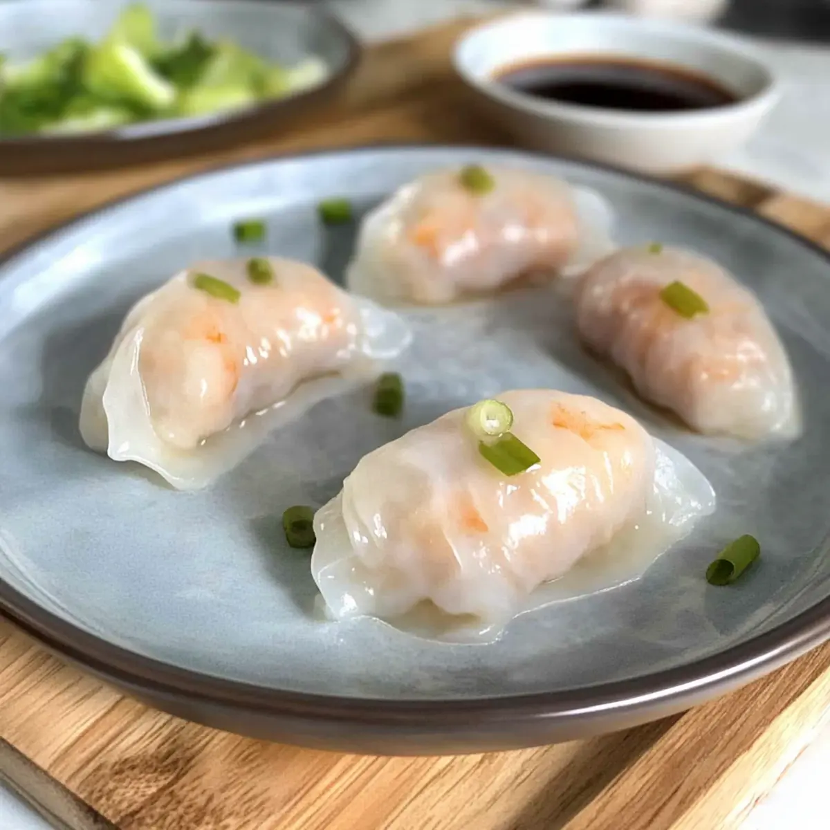 Jump to Recipe Print RecipeAs I sat sipping my jasmine tea, the tantalizing aroma of dumplings wafted through my kitchen, instantly transporting me to a bustling dim sum parlor. These Easy Steamed Rice Paper Shrimp Dumplings (Har Gow) capture that authentic experience without the fuss of traditional dumpling skins. With a chewy, translucent wrapper cradling juicy shrimp and crisp bamboo shoots, they’re not just delicious; they’re a quick and hassle-free way to impress your family and friends. Plus, the gluten-free rice paper hack means everyone can enjoy these delightful treats. Curious about how to craft these little parcels of joy in your own kitchen? Let’s dive in! Why Are These Dumplings So Special? Authenticity: Steamed Rice Paper Shrimp Dumplings deliver a genuine dim sum experience that transports you straight to your favorite Chinese cuisine spot. Easy to Make: No need for difficult dough-making here! This recipe simplifies the process with rice paper, making it perfect for home cooks of all skill levels. Flavor Explosion: Each bite features juicy shrimp, crunchy bamboo shoots, and savory spices, creating a delightful burst of umami perfection. Versatile Option: Adjust the filling to suit your taste—try swapping shrimp for chicken or tofu or adding vibrant veggies for a fresh twist! Crowd-Pleaser: Whether it’s a cozy family dinner or a gathering with friends, these dumplings are sure to impress and satisfy everyone’s cravings. Pair them with a light dipping sauce and maybe some Garlic Butter Shrimp on the side for a complete meal! Steamed Rice Paper Shrimp Dumplings Ingredients • Curious about what’s inside these delightful bites? Here’s what you’ll need! For the Filling Raw shrimp – Use raw, peeled, and deveined shrimp for the best texture and flavor. Bamboo shoots – Adds crunch; ensure they are thinly sliced for even distribution within the filling. Oyster sauce – Provides savory depth; can substitute with soy sauce for a vegetarian option. Sesame oil – Introduces nutty flavor; can replace with peanut oil if unavailable. Minced ginger – Adds warmth and spice; fresh ginger is preferable but ground ginger can work in a pinch. Cornstarch – Helps bind the filling; substitute with potato starch for a gluten-free option. Salt and white pepper – Seasoning; adjust to taste based on preference. For the Wrapper Rice paper – The star of the show; ensures a delightful, chewy texture in your steamed rice paper shrimp dumplings. Other gluten-free wraps may be used if rice paper is not available. Step‑by‑Step Instructions for Steamed Rice Paper Shrimp Dumplings Step 1: Prepare the Filling Start by patting the raw shrimp dry and chop them roughly into small pieces. In a mixing bowl, combine the chopped shrimp with thinly sliced bamboo shoots, oyster sauce, sesame oil, minced ginger, cornstarch, and a sprinkle of salt and white pepper. Mix everything gently until the ingredients are well-coated. This flavorful filling will be the heart of your steamed rice paper shrimp dumplings. Step 2: Prepare Rice Paper Wrappers Cut the rice paper into quarters and arrange them in a circle on a clean surface. Pour warm water into a shallow dish, and briefly dip each rice paper piece until it softens and becomes pliable, taking care not to soak them too long to avoid tearing. You’ll know they are ready when they become slightly translucent—this will create the perfect wrapper for your dumplings. Step 3: Wrap the Dumplings Take one softened piece of rice paper and place 1-2 teaspoons of the prepared shrimp filling in the center. Gently fold the bottom edge up over the filling and then fold the sides from left to right, creating pleats to seal the dumpling securely. Ensure there are no gaps to keep the delicious filling contained. Repeat this process until all the filling is enclosed in rice paper, forming the delightful steamed rice paper shrimp dumplings. Step 4: Steam the Dumplings Set up a bamboo steamer over a pot of simmering water, ensuring that the water does not touch the steamer’s base. Place the dumplings in the steamer basket, leaving space in between for the steam to circulate. Cover and steam for about 9 minutes, or until the shrimp is fully cooked and the wrapper is glossy. You’ll know they’re ready when they turn slightly opaque and have a chewy texture. Step 5: Serve Once cooked, carefully remove the dumplings from the steamer. Let them rest for a brief moment to avoid tearing when serving. Plate your steamed rice paper shrimp dumplings alongside a dipping sauce made of soy sauce, sugar, and chili oil for a pop of flavor. Enjoy these beauties while they’re warm for the best taste and texture! What to Serve with Easy Steamed Rice Paper Shrimp Dumplings? Enjoying a plate of these dumplings pairs beautifully with a variety of delightful sides and beverages that elevate your meal experience. Light Soy Dipping Sauce: A simple soy sauce with a hint of chili balances the umami flavor in the dumplings perfectly. Crunchy Asian Salad: A fresh salad with sesame dressing adds a delightful crunch, enhancing the meal’s texture and flavors. Steamed Broccoli: Tender, vibrant broccoli complements the dumplings, adding a pop of color while keeping the meal light and nutritious. Cilantro Lime Rice: Fragrant rice infused with cilantro and lime introduces a zesty element, making each bite more refreshing. Chili Oil Drizzle: For those who enjoy a kick, a drizzle of chili oil over the dumplings amplifies the flavor profile, creating an exciting contrast. Jasmine Tea: Sipping warm jasmine tea enhances the entire experience, harmonizing the flavors and providing a soothing backdrop to your meal. With these pairings, you’re set for a memorable dining experience that captures the essence of casual yet elevated dining. Storage Tips for Steamed Rice Paper Shrimp Dumplings Fridge: Store leftover steamed rice paper shrimp dumplings in an airtight container for up to 2 d