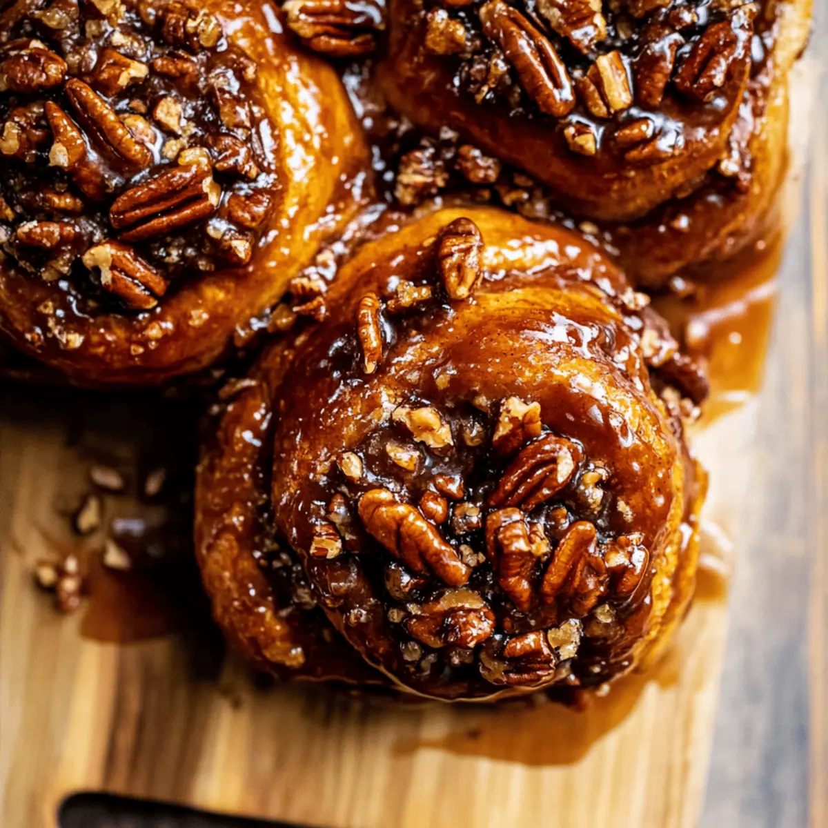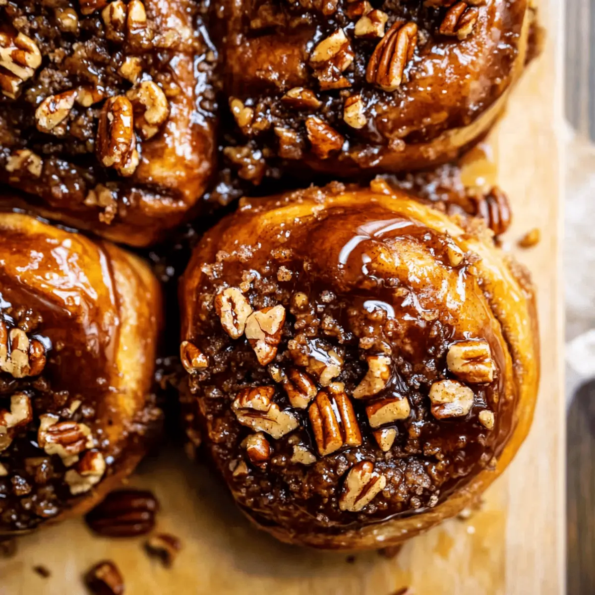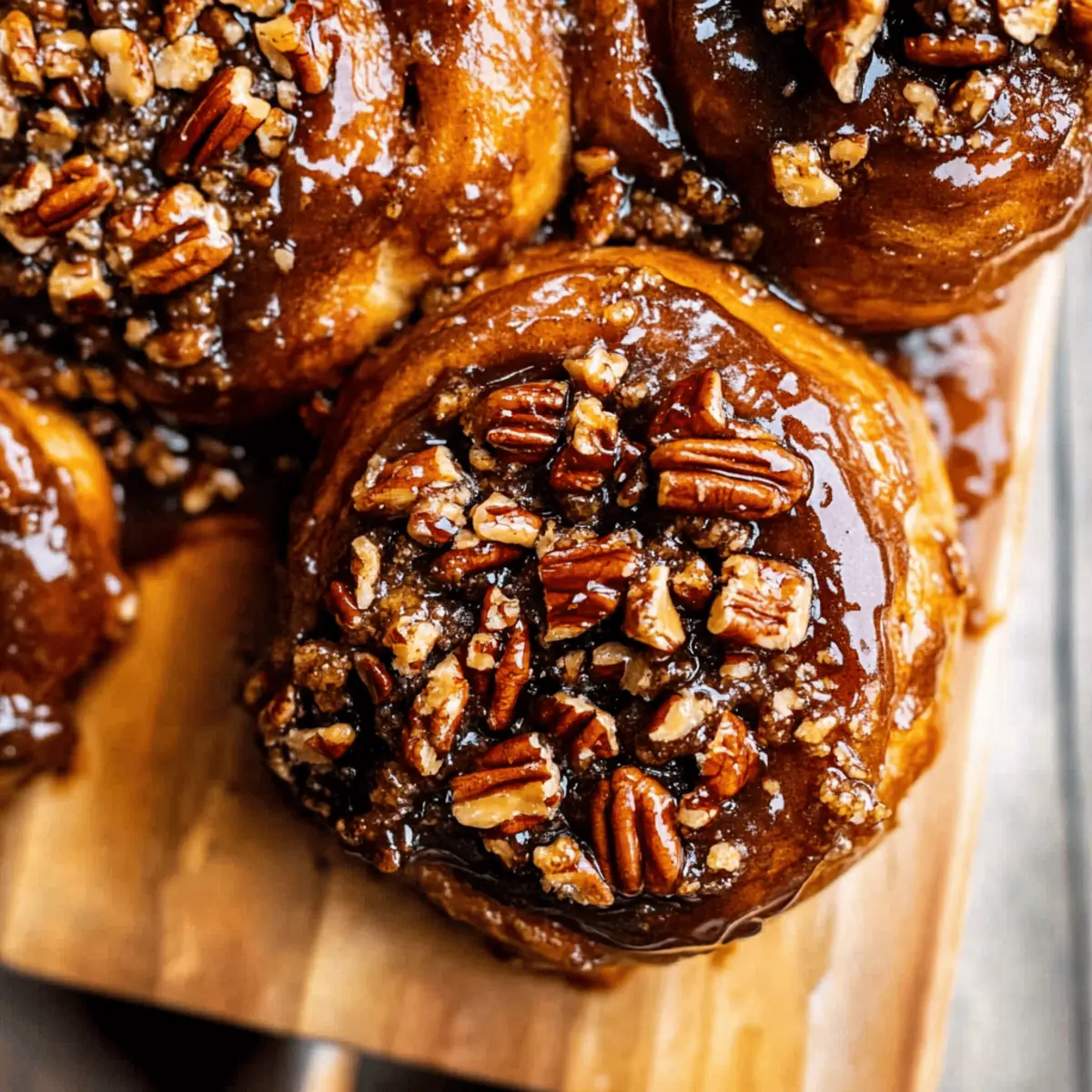 Jump to Recipe Print RecipeThe sweet aroma of baking fills the air as I roll out soft, pillowy dough, eager for my favorite weekend ritual. Giant Sticky Buns with Maple Pecan Topping are not just a breakfast treat; they’re a cherished tradition in my home, where the weekends are meant for relaxation and indulgence. These delightful sweet rolls offer a perfect way to gather friends or family around the table, showcasing an irresistible combination of gooey maple pecan sweetness and the comforting warmth of cinnamon. A major perk? You can prepare the dough a day in advance, making them an effortless choice for brunch gatherings or cozy Sunday breakfasts. Can you already envision pulling these beauties apart, the rich topping oozing with every twist? Let’s dive into the magic of making this classic treat! Why Are These Sticky Buns Irresistible? Mouthwatering Aroma: As they bake, the heavenly scent of cinnamon and maple wafts through your home, beckoning everyone to the kitchen. Giant Size: These buns are not your average sweet rolls—they’re enormous, making a stunning centerpiece for any brunch or family gathering. Make-Ahead Convenience: Prepare the dough the night before and enjoy a leisurely morning with freshly baked buns, warming them up in the oven. Crowd-Pleasing Flavor: The unique combination of gooey maple pecan topping and fluffy cinnamon rolls delights sweet lovers of all ages. Versatile Options: Feel free to swap pecans for walnuts, or try adding a dash of nutmeg for an extra layer of flavor—customize them to fit your taste! Sticky Buns Ingredients • Everything you need for these delicious treats! For the Dough Milk – Activates the yeast and adds moisture; warm it to 110°F for the best results. Active dry yeast – The leavening agent that ensures fluffy buns; make sure it’s fresh for an optimal rise. Large eggs – Provide structure and richness; use them at room temperature for better incorporation. All-purpose flour – Acts as the main structure ingredient; spoon and level to avoid compacting. White granulated sugar – Sweetens the dough and helps with browning; can be swapped with brown sugar for a deeper flavor. Salt – Enhances flavor and controls yeast activity; be sure not to omit. Unsalted butter – Adds flavor and tenderness to the dough; use it at room temperature for easy mixing. For the Filling Brown sugar – Sweetens the mixture and keeps it moist; either light or dark can work interchangeably. Ground cinnamon – Infuses sweet warmth into the dough; adjust according to your taste preference. For the Topping Maple syrup – This key ingredient adds a rich sweetness and complexity to the sticky topping. Heavy cream – Enhances richness; substitute with milk for a lighter version if desired. Pure vanilla extract – A flavor booster; avoid imitation for the best outcome. Cornstarch – Helps thicken the sticky topping; can be skipped if needed. Chopped pecans – Provide crunch and flavor; feel free to substitute with walnuts or leave them out for a nut-free option. The perfect blend of these ingredients is what makes these sticky buns irresistible! Step‑by‑Step Instructions for Giant Sticky Buns with Maple Pecan Topping Step 1: Activate Yeast Warm the milk to 110°F using a microwave or stovetop, then pour it into a bowl and sprinkle the active dry yeast on top. Stir gently and allow it to sit for about 10 minutes until it becomes frothy, indicating that your yeast is active. This step is crucial for the fluffy texture of your giant sticky buns. Step 2: Prepare Dough In a large mixing bowl, sift the all-purpose flour, then whisk in the sugar and salt. Add the cubed unsalted butter and mix until the butter is incorporated, resembling pea-sized crumbs. This creates a tender dough base. Next, combine the beaten eggs and the activated yeast mixture, incorporating it with a wooden spoon or your hands until everything comes together into a shaggy dough. Step 3: Knead the Dough Transfer the dough to a floured surface and knead for about 5 minutes until it is smooth and elastic. Alternatively, you can use a stand mixer fitted with a dough hook on low speed for the same duration. Proper kneading develops gluten, providing structure and chewiness to your giant sticky buns. Step 4: First Rise Lightly grease a large bowl with oil and place the dough inside, turning it to coat evenly. Cover the bowl with plastic wrap or a clean kitchen towel and let it rise in a warm area for about 1 hour, or until doubled in size. Alternatively, for convenience, you can refrigerate the dough overnight to develop deeper flavors. Step 5: Make Filling In a medium bowl, mix together the softened butter, brown sugar, and ground cinnamon using a spatula or a whisk until the mixture is smooth and well combined. This filling is what gives the giant sticky buns their deliciously sweet and warm flavor, so don’t rush this step! Step 6: Prepare Topping In a mixing bowl, beat together melted butter and brown sugar until smooth, then add the maple syrup, heavy cream, vanilla extract, salt, cornstarch, and a sprinkle of cinnamon. Combine these ingredients until you have a thick, luscious topping that will ooze over your finished sticky buns when baked. Step 7: Assemble Buns On a floured surface, roll out the risen dough into a large rectangle. Spread the cinnamon filling evenly over the dough, leaving a small margin around the edges. Carefully roll the dough into a log and cut it into six equal pieces. Place each piece into a greased baking pan, ensuring they fit snugly in the pan with the maple pecan topping spread evenly beneath. Step 8: Second Rise Cover the assembled buns with a tea towel and let them rise for another 20 minutes at room temperature. This second rise will allow the dough to become pillowy and fluffy, which is essential for achieving the ideal texture for your giant sticky buns. Step 9: Bake Preheat your oven to 375°F, making sure it has heated fully before bak