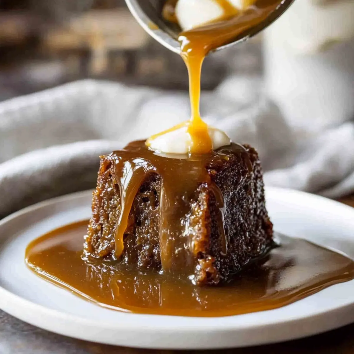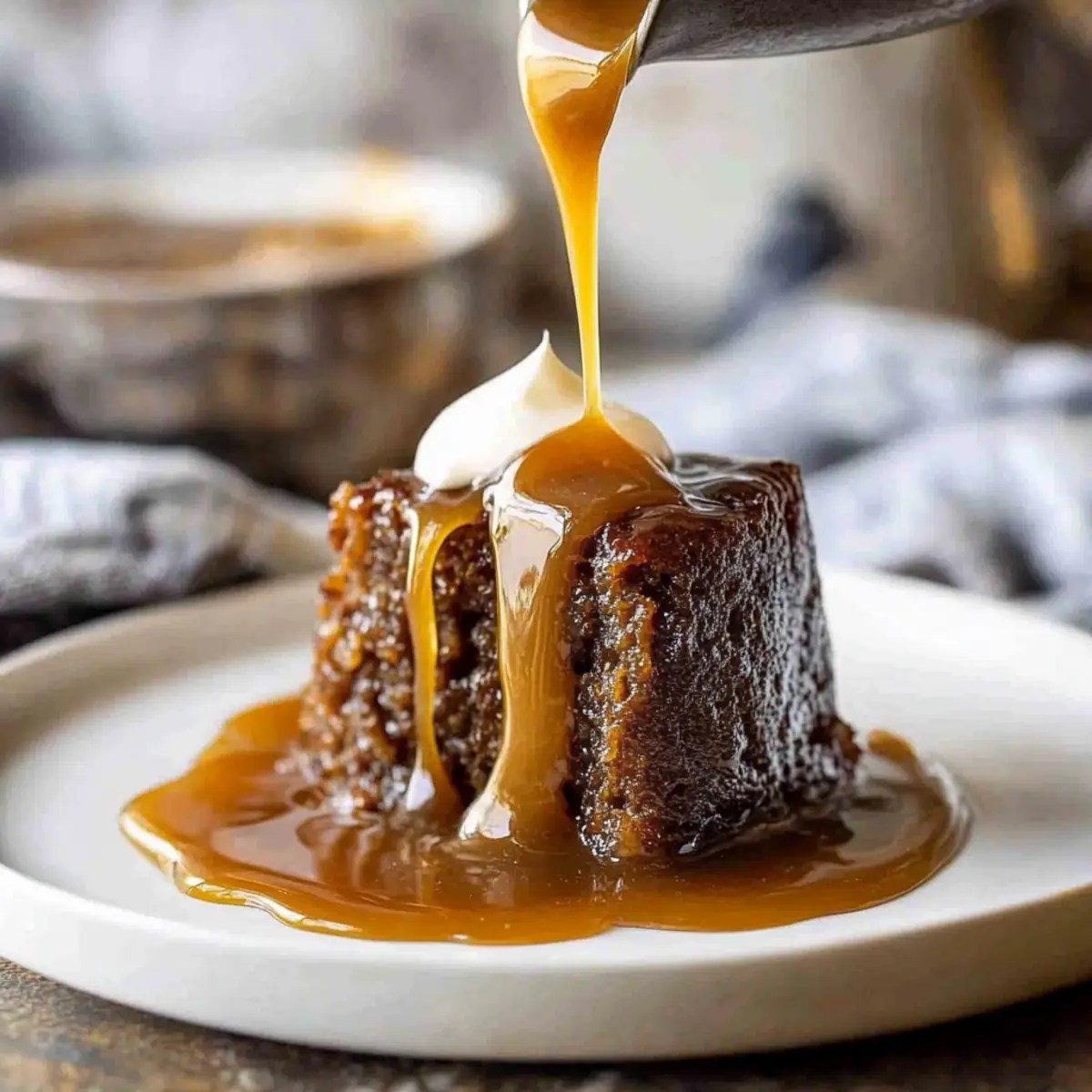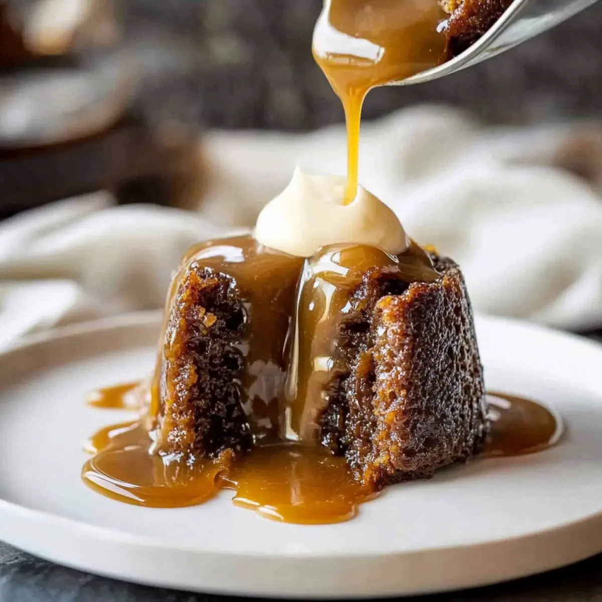 Jump to Recipe Print RecipeAs my friends and I gathered around the table, laughter filled the air, but the real star was a steaming dish of Sticky Date Pudding, exuding a caramelly aroma that only hinted at the indulgence to come. This Ultra Moist Sticky Date Pudding is not just a dessert; it’s an experience that transports you back to homey kitchens and cherished gatherings. The combination of sweet, rich dates and a luscious butterscotch sauce makes it a perfect indulgent treat for any occasion. Whether you choose to bake it in one large pan or in individual servings, you’ll find its comforting texture and flavor to be an instant crowd-pleaser. Plus, it’s an effortless way to sweeten up any meal, leaving everyone begging for seconds. So, are you ready to treat yourself and your loved ones to this delightful classic? Why is Sticky Date Pudding a Must-Try? Irresistible Moisture: This pudding boasts an incredibly soft texture, making it utterly delightful with each spoonful. Gooey Butterscotch Bliss: The generous drizzle of rich butterscotch sauce adds an intoxicating sweetness that elevates the dessert to new heights. Versatile Serving Options: You can make either one large pudding or individual portions, perfect for any gathering or cozy family dinner. Nostalgic Flavors: Each bite is a warm embrace of sweetness and familiarity, reminiscent of home-cooked memories. Easy to Prepare: With straightforward steps, you’ll have this indulgent treat ready in no time—ideal for busy nights! Enjoy this dessert warm with a scoop of ice cream or consider storing leftovers for a later treat; they only get better as they sit! Sticky Date Pudding Ingredients Indulge in the joys of homemade baking! For the Pudding • Pitted Dates – Provides natural sweetness and moisture; can be replaced with prunes if desired. • Baking Soda – Helps soften the dates during prep; no substitutes necessary for this recipe. • Boiling Water – Rehydrates the dates, making them easier to mash; must be used boiling. • Brown Sugar – Adds depth and a hint of caramel flavor; can substitute with light brown sugar. • Unsalted Butter – Contributes richness and moisture to the batter; ensure it’s softened for easy mixing. • Eggs – Provides structure and moisture; use room temperature eggs for best results. • Plain Flour – Acts as the primary dry ingredient for structure; gluten-free flour can be used if needed. • Baking Powder – Helps the pudding rise and become fluffy; ensure it’s fresh for best results. For the Butterscotch Sauce • Thickened Cream – Used to create a rich butterscotch sauce; substitutions include heavy cream or coconut cream for a lighter version. • Vanilla Extract – Enhances the flavor of the sauce; no substitutes needed for a delightful aroma. Now that you’re armed with these Sticky Date Pudding ingredients, it’s time to start creating a comforting masterpiece that will have everyone asking for seconds! Step‑by‑Step Instructions for Sticky Date Pudding Step 1: Preheat and Prepare Begin by preheating your oven to 180°C (350°F). While the oven heats, grease your chosen pudding moulds or line a square cake pan with parchment paper to ensure easy release. This prep step is crucial to achieving that perfect texture for your Sticky Date Pudding. Step 2: Soak the Dates In a mixing bowl, combine the pitted dates with the baking soda. Pour the boiling water over the mixture and let it sit for about 10 minutes. This soaking process will soften the dates, making them easier to mash and incorporate, giving your pudding the rich flavor and moisture it deserves. Step 3: Mash the Dates After the 10 minutes have passed, use a fork or potato masher to mash the dates until smooth. The mixture should resemble a thick paste. This is a key step for your Sticky Date Pudding, as a well-mashed date mixture ensures even distribution throughout the batter, resulting in a deliciously moist dessert. Step 4: Cream the Butter and Sugar In a separate bowl, cream together the softened unsalted butter and brown sugar using a hand mixer until the mixture is smooth and fluffy. This should take about 2-3 minutes. As you create this rich base, the sweetness will elevate the overall flavor of your Sticky Date Pudding, making it a delightful treat. Step 5: Add Eggs Once your butter and sugar are creamed, add the room temperature eggs one at a time, mixing well after each addition. This process adds structure and moisture to your batter, ensuring your Sticky Date Pudding has a tender crumb. The mixture should be well combined and smooth before proceeding. Step 6: Combine Dry Ingredients Next, fold in the plain flour and baking powder gradually, mixing just until combined. Be careful not to overmix, as this could make the pudding dense. The batter should remain light and airy, which is essential for achieving that perfect balance in your Sticky Date Pudding. Step 7: Add the Date Mixture Gently fold in the mashed date mixture into the batter until fully incorporated. The batter will take on a lovely dark hue as the dates blend in, and this is a sign that you’re heading toward a beautifully moist Sticky Date Pudding. Step 8: Bake the Pudding Pour the batter into the prepared pan or distribute it evenly among your individual moulds. For a large pudding, bake for approximately 35 minutes, or until a skewer inserted into the center comes out clean. If baking individual puddings, aim for about 25 minutes. Enjoy the heavenly aroma wafting through your kitchen! Step 9: Soak with Butterscotch Sauce Once baked, remove the pudding from the oven and immediately poke holes all over the top using a skewer. Pour approximately half of your prepared butterscotch sauce over the pudding to soak in. Let it sit for about 10 minutes to absorb the gooey goodness, enriching your Sticky Date Pudding’s flavor and moisture. Step 10: Serve with Extra Sauce Serve your Sticky Date Pudding warm, drizzled with additional 