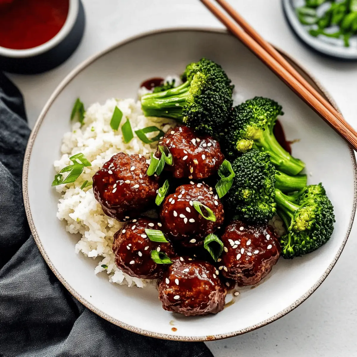 Jump to Recipe Print RecipeAs the savory aroma of Asian spices wafted through my kitchen, I couldn’t help but feel a sense of comfort and excitement. Nothing beats the joy of serving a family-friendly meal that’s not only quick but also bursting with flavor. Enter these Sticky Mongolian Meatballs with Broccoli—a recipe that brings together juicy meatballs coated in a glossy, sweet and spicy sauce, perfectly paired with tender broccoli. In under 30 minutes, you can whip up this delightful dish using ground beef, turkey, chicken, or even pork, making it a versatile option for any night of the week. Minimal cleanup and maximum satisfaction? Yes, please! Imagine the smiles at the dinner table as you serve this comforting meal, and savor the satisfaction of one-pot cooking. Curious about the magic behind this scrumptious recipe? Let’s dive in! Why are Mongolian Meatballs so satisfying? Quick preparation: These Sticky Mongolian Meatballs come together in just 30 minutes, making them perfect for busy weeknights. Versatile proteins: Whether you choose beef, turkey, or chicken, this recipe adapts seamlessly to your preferences. Flavor explosion: The sweet and spicy sauce captures the essence of comfort food while keeping things exciting. Minimal cleanup: Baking everything on a single sheet pan means you’ll spend less time scrubbing dishes and more time enjoying your meal. Family-friendly: Kids and adults alike will flock to this dish, ensuring everyone leaves the table with a smile. If you have a sweet tooth, don’t forget to also explore our delightful Gingerbread Hot Chocolate for a perfect pairing! Sticky Mongolian Meatballs Ingredients For the Meatballs • Ground Beef – Provides the main protein and structure; substitute for turkey, chicken, or pork for variety. • Green Onions – Adds freshness and flavor; finely chopped for both the meatballs and garnish. • Ginger – Imparts warmth and depth; fresh grated is preferred, but paste works too. • Garlic – Enhances flavor; can be minced or grated for convenience. For the Broccoli • Broccoli – A nutritious and colorful vegetable element; feel free to substitute with bell peppers or snap peas if desired. • Olive Oil – Used for roasting broccoli; any cooking oil works, but olive oil is a healthier choice. For the Sauce • Vegetable Oil – For the sauce; can be swapped with canola or sesame oil for different flavors. • Low-Sodium Soy Sauce – Provides essential umami and salty flavor; critical for the sauce’s base. • Brown Sugar – Adds sweetness; consider substitutions like maple syrup or coconut sugar for a unique twist. • Water – Used to adjust sauce consistency to your desired thickness. • Rice Wine Vinegar – Balances sweetness; can be replaced with apple cider vinegar or white vinegar if necessary. • Red Pepper Flakes – Adds heat to the sauce; adjust according to your preference or omit for a milder dish. • Cornstarch – Thickens the sauce beautifully; can be replaced with arrowroot powder for a gluten-free option. Garnish • Sesame Seeds – Adds a delightful crunch; optional but recommended for texture. Dive into this delicious Sticky Mongolian Meatballs recipe to create a satisfying dinner your whole family will love! Step-by-Step Instructions for Sticky Mongolian Meatballs with Broccoli Step 1: Preheat the Oven Begin by preheating your oven to 450°F (232°C). While the oven warms up, prepare your baking sheet by lining it with parchment paper or aluminum foil for easy cleanup. This will be essential for our Sticky Mongolian Meatballs and Broccoli, ensuring everything has a non-stick surface as it bakes. Step 2: Make the Meatball Mixture In a large mixing bowl, combine the ground beef with 4 finely chopped green onions, freshly grated ginger, and minced garlic. Season with salt and pepper to taste. Use your hands to gently mix the ingredients until just combined, taking care not to overwork the meat. Once mixed, shape the mixture into tablespoon-sized meatballs, then place them on one side of the prepared baking sheet. Step 3: Prepare the Broccoli Now turn your attention to the broccoli. In a separate bowl, toss the broccoli florets with a drizzle of olive oil, and season with salt and pepper. Spread the broccoli on the other side of the baking sheet, ensuring there is ample space between the florets to allow them to roast evenly. This colorful vegetable will complement the flavors of the Sticky Mongolian Meatballs beautifully. Step 4: Bake the Meatballs and Broccoli Slide the baking sheet into the preheated oven and bake for 15 minutes. Keep an eye on the meatballs; they should be cooked through and have a beautiful golden-brown color, while the broccoli becomes tender and slightly crispy. The aroma wafting from the oven will signal that dinner is on its way! Step 5: Prepare the Sauce While your delicious meatballs and broccoli are baking, it’s time to make the sticky sauce. In a medium skillet, combine vegetable oil, low-sodium soy sauce, brown sugar, additional minced garlic, grated ginger, water, rice wine vinegar, and red pepper flakes. Cook this mixture over medium-high heat until it becomes bubbly and fragrant, stirring occasionally to ensure it doesn’t stick. Step 6: Thicken the Sauce To ensure your sauce reaches the perfect consistency, whisk cornstarch with a bit of water in a small bowl until smooth. Add this slurry to the bubbling sauce in the skillet and continue to cook, stirring frequently, for about 5–10 minutes. The sauce should thicken to a lovely, glossy texture, perfect for coating our meatballs. Step 7: Combine and Serve Once the meatballs and broccoli are done baking, remove the baking sheet from the oven. Gently toss the meatballs with the thickened sauce in a large bowl until they are fully coated. To serve, place the sticky Mongolian meatballs over a bed of rice or noodles, and to finish, sprinkle with the remaining sliced green onions and sesame seeds. G