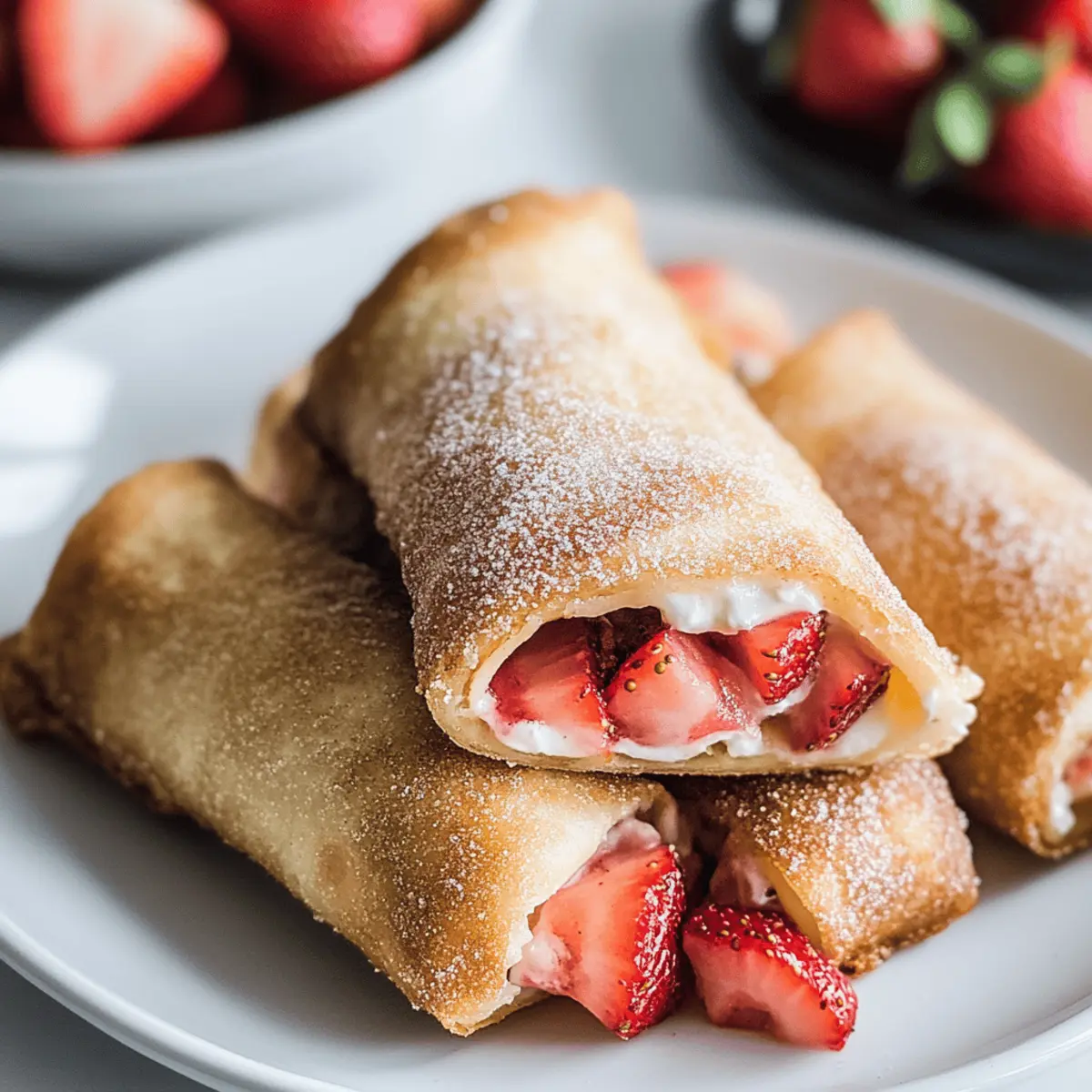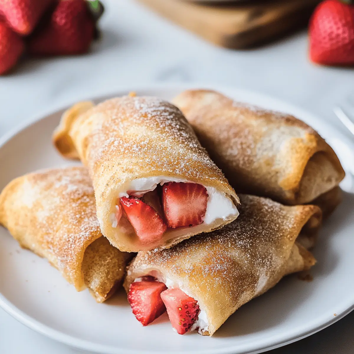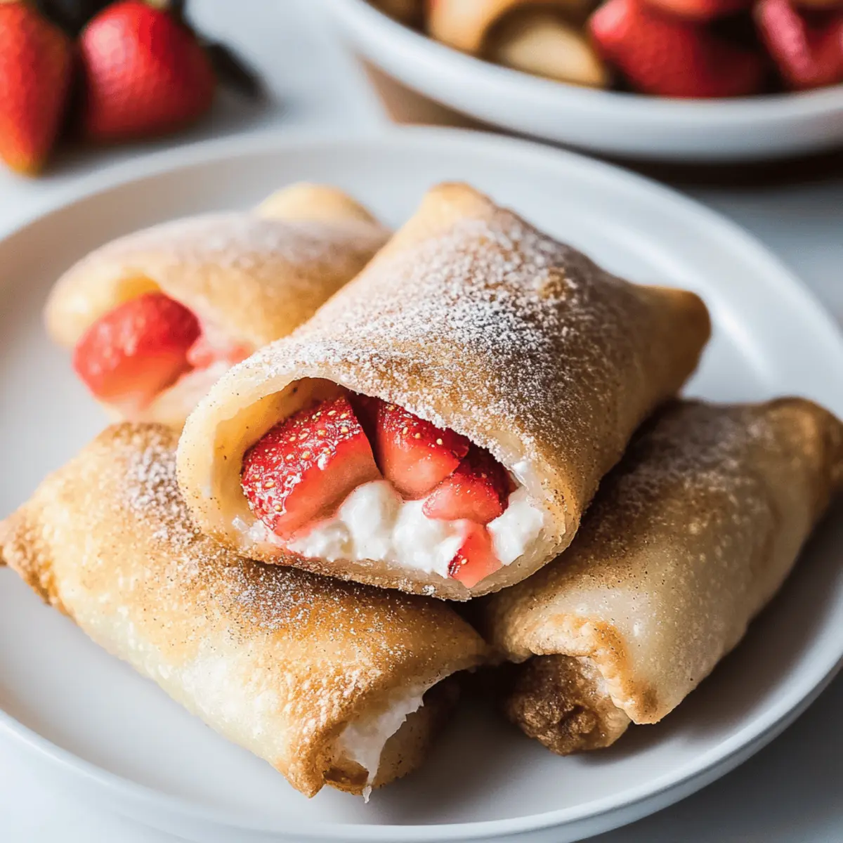 These Strawberry Cheesecake Chimichangas feature a crispy exterior and creamy filling, offering a delightful twist on dessert.
