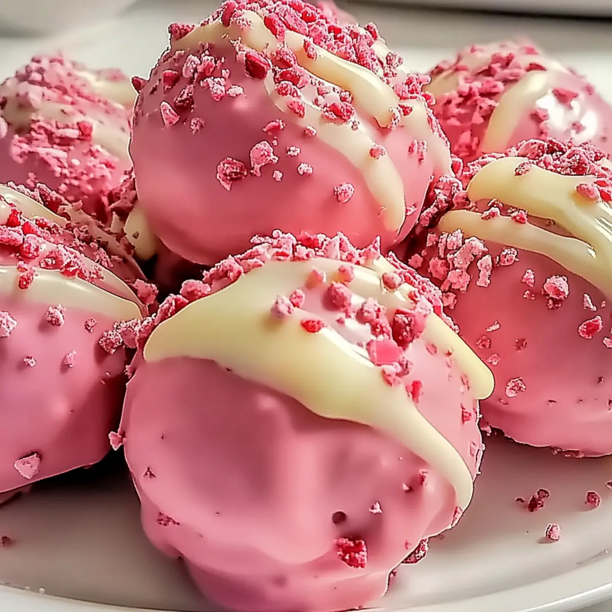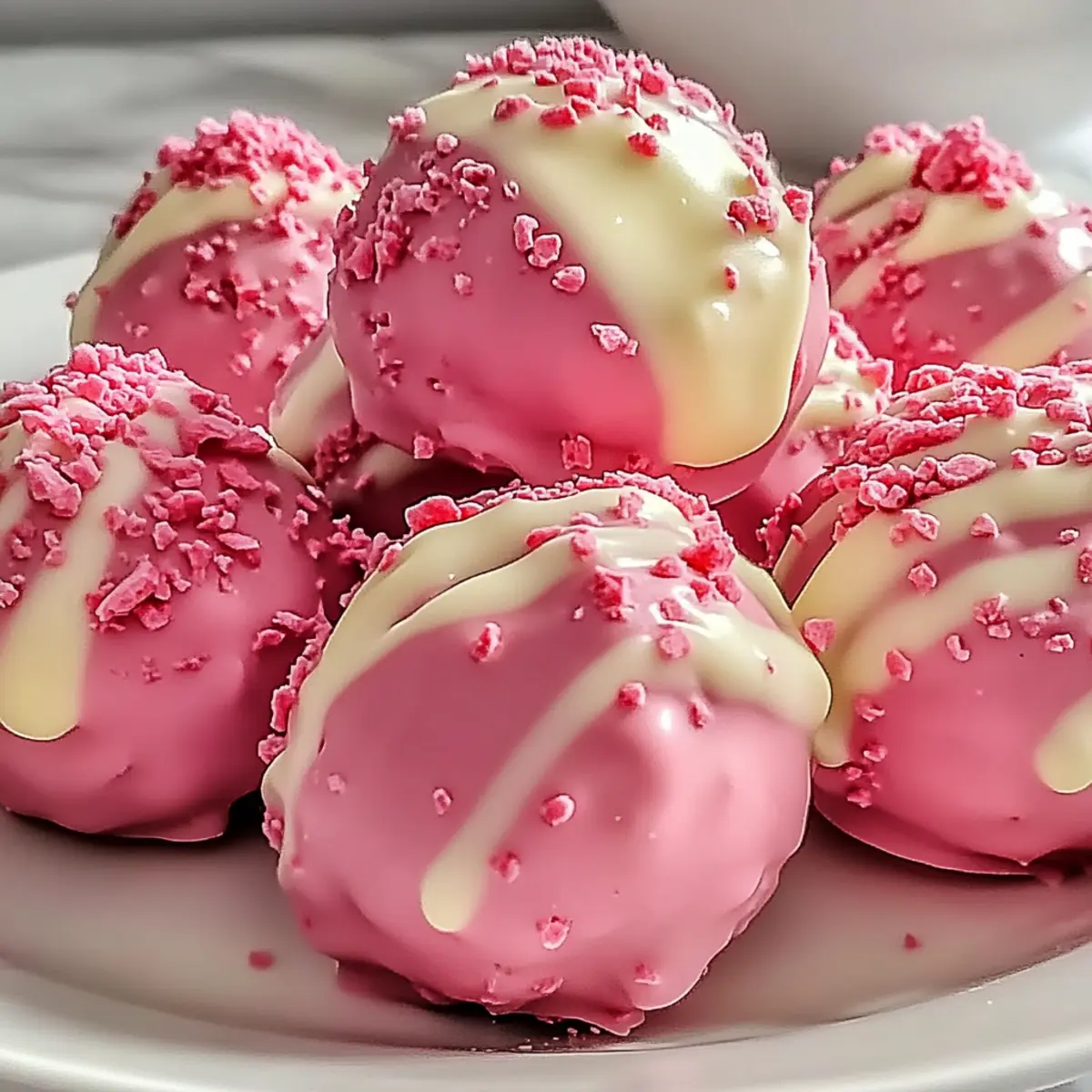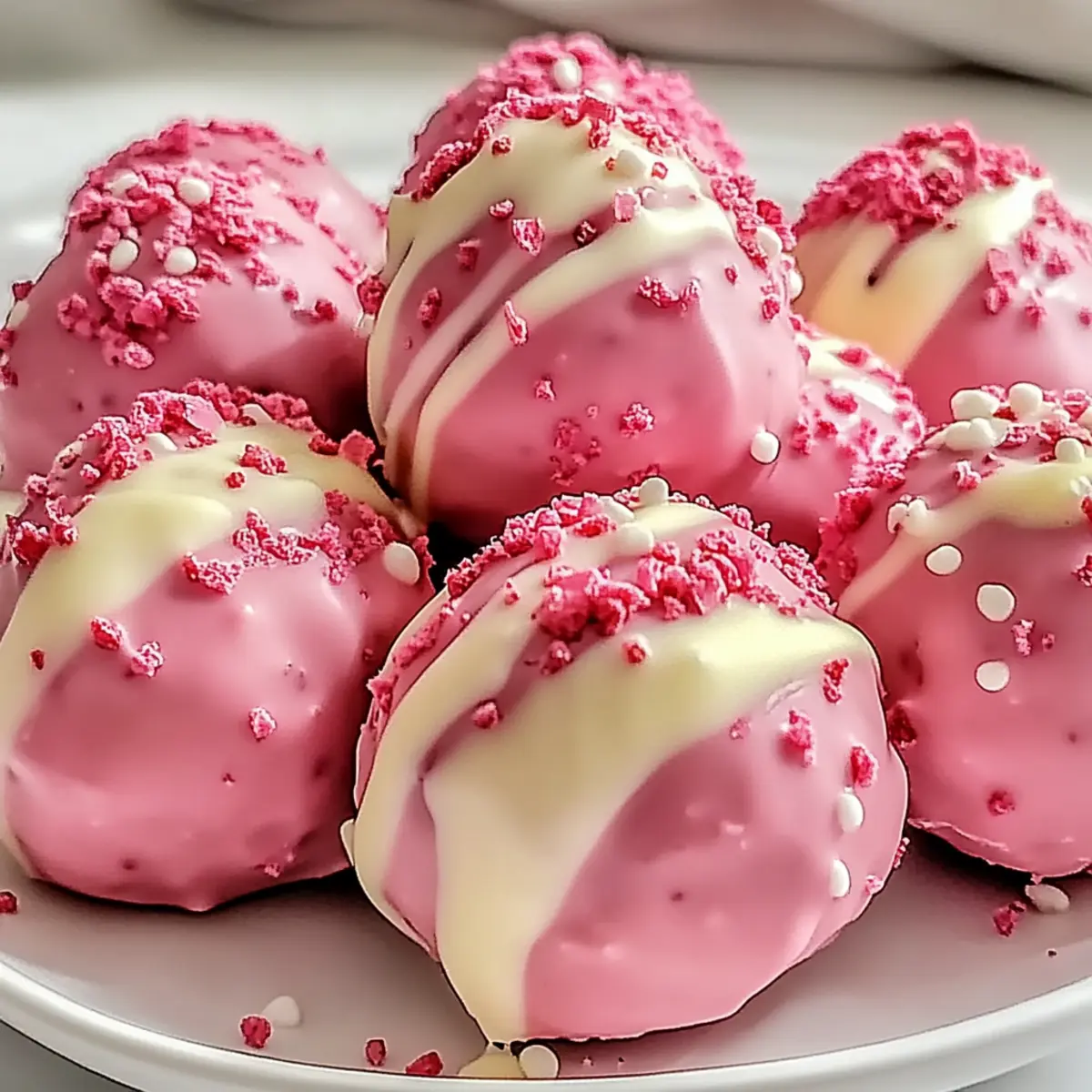 Jump to Recipe Print RecipeSummer sunshine might be fading, but that doesn’t mean we can’t capture its sweetness! These no-bake Strawberry Shortcake Truffles are a quick and fun way to indulge in the flavors we all love. Combining the light fluffiness of vanilla cake with luscious strawberry frosting, each bite is a delightful escape back to garden picnics and laughter-filled gatherings. Not only are these truffles incredibly easy to whip up, but the customizable nature means you can experiment with flavors like Chocolate Strawberry or Lemon Strawberry to suit any occasion. Perfect for impressing guests or enjoying at home, these treats are a delicious reminder that summer can last all year long. Are you ready to uncover your new favorite dessert? Why Are These Truffles So Irresistible? No-Bake Convenience: These Strawberry Shortcake Truffles come together without the need for an oven, saving you precious time during busy days. Endless Customization: Whether you crave a rich Chocolate Strawberry or a refreshing Lemon Strawberry, the variations allow you to personalize each batch. Crowd-Pleasing Treats: Perfect for gatherings, these truffles are sure to impress friends and family, making them a go-to for any celebration! Don’t forget to check out other delicious recipes like Moist Strawberry Shortcake for more strawberry-inspired delights! Quick Prep: From mixing to chilling, these truffles are ready in no time, making dessert a hassle-free experience. Texture Burst: Enjoy the creamy, chewy bite complemented by optional crunchy freeze-dried strawberries—a perfect contrast that elevates each mouthful! Strawberry Shortcake Truffles Ingredients For the Truffles • Vanilla Cake Mix – The foundation of your truffles, offering sweetness and structure; use store-bought for convenience! • Strawberry Frosting – Brings moisture and a burst of flavor; adjust the quantity to reach your desired consistency. • Crushed Freeze-Dried Strawberries – Optional for added texture and intense flavor without moisture; a little sprinkle goes a long way! For the Coating • Pink Candy Melts – Provides a vibrant coating; can be substituted with white chocolate for a classic look. • Coconut Oil – Helps achieve a smooth coating; ensures the candy melts spread evenly over the truffles. For Decorating • Sprinkles/Decorations – Brighten up those truffles; choose colorful options to make your Strawberry Shortcake Truffles stand out! Enjoy crafting these delightful bites that capture the essence of summer joy! Step‑by‑Step Instructions for Strawberry Shortcake Truffles Step 1: Preheat and Bake the Cake Start by preheating your oven to 350°F (175°C). Grease a 9×13 inch pan to prevent sticking, then prepare your vanilla cake mix according to the package instructions. Pour the batter into the prepared pan and bake for 25-30 minutes, or until a toothpick inserted in the center comes out clean. Allow the cake to cool completely on a wire rack. Step 2: Crumble the Cake Once the cake is completely cooled, break it into fine crumbs in a large mixing bowl. Use your fingers or a fork to ensure that the cake is crumbled into a consistency similar to fine sand. This step is crucial for the smooth texture of your Strawberry Shortcake Truffles, so take your time to achieve even crumbs. Step 3: Mix in the Frosting Add your strawberry frosting to the cake crumbs, blending thoroughly until the mixture resembles moldable dough. You want the consistency to be similar to play-dough, holding its shape when rolled. Take a moment to enjoy the luscious aroma as you mix; this is the foundation of your delicious Strawberry Shortcake Truffles. Step 4: Incorporate Optional Strawberries For an extra burst of flavor and texture, gently fold in crushed freeze-dried strawberries at this stage. This step is optional but highly recommended for those who desire a more intense strawberry flavor in their truffles. Be sure to mix well but gently, preserving some of the lovely pink hues from the strawberries. Step 5: Shape the Truffles Using your hands, roll the mixture into uniform balls, about 1-2 tablespoons each, and place them on a parchment-lined baking sheet. Aim for consistent sizing to ensure even coating later. As you roll, notice how the mixture holds its shape; this is a sign that your Strawberry Shortcake Truffles are coming together perfectly. Step 6: Chill the Truffles Refrigerate the formed truffles for at least 30 minutes, or pop them in the freezer for about 15 minutes to firm up. Chilling helps the truffles hold their shape during the coating process. While they chill, you can prepare your candy coating to make the next steps easier. Step 7: Melt the Candy Coating In a microwave-safe bowl, combine the pink candy melts with a tablespoon of coconut oil. Microwave in 30-second intervals, stirring in between, until the mixture is completely smooth and free of lumps. The coconut oil helps achieve the perfect consistency for coating your Strawberry Shortcake Truffles, giving them a beautiful finish. Step 8: Coat the Truffles With a fork or dipping tool, dip each chilled truffle into the melted candy coating, allowing excess to drip off before placing them back on the parchment-lined sheet. Ensure each truffle is fully coated for that luscious look and flavor. This part should be quick to keep your truffles chilled and maintain their shape. Step 9: Decorate the Truffles Before the candy coating sets, sprinkle your selected decorations or sprinkles over the top of each truffle. This step not only adds a burst of color but also personalizes your Strawberry Shortcake Truffles for any occasion. Get creative and have fun with it—everyone will love the extra flair! Step 10: Drizzle with White Chocolate After the pink coating has set slightly, melt some white chocolate in another bowl and drizzle it over the truffles for added elegance. This step enhances the visual appeal and adds a sweet contrast to the strawberry f