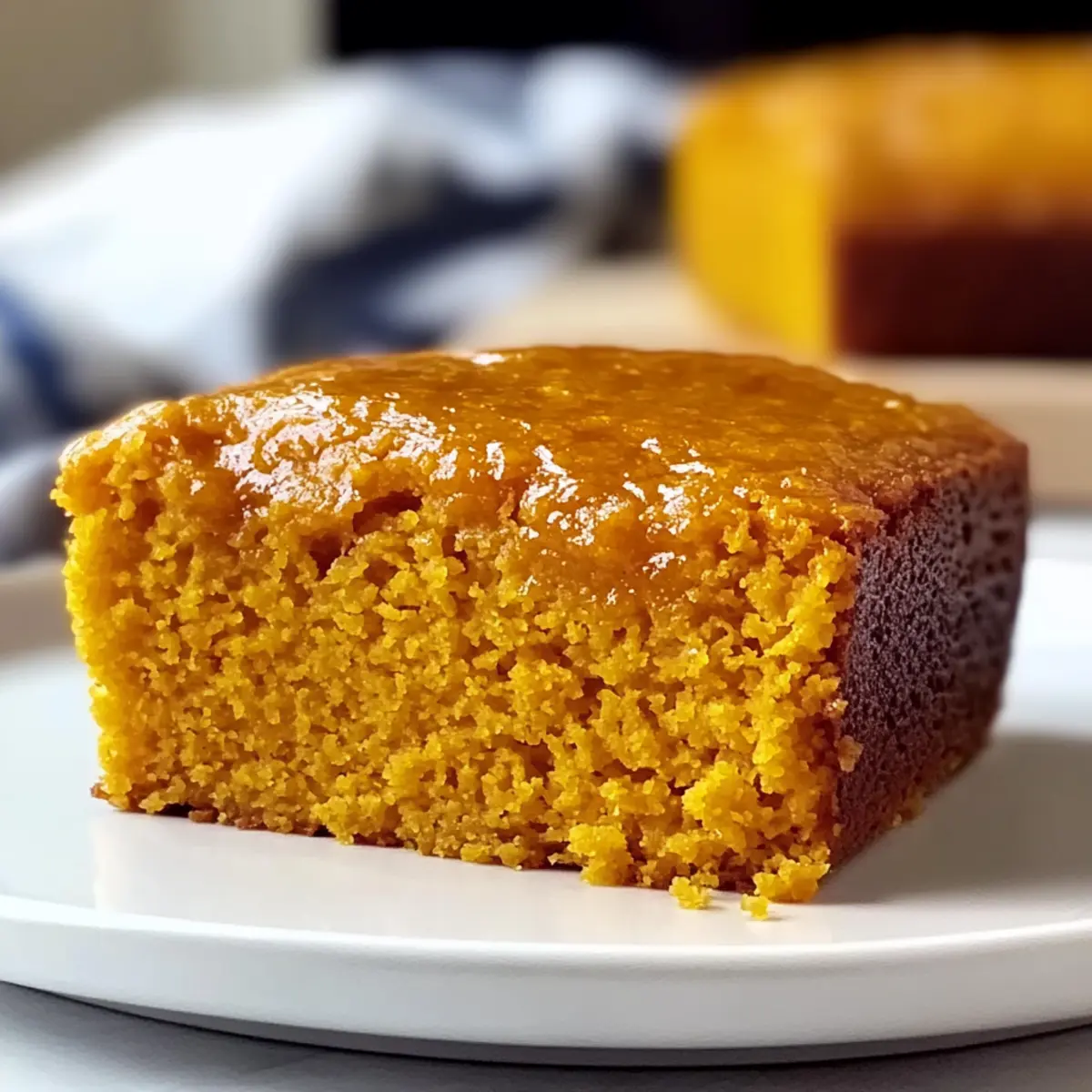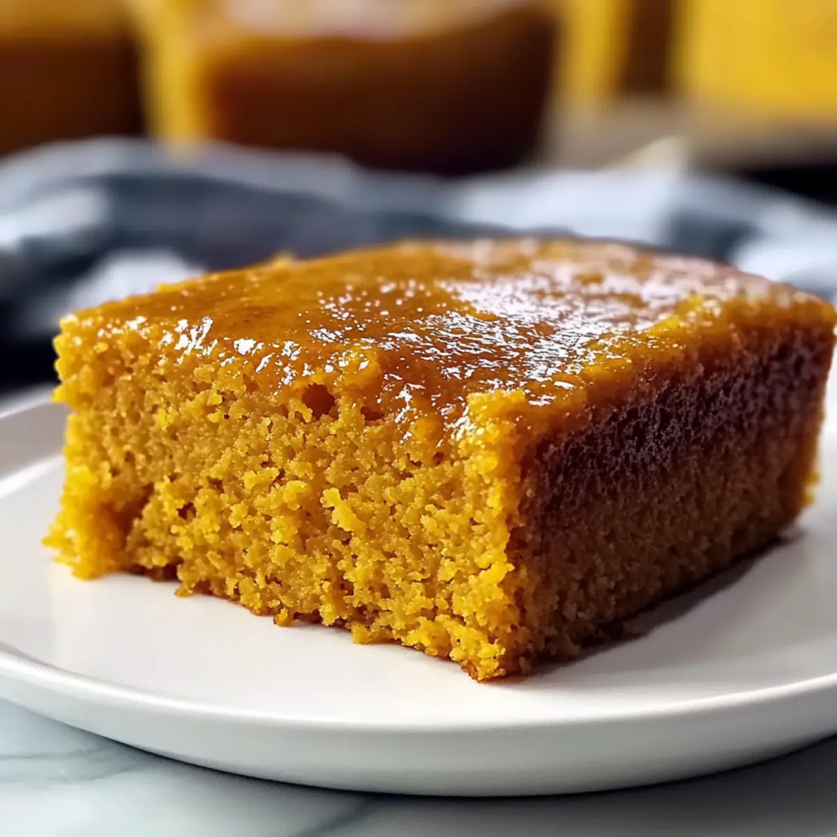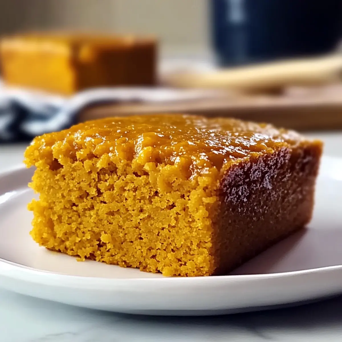 Jump to Recipe Print RecipeAs the leaves turn golden and the air grows crisp, one aroma takes me back to cozy gatherings in the kitchen: the sweet scent of baking Sweet Potato Cornbread. This delightful twist on a classic not only brings a moist texture and natural sweetness that’s hard to resist but also offers a comforting hug on chilly days. It’s the perfect companion for hearty meals, and believe me, even the pickiest of eaters will find themselves going back for seconds. Best of all, this recipe is quick to whip up, making it ideal for both seasoned chefs and busy home cooks alike. So, are you ready to create something truly heartwarming and delicious? Let’s dive into this autumn-inspired treat! Why is Sweet Potato Cornbread a Must-Try? Comforting: This sweet potato cornbread wraps you in warmth with every bite, making it the perfect dish for family gatherings or chilly evenings. Unique Flavors: The delightful mix of sweet potatoes and aromatic spices creates a mouthwatering experience that stands out from traditional cornbread. Easy to Make: With simple steps and everyday ingredients, you’ll have a delicious treat ready in no time, even on your busiest days. Versatile Pairings: Serve it alongside savory dishes like chili or barbecue, or enjoy it as a comforting breakfast with butter and honey. Storage Friendly: Enjoy leftovers for days, or freeze portions for a quick side anytime. This recipe also lends itself beautifully to variations—try adding cheese or herbs for something different! Sweet Potato Cornbread Ingredients For the Batter • Cornmeal – Adds structure and traditional cornbread flavor. • All-Purpose Flour – Provides additional structure; can be substituted with a gluten-free flour blend. • Baking Powder & Baking Soda – Essential leavening agents that help the cornbread rise beautifully. • Salt – Enhances the overall flavor of the cornbread. • Spices (Cinnamon, Clove, Nutmeg) – Infuses warmth and complexity; adjust these according to personal preference for a punch of flavor. • Granulated Sugar & Brown Sugar – Sweetness and moisture combined; reduce amounts for a lighter taste. • Pureed Sweet Potatoes – The star ingredient that brings moisture and natural sweetness; opt for orange-fleshed varieties like Beauregard. • Eggs – Essential for binding the ingredients together and boosting rise. • Egg Yolk – Adds richness and a decadent touch to the cornbread. • Melted Butter – Imparts flavor and moisture; can substitute with oil if desired. • Oil (e.g., vegetable or canola) – Enhances the cornbread’s moisture. • Vanilla Extract – Adds depth and a hint of sweetness to the flavors. • Buttermilk – Contributes moisture and a touch of tang; can replace with milk or a dairy-free substitute. • Optional Orange Food Coloring – Adds visual appeal; use sparingly if desired for a pop of color. Enjoy crafting your Sweet Potato Cornbread with these wholesome ingredients! Step‑by‑Step Instructions for Sweet Potato Cornbread Step 1: Preheat the Oven Begin by preheating your oven to 400°F (200°C) to create the perfect environment for baking your Sweet Potato Cornbread. While the oven heats, prepare an 8-inch glass baking dish by greasing it generously with butter to ensure your cornbread releases easily once baked. Step 2: Mix Dry Ingredients In a large mixing bowl, combine the cornmeal, all-purpose flour, baking powder, baking soda, salt, and your chosen spices like cinnamon and nutmeg. Use a whisk to mix these dry ingredients thoroughly, ensuring an even distribution of flavors. This step is crucial for the perfect rise and texture of your Sweet Potato Cornbread. Step 3: Blend Wet Ingredients In another bowl, blend the pureed sweet potatoes, eggs, egg yolk, melted butter, oil, vanilla extract, and buttermilk. Mix these ingredients until smooth, creating a harmonious fusion of flavors. This wet mixture is the heart of your Sweet Potato Cornbread, contributing moisture and richness. Step 4: Add Color (Optional) If you’d like a vibrant touch, stir in a few drops of orange food coloring into your wet mixture, blending well. This step is purely for visual appeal; your cornbread will be deliciously sweet without it. Step 5: Combine Wet and Dry Ingredients Gradually pour the dry ingredient mixture into the wet ingredients, using a spatula to fold and combine them gently. Be careful not to overmix; just stir until you see no streaks of flour. This will ensure your Sweet Potato Cornbread remains light and fluffy. Step 6: Pour and Bake Once combined, pour the batter into your prepared baking dish, spreading it evenly with the spatula. Bake in the preheated oven for 20 minutes, allowing the cornbread to rise and develop a lovely golden color. Keep an eye on it—your kitchen will soon be filled with a wonderful aroma! Step 7: Tent and Continue Baking After 20 minutes, carefully tent the cornbread with foil to prevent it from over-browning. Return it to the oven for an additional 20 minutes or until a toothpick inserted into the center comes out clean. This ensures that your Sweet Potato Cornbread is perfectly baked through and moist. Step 8: Glaze the Cornbread As the cornbread finishes baking, prepare your glaze by melting brown sugar with butter in a small saucepan until combined. Once the cornbread is out of the oven, brush this warm glaze over the top for a sweet finishing touch that enhances its flavor and gives it a beautiful sheen. How to Store and Freeze Sweet Potato Cornbread Room Temperature: Keep the cornbread in an airtight container at room temperature for up to 2 days. Enjoy its warm, comforting taste during this time! Fridge: For extended freshness, store in the refrigerator for up to 1 week. Reheat individual slices in the microwave for a few seconds to bring back that lovely moisture. Freezer: Freeze portions wrapped tightly in plastic wrap and aluminum foil for up to 3 months. Thaw overnight in the fridge befor