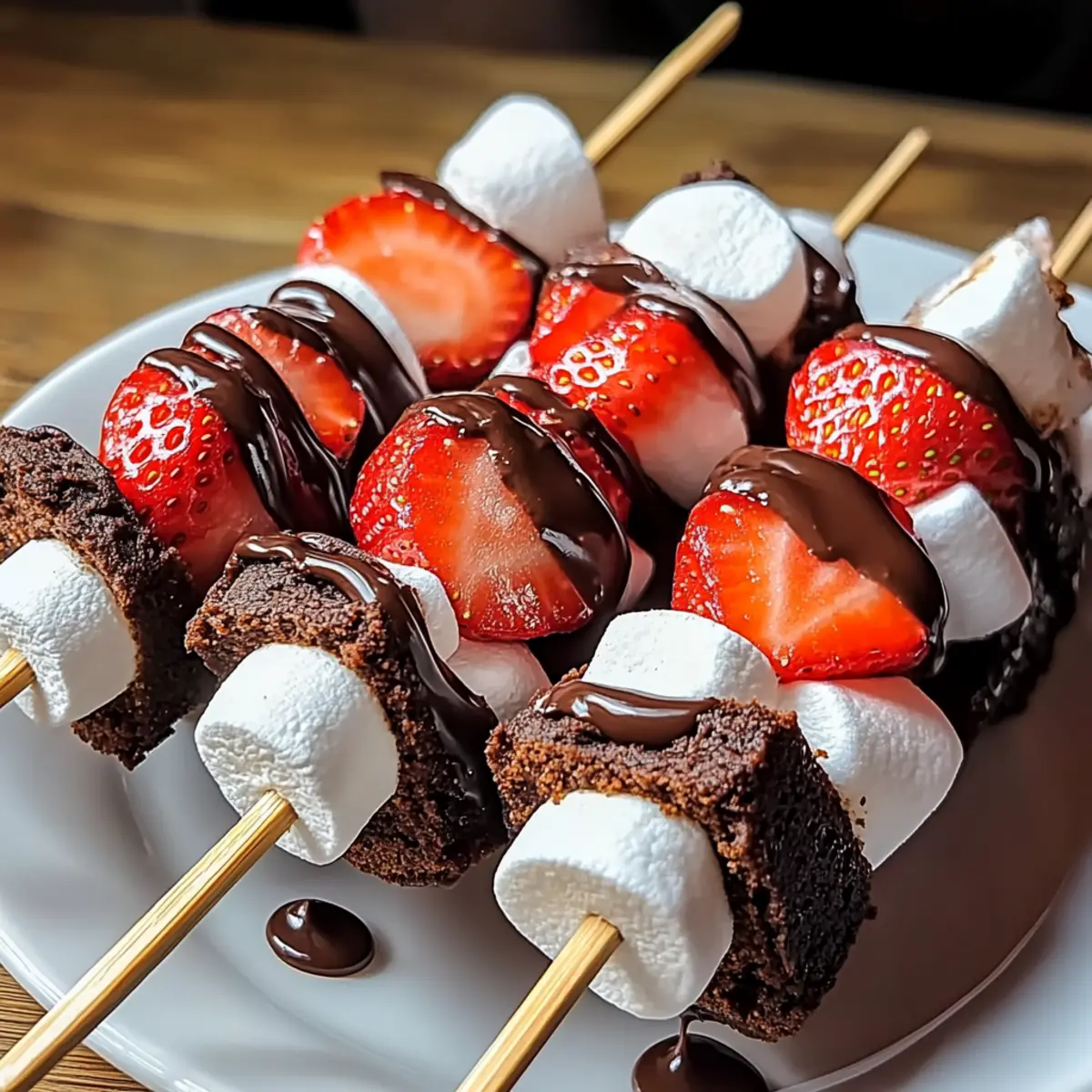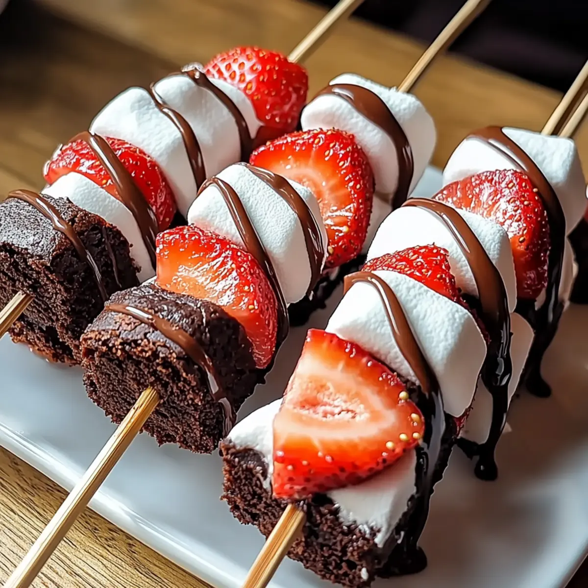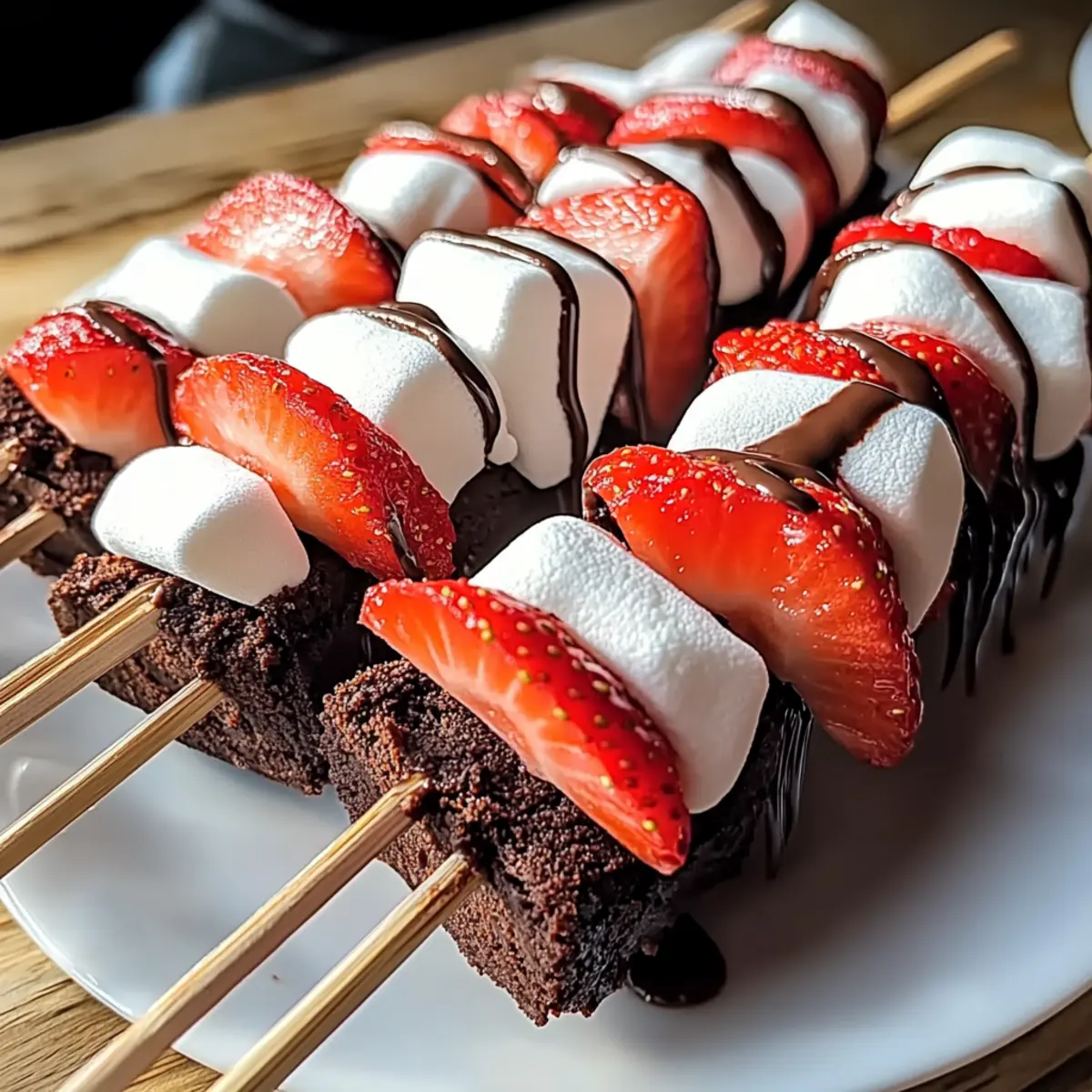Jump to Recipe Print RecipeAs I stood outside, the sun warming my face and the laughter of friends filling the air, a sweet idea hit me: why not combine the joy of summer fruits with the indulgence of brownies? That’s how these Sweet Strawberry Brownie Kabobs were born! They’re the perfect dessert for gatherings, effortlessly customizable to suit each guest’s palate. With just a few ingredients, you can whip up these delightful treats that feature chewy brownie squares, juicy strawberries, and fluffy marshmallows—all skewered for a fun, portable dessert experience. Not only are they a quick and easy treat, but they also offer the flexibility to swap out ingredients for a healthier twist or even make them vegan-friendly. So, are you ready to elevate your dessert game and impress your friends with this delicious kabob creation? Let’s dive in! Why are Strawberry Brownie Kabobs irresistible? Simplicity at Its Best: Just a handful of ingredients come together in this quick and fun recipe, making it perfect for busy cooks who want a delightful treat. Bursting with Flavor: The chewy brownies, juicy strawberries, and fluffy marshmallows create a harmonious blend that is sure to excite your taste buds. Customizable Treat: Adapt the kabobs to suit your guests’ preferences by swapping fruits or drizzling your choice of chocolate, whether it’s dark chocolate for a healthier option or even a vegan chocolate! Crowd-Pleasing Delight: Perfect for parties, summer BBQs, or simply a cozy night in, these kabobs will be the highlight of your dessert table. Portable Indulgence: Skewered for easy serving, they’re not just tasty but also perfect for outdoor gatherings or picnics. You can even present them charmingly in mason jars! Explore more dessert ideas like our Moist Strawberry Shortcake or indulge in a unique twist with Red Velvet Strawberry Cheesecake for your next sweet adventure! Sweet Strawberry Brownie Kabobs Ingredients For the Brownies Brownie Mix – Provides the rich, chewy base; consider using a homemade recipe for a personal touch. For the Kabobs Fresh Strawberries – The star ingredient that adds a juicy sweetness; ensure they are hulled and rinsed thoroughly before use. Marshmallows – Add a fluffy texture; you can swap these for banana slices for a unique and fruity twist. For the Drizzle Semi-Sweet Chocolate Chips – Perfect for drizzling over kabobs, adding richness; opt for dark chocolate for a healthier Sweet Strawberry Brownie Kabobs experience. Essential Tools Wooden Skewers – Necessary for assembling and serving kabobs, making them easy to handle and enjoy. Step‑by‑Step Instructions for Sweet Strawberry Brownie Kabobs Step 1: Prepare the Brownies Preheat your oven to 350°F (175°C). In a mixing bowl, combine the brownie mix with the required ingredients per package instructions. Mix until smooth and pour the batter into a greased baking dish. Bake for 20-25 minutes, or until a toothpick inserted in the center comes out clean. Let the brownies cool completely, then cut them into 1-inch squares, ready for kabob assembly. Step 2: Prep the Strawberries While the brownies cool, rinse and hull the fresh strawberries to remove the stem and any debris. Ensure they are completely dry to prevent moisture from affecting the kabob structure. This simple step is vital as you want those juicy strawberries to pop with flavor in your Sweet Strawberry Brownie Kabobs. Step 3: Assemble the Skewers Take your wooden skewers and begin threading your kabobs. Start with a chewy brownie square, followed by a fresh strawberry, and then a fluffy marshmallow. Continue this pattern, alternating until the skewers are filled, leaving a bit of space at the bottom for easy handling. This colorful assembly of brownies, strawberries, and marshmallows will make your heart sing! Step 4: Melt the Chocolate In a microwave-safe bowl, add the semi-sweet chocolate chips. Microwave for 30 seconds and stir. Continue microwaving in 15-second intervals, stirring after each until the chocolate is smooth and fully melted—typically taking about 1-2 minutes in total. This decadent drizzle will take your Sweet Strawberry Brownie Kabobs to the next level. Step 5: Drizzle or Dip Once the chocolate is melted, take each assembled kabob and either dip it into the chocolate or use a spoon to drizzle the melted chocolate over the skewers. Each kabob should be generously coated for maximum flavor. Place the kabobs on a parchment-lined tray to catch any excess chocolate and aid with cleanup. Step 6: Set & Serve Refrigerate the assembled Sweet Strawberry Brownie Kabobs for 10-15 minutes, allowing the chocolate to set perfectly. Once firm, transfer the kabobs to a serving platter or charming mason jars for an appealing presentation. These delightful treats are now ready to be enjoyed, bringing smiles to your gathering! Make Ahead Options These Sweet Strawberry Brownie Kabobs are perfect for meal prep, allowing you to save time during busy gatherings! You can prepare the brownies and rinse the strawberries up to 24 hours in advance; simply store them separately in airtight containers in the refrigerator to maintain freshness. Additionally, the chocolate can be melted and stored in the fridge for up to 3 days. When you’re ready to serve, assemble the kabobs by threading the brownie squares, strawberries, and marshmallows onto skewers, then drizzle with the melted chocolate. This way, you ensure that your kabobs remain just as delicious and fresh, impressing your friends with minimal fuss! Storage Tips for Sweet Strawberry Brownie Kabobs Fridge: Store leftover kabobs in an airtight container for up to 2 days to maintain freshness. Keep them tightly sealed to prevent moisture loss. Freezer: For longer preservation, freeze the kabobs without the chocolate drizzle. They can be safely stored for up to 3 months, ensuring a delightful treat is always on hand. Reheating: If desired, let frozen kabobs thaw in the fridge overni