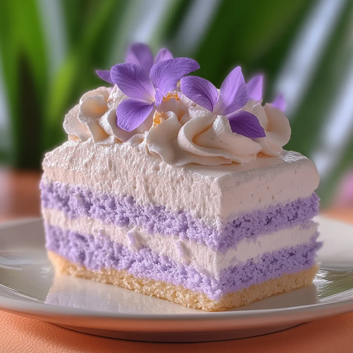 Experience the fluffy Taro Ube Cloud Cake, a delightful dessert dream celebrating Filipino flavors.
