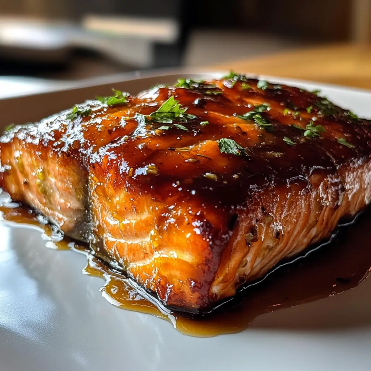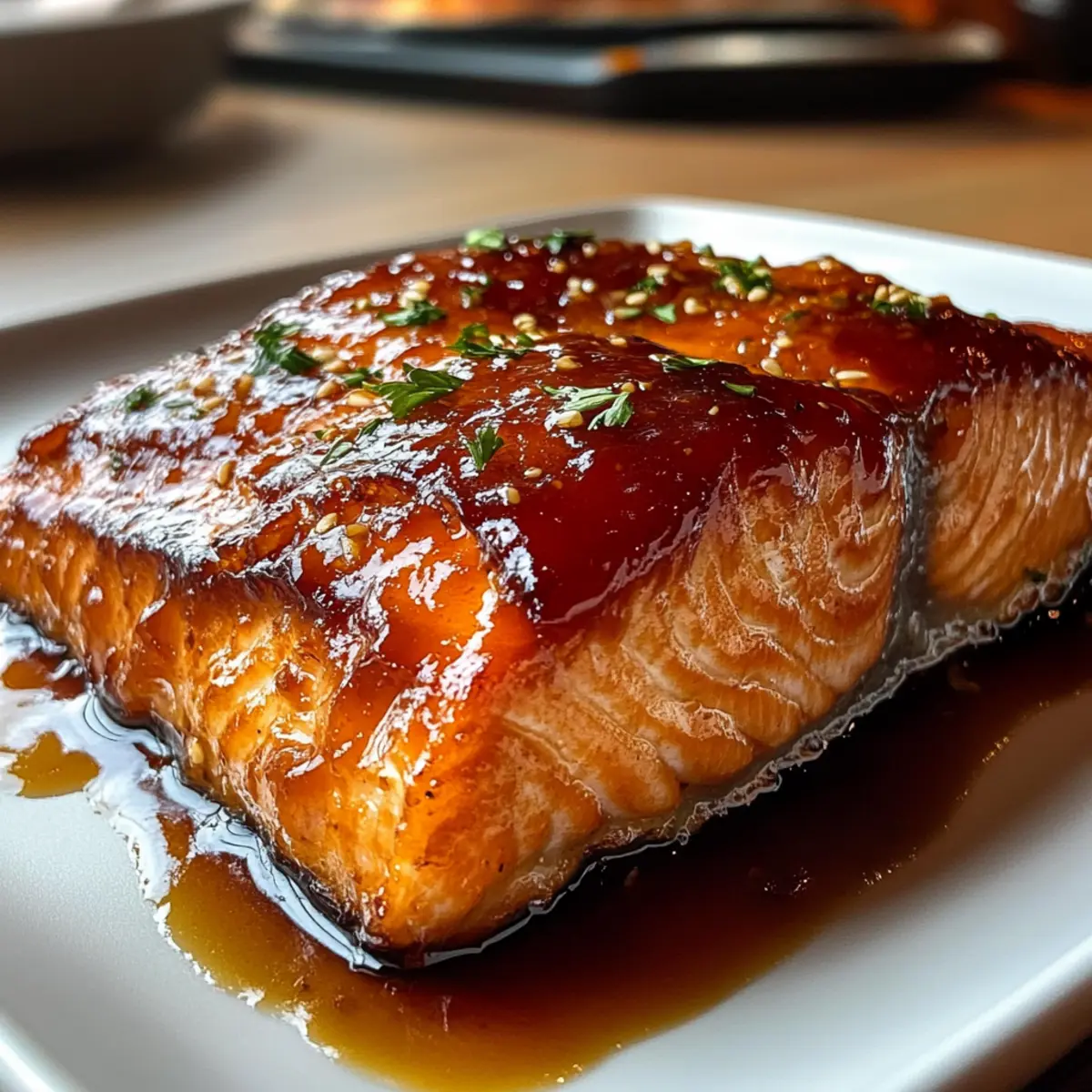 Jump to Recipe Print RecipeThere’s something magical about a home kitchen filled with the sizzle of fish meeting heat. Today, I’m excited to share my take on the Easy Texas Roadhouse Salmon with Sweet Soy Glaze—a dish that brings restaurant flair right to your dining table. This delightful salmon recipe not only captures a sticky-sweet flavor from caramelized brown sugar and garlic, but it’s also ready in just 30 minutes, making it the perfect quick meal for busy weeknights. Imagine impressing family and friends with a dinner that’s gluten-free, packed with protein, and so simple you’ll want to cook it again and again. Interested in elevating your dinner game? Let’s dive into this flavorful experience together! Why is this salmon recipe a must-try? Quick Cooking: Ready in just 30 minutes, this Texas Roadhouse Salmon is perfect for busy evenings when you want to whip up something impressive. Mouthwatering Glaze: The sweet soy glaze infused with brown sugar and garlic brings a burst of flavor that will have your taste buds dancing. Nutrient-Rich: Packed with protein and healthy fats, this dish is not only delicious but also nourishing—making it a great addition to your weekly meal rotation. Versatile Options: Have some extra glaze? Use it on other proteins like Honey Garlic Chicken or Salmon Shrimp Garlic for variety! Crowd-Pleaser: Impress friends and family alike with a dish that showcases restaurant-quality flair right from your kitchen. Don’t miss out on this delightful recipe that redefines quick meals! Texas Roadhouse Salmon Ingredients • Get ready for a flavor-packed experience! For the Salmon Salmon Fillets – Choose fillets of similar thickness for even cooking to ensure that your Texas Roadhouse Salmon is perfectly flaky. For the Sweet Soy Glaze Brown Sugar – Light brown is preferred for a balanced sweetness; dark brown adds a deeper flavor. Soy Sauce – For depth and saltiness; opt for low-sodium if you’re watching your salt intake. Butter – Melted butter ensures a smooth and rich glaze that clings beautifully to the salmon. Honey – Enhances the glaze’s sweetness; maple syrup makes a delightful substitute if needed. Garlic Powder – Adjust based on your taste preference for a savory kick. Black Pepper – Adds subtle heat; feel free to increase or reduce based on your spice level. Paprika – Adds a lovely color; can be omitted if unavailable. For Garnish Fresh Parsley – Provides a fresh touch for garnishing; dried parsley works in a pinch if fresh isn’t available. Now you have everything you need for this mouthwatering Texas Roadhouse Salmon. Get your ingredients, and let’s make something delicious! Step‑by‑Step Instructions for Texas Roadhouse Salmon Step 1: Preheat the Oven Begin by preheating your oven to 400°F (200°C), ensuring a hot environment for optimal baking. While the oven warms up, line a baking sheet with parchment paper. This will prevent the salmon from sticking and make cleanup a breeze, paving the way for your Texas Roadhouse Salmon to shine. Step 2: Prepare the Salmon Pat the salmon fillets dry gently with paper towels to remove excess moisture. This step is crucial, as it helps the sweet soy glaze adhere better to the fish. Arrange the fillets on the prepared baking sheet, skin side down, and get ready to elevate their flavor with a delectable glaze. Step 3: Make the Glaze In a small mixing bowl, whisk together the brown sugar, soy sauce, melted butter, honey, garlic powder, black pepper, and paprika until well combined. The mixture should be smooth with a sticky consistency. This sweet soy glaze is the star of the Texas Roadhouse Salmon and gives it that irresistible flavor profile. Step 4: Glaze the Salmon Using a brush, evenly apply half of the sweet soy glaze over the prepared salmon fillets. Ensure they are generously coated for a flavorful crust while baking. This will enhance the overall taste and texture, making your Texas Roadhouse Salmon truly mouthwatering. Step 5: Bake the Salmon Place the salmon in the preheated oven and bake for 8 minutes. Keep an eye on the fillets; they should start to glisten and become slightly opaque as they cook. The goal is to achieve a tender, opaque center while still maintaining the fish’s flakiness. Step 6: Add More Glaze After the initial baking time, remove the salmon from the oven. Brush the remaining glaze over the fillets for an extra layer of flavor and sweetness. This step ensures a beautiful caramelized finish on your Texas Roadhouse Salmon, perfectly balancing sweet and savory notes. Step 7: Finish Baking Return the salmon to the oven and continue to bake for an additional 8-10 minutes, or until the salmon flakes easily with a fork and reaches an internal temperature of 145°F (63°C). Watch for a slight browning on top; that’s the sign of a deliciously cooked salmon fillet. Step 8: Let it Rest Once done, remove the Texas Roadhouse Salmon from the oven and let it rest for a couple of minutes. This allows the juices to redistribute, ensuring each bite is moist and flavorful. While it rests, you can prepare your garnishing and sides. Step 9: Garnish and Serve Finally, garnish the baked salmon with fresh parsley for a pop of color and a touch of freshness. Serve your delicious Texas Roadhouse Salmon on a bed of fluffy rice or with your favorite vegetables for a complete meal. Enjoy the burst of flavors and impress your loved ones with this easy, restaurant-quality dish! Expert Tips for Texas Roadhouse Salmon Choose the Right Fish: Opt for fresh salmon fillets of uniform thickness to ensure even cooking throughout. This will make your Texas Roadhouse Salmon perfectly flaky. Glaze Application: Apply the glaze generously, but don’t overdo it. A modest layer will caramelize nicely without becoming overly sticky or burnt. Watch Cooking Time: Keep an eye on the salmon in the oven. Smaller fillets may cook faster, so monitor closely to avoid overcooking and ensure tend