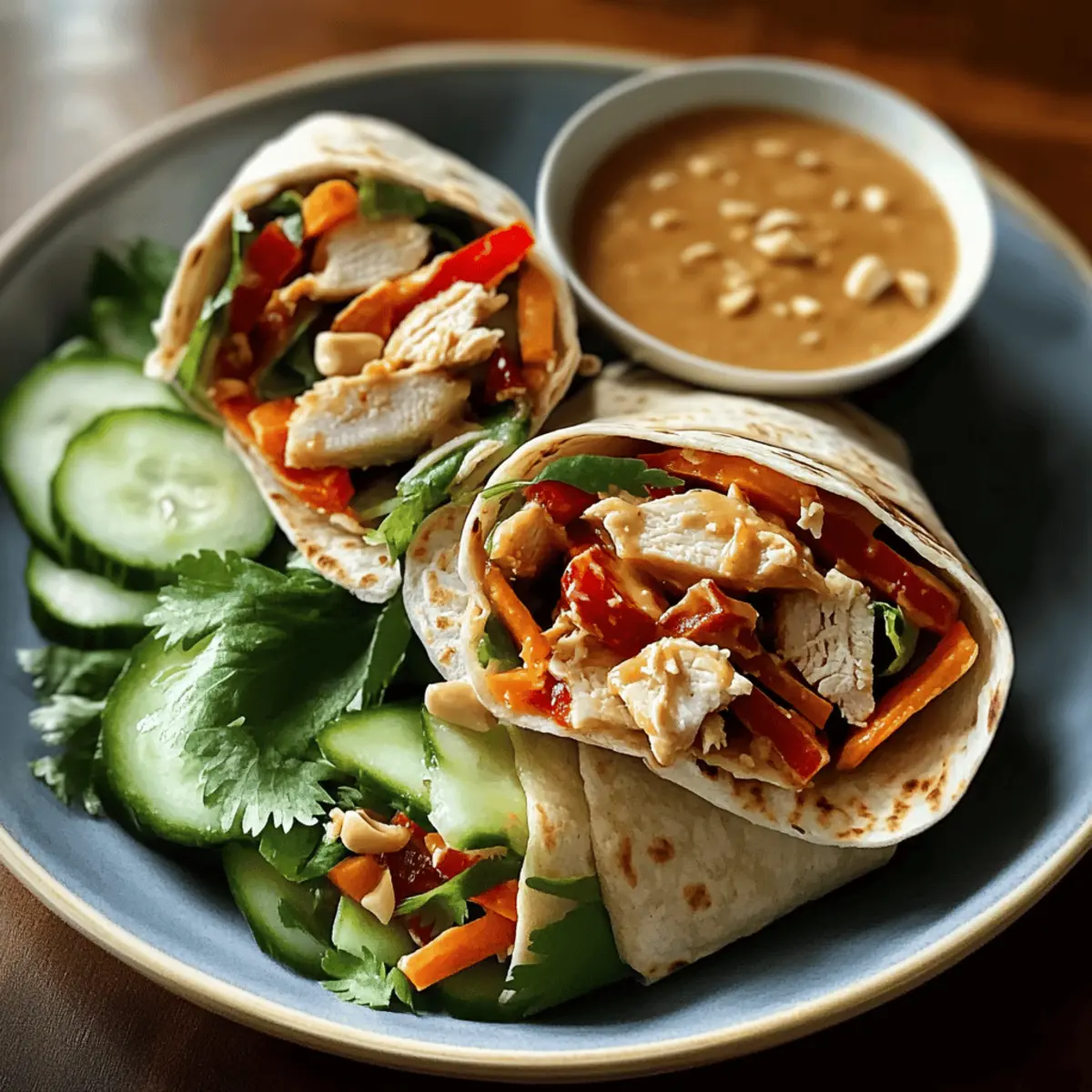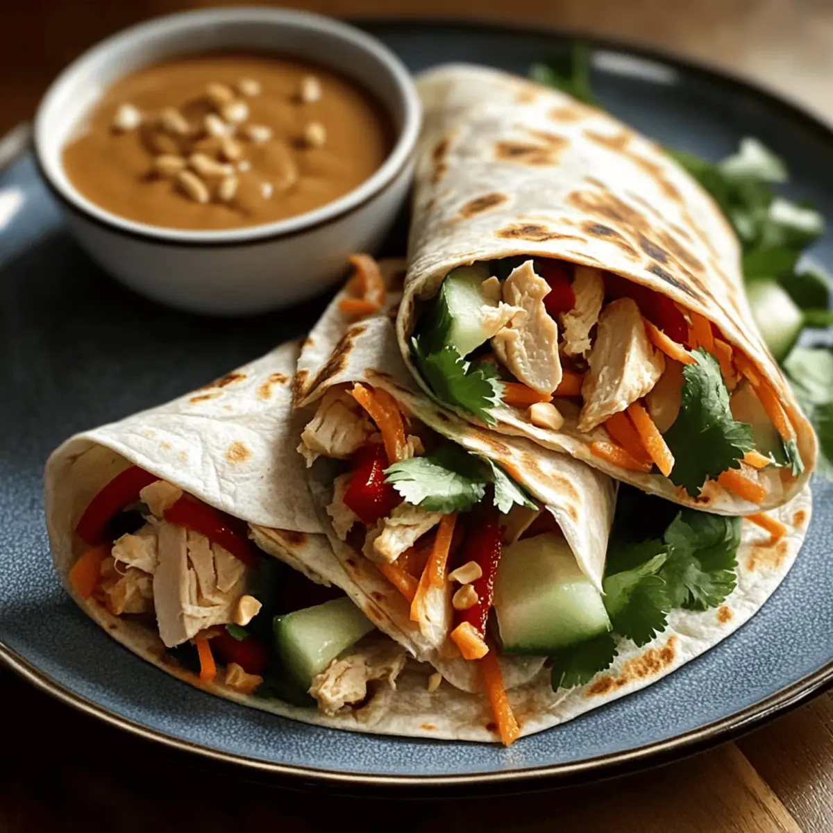 • Veggie Options: Experiment with a variety of fresh vegetables! Instead of just carrots and cucumber, consider adding bell peppers or sprouts for an even crunchier experience in your Thai Peanut Chicken Wraps.