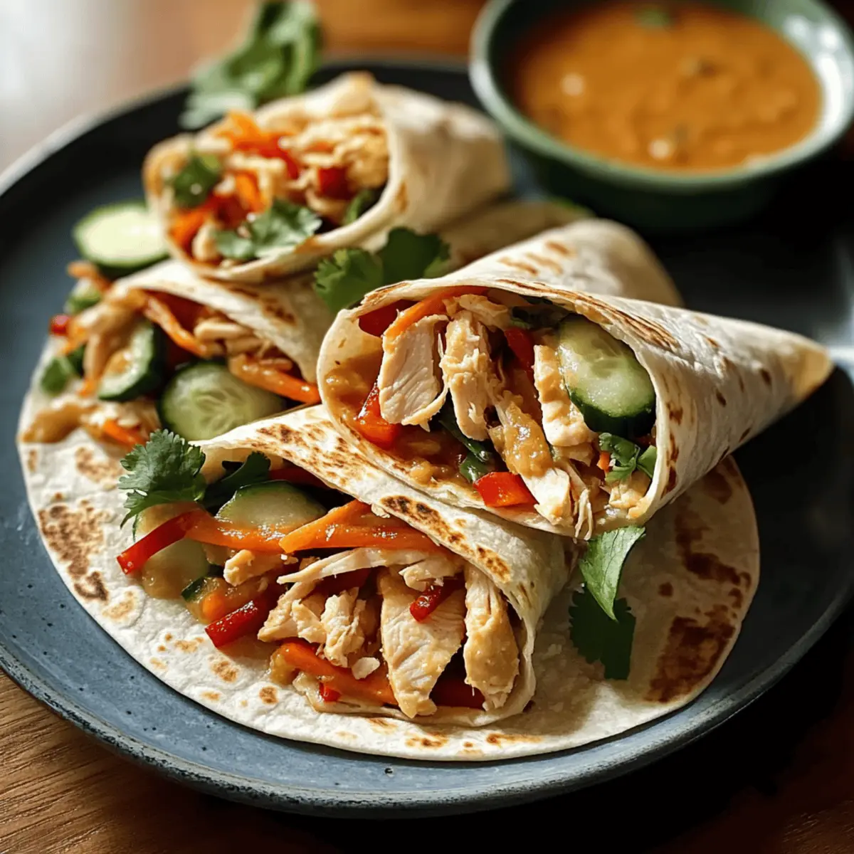 Make-Ahead Tip: For meal prep, keep the sauce and fillings separate until ready to eat. This prevents the tortillas from becoming soggy, ensuring your Thai Peanut Chicken Wraps stay delicious!