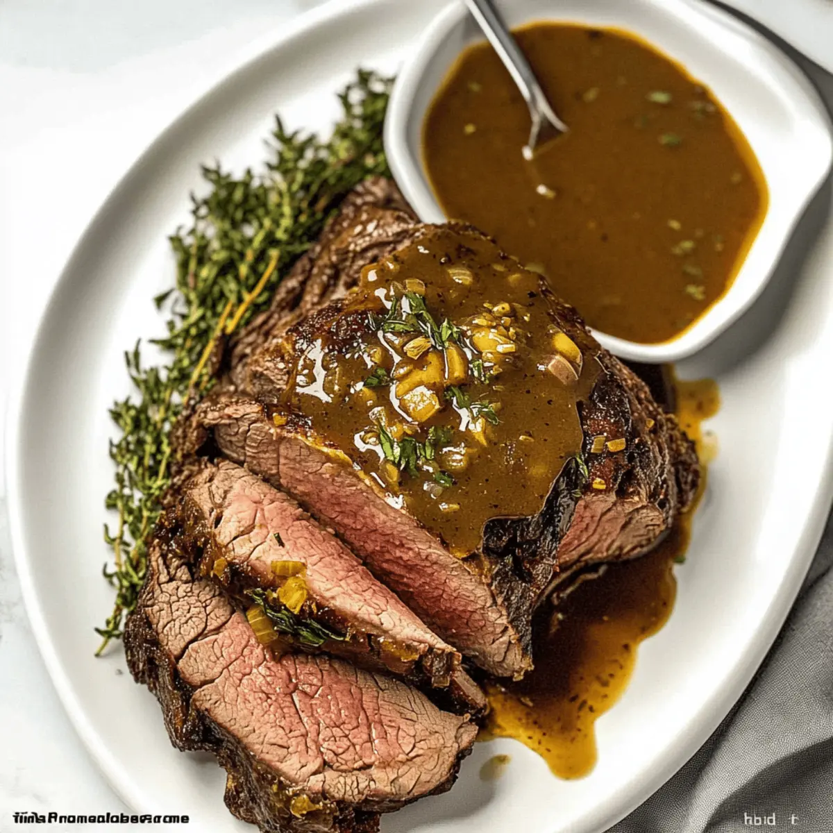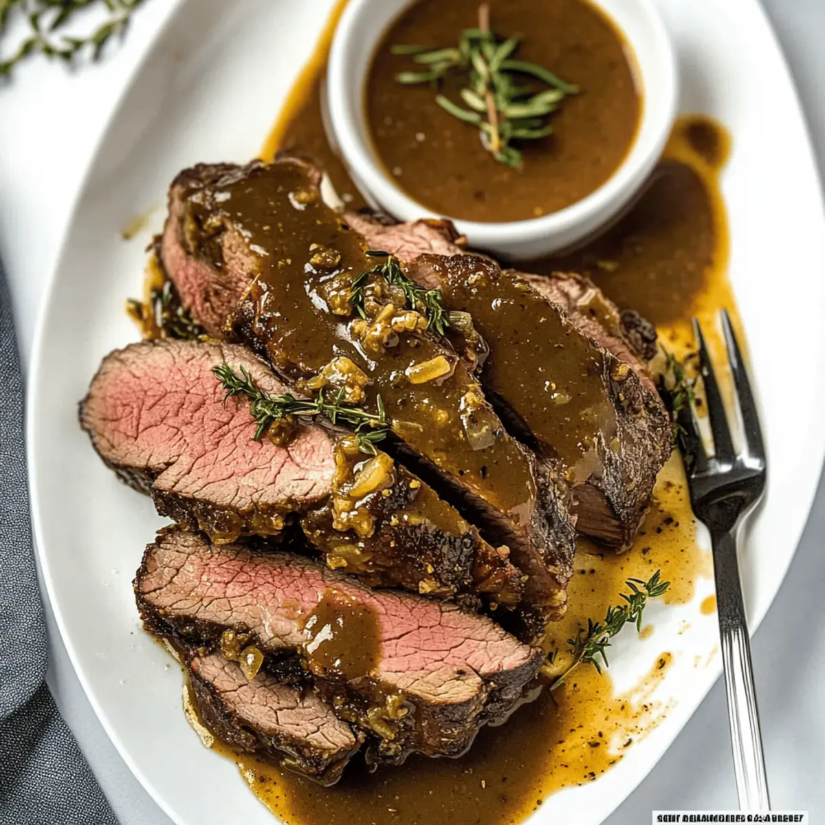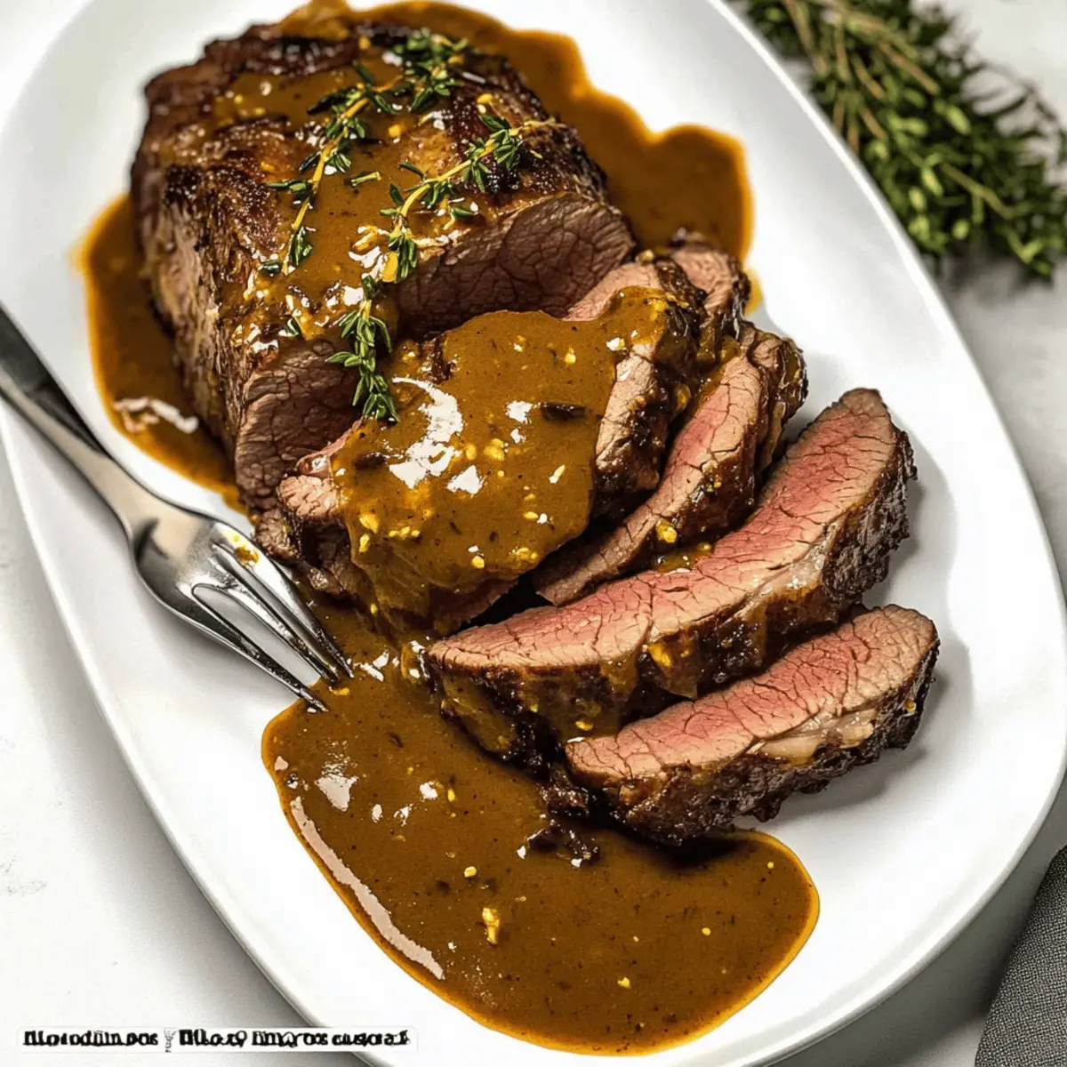 Jump to Recipe Print RecipeAs I stood in my kitchen, the aroma of garlic and herbs wafting through the air, I felt an overwhelming sense of anticipation. There’s something truly special about preparing a Top Round Roast, a staple for family dinners and celebratory gatherings alike. This recipe brings together tender, juicy beef and a rich homemade gravy that’s incredibly rewarding to create. Not only does it offer comfort and satisfaction, but it’s also a versatile dish that can easily accommodate your dietary preferences or that of your guests. Whether you’re hosting a holiday feast or simply want to treat yourself to something extraordinary, this Top Round Roast will exceed expectations. What will you pair it with—a classic Yorkshire pudding or perhaps a fresh garden salad? Let’s dive into this savory adventure together! Why is Top Round Roast a Must-Try? Tender, Flavorful Beef: The top round roast is a superior choice because it delivers a melt-in-your-mouth experience, enhanced by a fragrant rub of garlic and herbs. Rich, Homemade Gravy: The accompanying gravy is crafted from savory drippings, ensuring every bite is packed with flavor. Versatile Pairings: Whether you opt for classic Yorkshire pudding or a refreshing salad, this roast adapts beautifully to any side. Easily Customizable: Substitute based on dietary preferences, making it friendly for all guests—consider alternatives like Ground Turkey Tacos or Ground Beef Burrito Bowl for unique twists. Impressive Presentation: With its elegant appeal, this dish is perfect for both casual dinners and special occasions.** Make it ahead, store leftovers, and relish cozy meals throughout the week! Top Round Roast Ingredients • Perfect for a hearty family dinner! For the Roast Top Round Roast – The star of this dish, delivering tender and juicy meat. Substitution: Top Sirloin or Eye of Round can also work well. Avocado Oil – A high-smoke point oil great for roasting. Substitution: Canola oil or any mild oil of your choice. Dijon Mustard – Provides a tangy kick to the roast. Substitution: Stone-ground mustard for a textured alternative. Worcestershire Sauce – Enhances the umami flavor profile in the beef. Substitution: Soy sauce works in a pinch. Fresh Rosemary – Infuses a fragrant herbal note to the roast. Substitutions: Oregano or thyme for a different flavor twist. Minced Garlic – Adds aromatic depth—essential for flavor. Note: Garlic powder can substitute if needed. Italian Seasoning – Boosts the overall flavor; the perfect blend of herbs. Tip: Create your own mix for customized flavor. Fine Sea Salt – Essential for balancing and enhancing all flavors. Adjust to taste for a personalized touch. Fresh Ground Black Pepper – Adds a bit of heat and complexity. Adjust according to your palate. For the Gravy Beef Broth – The savory base for your homemade gravy. Use low-sodium broth to control salt levels. Cold Water – Needed to make a slurry for thickening. Xanthan Gum – A low-carb thickener for your gravy. Substitution: Cornstarch works well if you prefer. Dry Red Wine (e.g., Merlot) – Adds depth and richness to the gravy. This elevates the whole dish wonderfully! Garlic Powder & Onion Powder – Additional flavor enhancers for your gravy. Unsalted Butter – Finishes your gravy with a velvety texture. The Top Round Roast and its stellar gravy is a versatile dish that promises to leave lasting memories around your family table. Enjoy every bite! Step‑by‑Step Instructions for Savory Top Round Roast with Rich Homemade Gravy Step 1: Preheat the Oven Begin by preheating your oven to 450º F (230º C). While the oven heats, prepare your roasting pan with an oven-safe rack inside. This setup ensures that the heat circulates evenly around the top round roast, promoting a beautifully cooked exterior while keeping the juices locked inside. Step 2: Season the Roast In a mixing bowl, combine avocado oil, Dijon mustard, Worcestershire sauce, minced garlic, fresh rosemary, Italian seasoning, fine sea salt, and fresh ground black pepper. Generously rub this fragrant mixture all over the surface of the top round roast. For even cooking, tie the roast with kitchen string at 1-inch intervals, ensuring it maintains its shape. Step 3: Roast the Beef Place the seasoned top round roast into the prepared roasting pan, inserting a meat thermometer into the thickest part of the meat. Roast at 450º F (230º C) for 15 minutes. Then, reduce the oven temperature to 250º F (120º C) and continue roasting for about 25-28 minutes per pound until the thermometer reads 130º F (54º C) for a perfect medium-rare finish. Step 4: Rest the Beef Once your top round roast reaches the desired temperature, carefully remove it from the oven. Tent the roast with aluminum foil and let it rest for 15 minutes. This crucial step allows the juices to redistribute throughout the meat, ensuring each slice is tender and juicy when it’s time to serve. Step 5: Make the Gravy While the roast rests, prepare the rich homemade gravy. In a small bowl, mix xanthan gum or cornstarch with cold water to form a slurry. On medium heat, pour off excess fat from the roasting pan and deglaze it with dry red wine, scraping any flavorful bits off the bottom. Let this reduce by half before adding beef broth, garlic powder, onion powder, Worcestershire sauce, and Dijon mustard. Step 6: Thicken the Gravy Incorporate the slurry into the simmering gravy, whisking constantly until it thickens. Keep bubbling for a few minutes, then stir in unsalted butter to create a smooth, velvety finish. Adjust seasoning with salt and pepper to taste, ensuring a rich flavor profile that complements the savory top round roast. Step 7: Serve Slice the rested top round roast against the grain into even portions. Arrange on a serving platter and generously ladle the warm homemade gravy over the slices. This savory top round roast, paired with its luscious gravy, is perfect for family