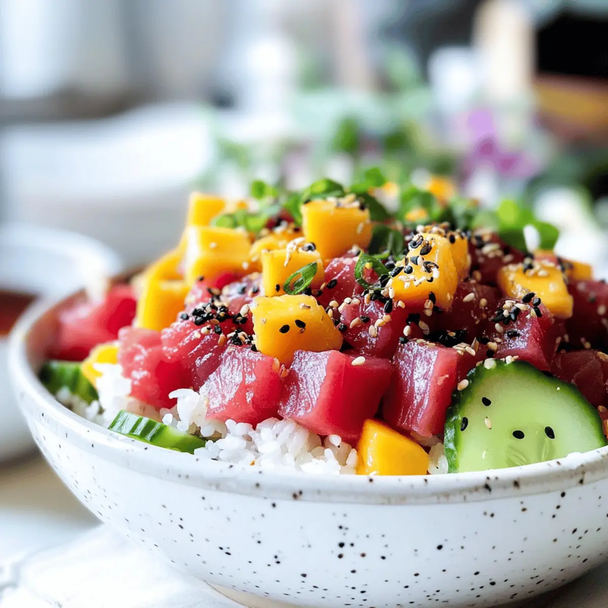 Enjoy a vibrant Tuna Poke Bowl brimming with fresh ingredients and customizable toppings for a quick and healthy meal.