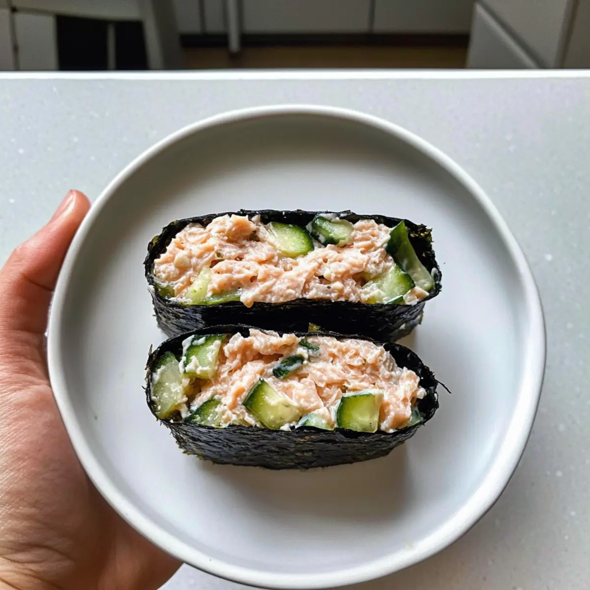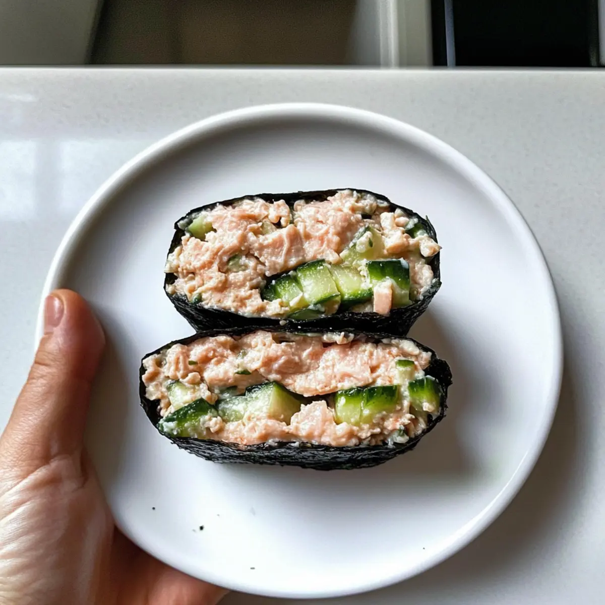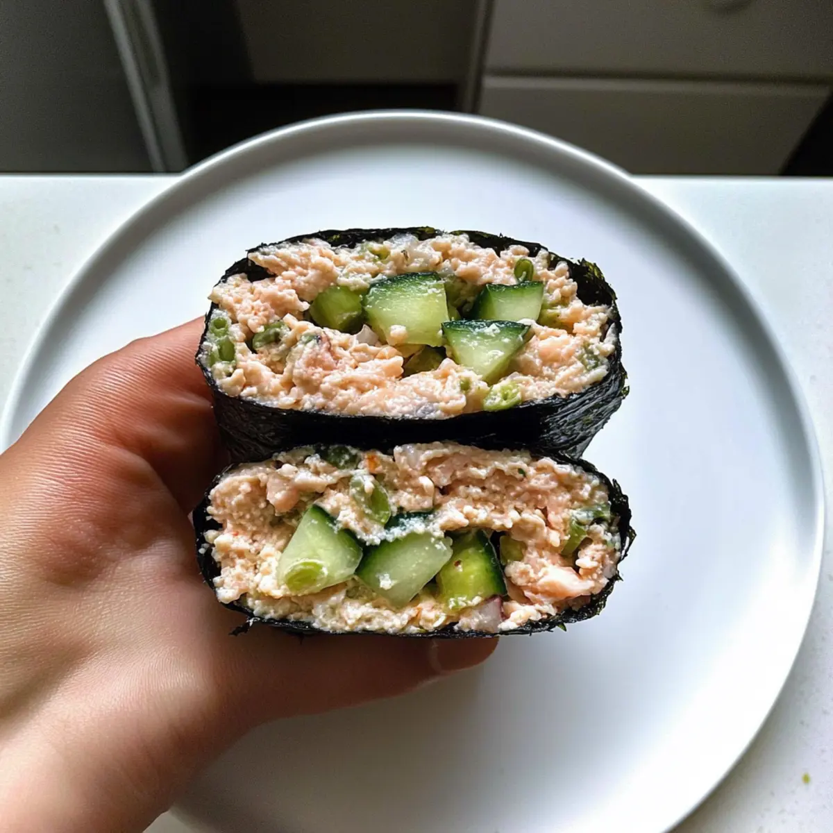 Jump to Recipe Print RecipeIn a moment of culinary inspiration, I found myself dreaming about the vibrant flavors of sushi combined with a classic comfort—the savory goodness of tuna salad. Enter the Tuna Salad Nori Wraps, where ease meets nutrition in an exciting new way. This recipe is perfect for anyone looking to whip up a quick lunch that doesn’t compromise on taste or health. Packed with protein and plenty of fresh crunch, these wraps not only satisfy but also elevate your midday meal. Plus, they come together in just five minutes, making them an ideal choice for busy days when you want something delightful without a hefty time investment. Curious to dive into making these flavorful wraps? Let’s roll! Why Choose Tuna Salad Nori Wraps? Simplicity at Your Fingertips: With just a few ingredients, you can create a nutritious lunch in five minutes. No fuss, no extensive prep required! Flavor Explosion: The delightful mix of creamy tuna and fresh veggies, all wrapped in umami-rich nori, will tantalize your taste buds and leave you craving more. Health-Conscious: Packed with protein and healthy fats, these wraps fit perfectly into a paleo diet, enabling you to stick to your health goals without sacrificing taste. Versatile and Fun: Feel free to customize your wraps with different ingredients like avocado or shredded carrots for added flavor and nutrition. Crowd-Pleaser: Perfect for lunchboxes or a light meal, Tuna Salad Nori Wraps are an excellent choice for gatherings or quick snacks. Complement them with some Tzatziki Cucumber Salad for a full spread! Tuna Salad Nori Wraps Ingredients For the Tuna Filling • Canned Tuna – the heart of the dish, offering a high-protein base; opt for high-quality tuna for the best flavor. • Mayonnaise – brings creaminess to the mixture; for a lighter twist, try substituting with Greek yogurt. • Green Onions – add a mild crunch and fresh flavor; can be swapped for chives or shallots for variation. • Salt and Pepper – season to taste; adjust these basic seasonings according to your preference. For the Wrap • Nori Sheets – the essential wrap base; look for sushi-grade nori for optimal texture and flavor. • Cucumber – contributes a fresh crunch; substitute with bell peppers to add a touch of sweetness. Additional Suggestions • Optional Ingredients – consider adding avocado for natural creaminess or shredded carrots for extra crunch and color. Experiment with herbs like dill or cilantro to elevate the flavor profile. Now that you have the ingredients, get ready to enjoy a quick lunch with these delightful Tuna Salad Nori Wraps! Step‑by‑Step Instructions for Tuna Salad Nori Wraps Step 1: Prepare the Tuna Mixture In a medium mixing bowl, combine the canned tuna with mayonnaise, mixing thoroughly until the ingredients are well incorporated and a creamy texture forms, about 1-2 minutes. The mixture should be smooth and cohesive. For a lighter option, you can substitute the mayonnaise with Greek yogurt. Step 2: Chop the Fresh Ingredients Finely slice the green onions and cucumber, aiming for small, uniform pieces for even distribution. This will take about 2-3 minutes. Once chopped, gently fold these fresh ingredients into the tuna mixture. Season generously with salt and pepper to taste, ensuring that the flavors meld beautifully. Step 3: Prepare the Nori Sheets Lay out a nori sheet on a clean, dry surface with the shiny side facing down. Ensure your hands are dry to prevent tearing the nori. This step is crucial for assembly, so take your time to get it right. Prepare your work area to easily access the tuna mixture next. Step 4: Assemble the Wrap Spoon a generous portion of the tuna salad mixture towards one end of the nori sheet, keeping it about an inch from the edge. Use about 1/4 of the mixture for each wrap. Carefully roll the nori tightly over the filling, tucking in the sides as you go. This rolling process should take about 1-2 minutes per wrap to ensure a secure seal. Step 5: Slice and Serve Once you have rolled the nori sheet into a secure wrap, use a sharp knife to slice it into bite-sized pieces, about 1-2 inches thick. Arrange the Tuna Salad Nori Wraps on a serving platter, and enjoy the delightful presentation. Serve immediately for the best texture, or wrap tightly in plastic for a quick, healthy lunch later on. What to Serve with Tuna Salad Nori Wraps Elevate your lunchtime experience with delightful sides and pairings that will complement these protein-packed wraps. Crispy Edamame: Adds a satisfying crunch and a burst of umami flavor, perfectly balancing the creamy tuna filling. They’re nutritious snacks full of protein too! Seaweed Salad: This tangy, textured side brings fresh sea flavors that harmonize beautifully with the nori wraps, enhancing the overall meal. Miso Soup: A warm bowl of miso soup offers comforting depth to the meal, complementing the lightness of your tuna salad with its savory broth. Fresh Fruit Salad: The sweetness and juiciness of seasonal fruits provide a refreshing contrast to the savory wraps, ensuring every bite feels like a treat. Pickled Ginger: A zesty addition that cleanses the palate, pickled ginger amplifies the Asian flavors in your meal and provides a delightful crunch. Spicy Mayo Dip: Combining mayo with sriracha creates a delicious dip that complements the tuna. Drizzle it atop your wraps for an extra kick of flavor. Cucumber Salad: Cool and crisp, this fresh salad provides textural contrast while enhancing the vibrant flavors in your wraps. Green Tea: Pair with a chilled glass of green tea; its aromatic notes will elevate the fresh ingredients in your wraps and provide a refreshing finish. With these delicious sides and drinks, your Tuna Salad Nori Wraps will transform into a full, satisfying meal! Expert Tips for Tuna Salad Nori Wraps Choose Quality Tuna: Opt for high-quality canned tuna to enhance the flavor of your wraps. Avoid lower-quality brands that might taste b