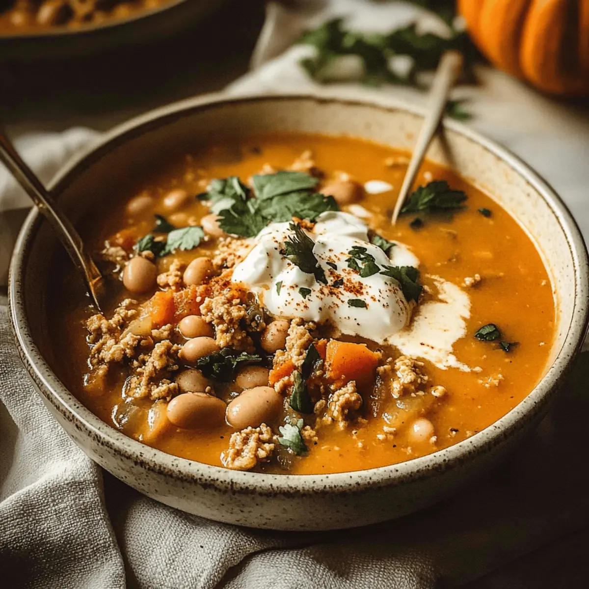 Cozy Turkey Pumpkin White Bean Chili for Fall Nights