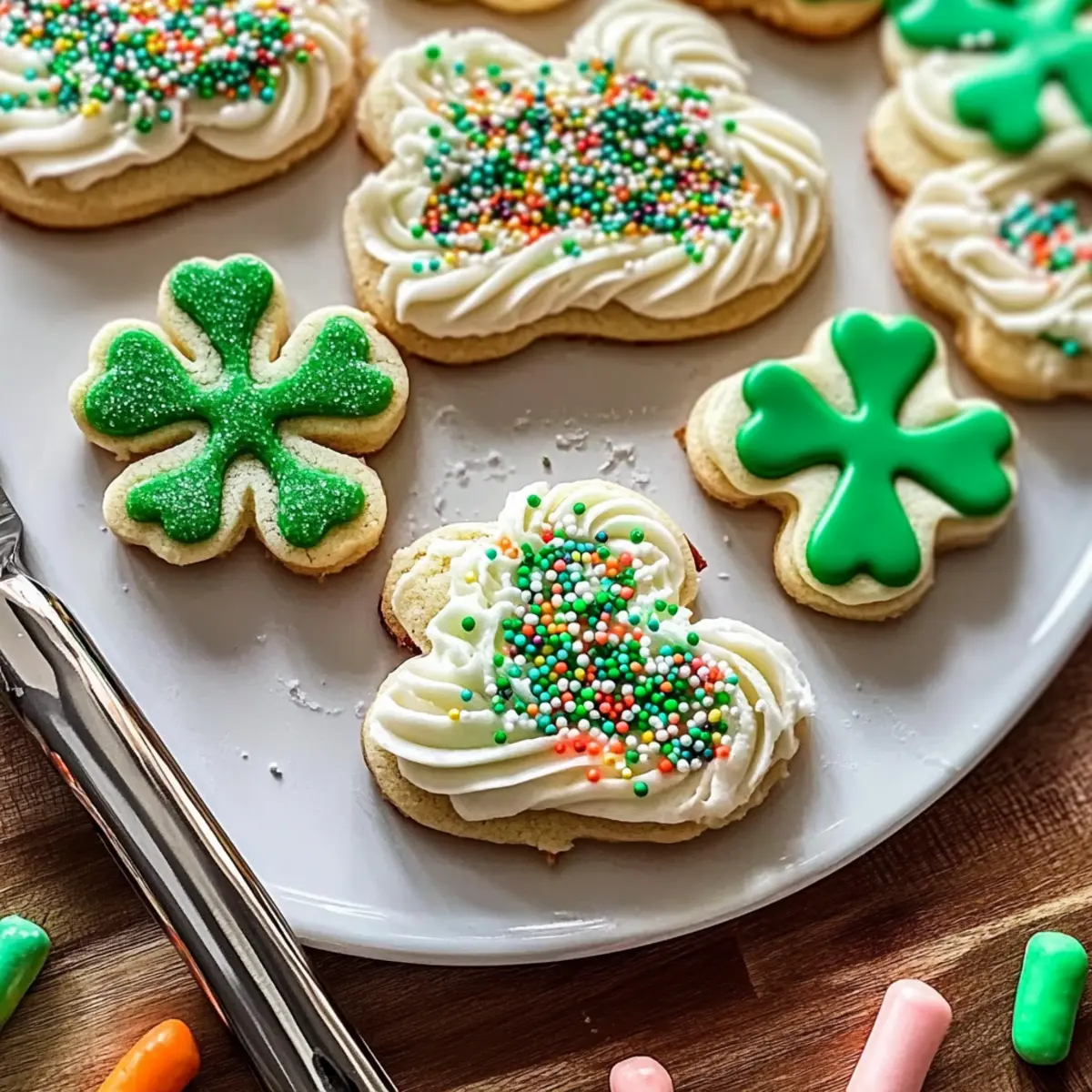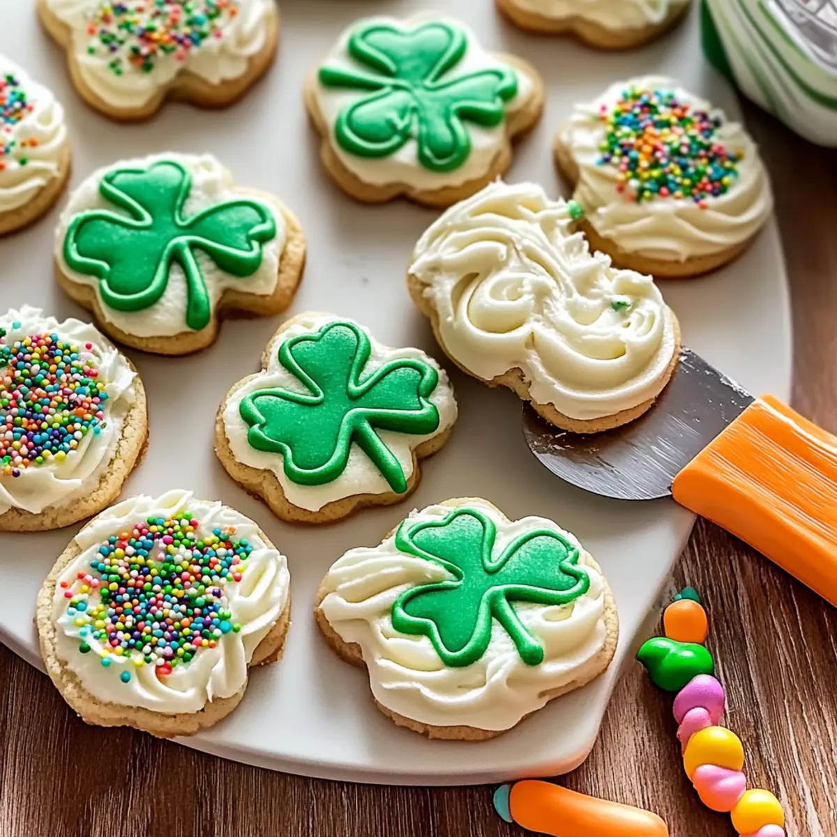 Jump to Recipe Print RecipeAs I rolled out the dough, the sweet aroma of vanilla enveloped my kitchen, instantly transporting me to a cozy bakery on Saint Patrick’s Day. These Soft-Baked Vanilla Bean St. Patrick’s Day Cookies are not just a treat; they’re a festive celebration of flavor and texture that even the most devoted fast-food fan would appreciate. Enhanced by real vanilla bean seeds and topped with a velvety vanilla bean buttercream frosting, they promise a delightful indulgence that’s perfect for sharing with friends and family. Plus, with a quick prep time and the chance to get creative with decorations, you’re in for a charming and personalized baking adventure. Curious about how to bring this irresistible twist to your holiday table? Let’s dive into the recipe! Why Are These Cookies So Unique? Unforgettable Flavor: Each bite bursts with the rich essence of real vanilla bean seeds, elevating your cookie experience beyond regular sweets. Festive Touch: These cookies are not only delicious but are also beautifully adorned with optional sprinkles, making them a lovely addition to your St. Patrick’s Day celebrations. Easy to Make: Simple steps and minimal equipment mean you can whip these up quickly, even if you’re in a rush! Perfect for Sharing: Whether at a party or a cozy family gathering, these cookies are sure to impress friends and loved ones, much like my Cookies and Cream Cupcakes. Versatile Options: Feel free to mix up flavors or use different sprinkles, allowing you to tailor the recipe to your personal taste or occasion. Get ready to enjoy a delightful baking adventure that even home chefs will cherish! Vanilla Bean St. Patrick’s Day Cookies Ingredients • Dive into a delightful baking experience! For the Cookies All-purpose flour – Provides structure while keeping cookies tender; measure accurately for the best results. Baking powder – Adds lift, ensuring your cookies are fluffy and not flat. Salt – Balances sweetness and enhances the rich vanilla flavor. Unsalted butter – Softened to room temperature for creamy cookies and frosty indulgence. Granulated sugar – Sweetens dough while contributing to that essential soft texture. Whole vanilla bean seeds – The star ingredient that imparts authentic vanilla flavor and charming flecks. Large egg – Adds moisture and binds ingredients for a cohesive dough. Pure vanilla extract – Intensifies the overall vanilla profile of your cookies. For the Buttercream Frosting Confectioners’ sugar – The foundation of a smooth and delightful buttercream frosting. Heavy cream (or alternative) – Achieves the perfect frosting consistency. Salt for frosting – Balances the sweetness in the frosting, creating a harmonious flavor. Gel food coloring (optional) – For adding festive colors suitable for the holiday celebration. Sprinkles (optional) – A fun way to add a festive touch to the finished cookies. Unveil the magic of these Vanilla Bean St. Patrick’s Day Cookies and indulge in the joy of homemade desserts! Step‑by‑Step Instructions for Vanilla Bean St. Patrick’s Day Cookies Recipe Step 1: Prepare the Dough In a large mixing bowl, whisk together 2 cups of all-purpose flour, 1 teaspoon of baking powder, and a pinch of salt. In a separate bowl, beat 1 cup of softened unsalted butter and 1 cup of granulated sugar together until fluffy and light, which takes about 2-3 minutes. Mix in the seeds from 1 whole vanilla bean and 1 large egg, followed by 1 teaspoon of pure vanilla extract. Gradually combine the dry ingredients with the wet until a soft, slightly sticky dough forms. Step 2: Chill the Dough Once the dough is ready, divide it in half and roll each portion between two sheets of parchment paper to about ¼ inch thickness. Wrap the rolled-out dough in plastic wrap and refrigerate for at least 2 hours. This chilling step is crucial for your Vanilla Bean St. Patrick’s Day Cookies, as it helps maintain their shape while baking. Step 3: Bake the Cookies Preheat your oven to 350°F (177°C). Take the chilled dough out of the fridge and cut it into festive shapes using cookie cutters. Place the shaped cookies on a parchment-lined baking sheet, leaving some space between each one. Bake for about 12 minutes, until the edges are just lightly golden, then allow the cookies to cool on wire racks before frosting them. Step 4: Make the Frosting While the cookies cool, prepare the buttercream frosting. In a mixing bowl, beat together ½ cup of softened unsalted butter and the seeds from another vanilla bean until creamy. Gradually add 2-3 cups of confectioners’ sugar, alternating with 2-4 tablespoons of heavy cream, and a pinch of salt. Beat until you achieve a smooth and spreadable consistency, adjusting sweetness as needed. Step 5: Decorate Once the cookies are completely cool, use a spatula or piping bag to frost each cookie generously with the vanilla bean buttercream. If desired, add gel food coloring to achieve a festive look, then sprinkle with colorful sprinkles for a lovely finish. These decorated Vanilla Bean St. Patrick’s Day Cookies will surely become a highlight of your holiday celebrations! Expert Tips for Vanilla Bean St. Patrick’s Day Cookies Patience Pays Off: Chilling the dough is essential for maintaining the cookies’ shape while baking. Don’t skip this step! Measure Carefully: Accurate measurements for flour and sugar are crucial. Too much flour can lead to dry cookies, so use a kitchen scale if possible. Softened Butter Matters: Ensure your unsalted butter is softened to room temperature for a perfect creamy texture in both the cookies and the frosting. Avoid Over-Mixing: When combining wet and dry ingredients, mix just until combined. Over-mixing can make the cookies tough; we want them soft and tender! Customize It: Have fun with variations! Consider adding different flavored extracts or swapping in various sprinkles to your Vanilla Bean St. Patrick’s Day Cookies for