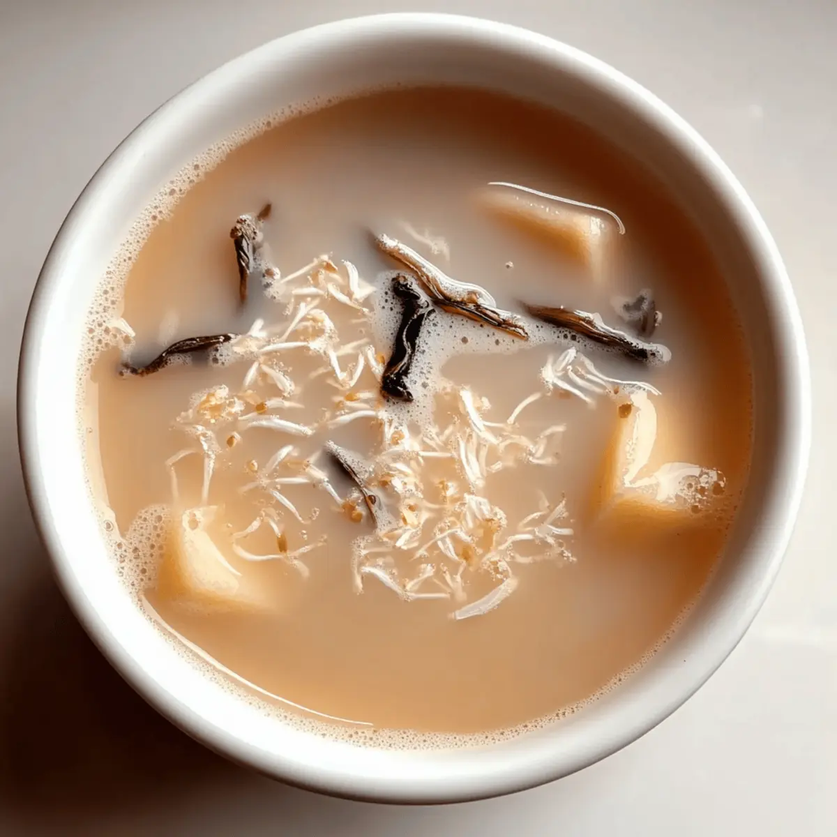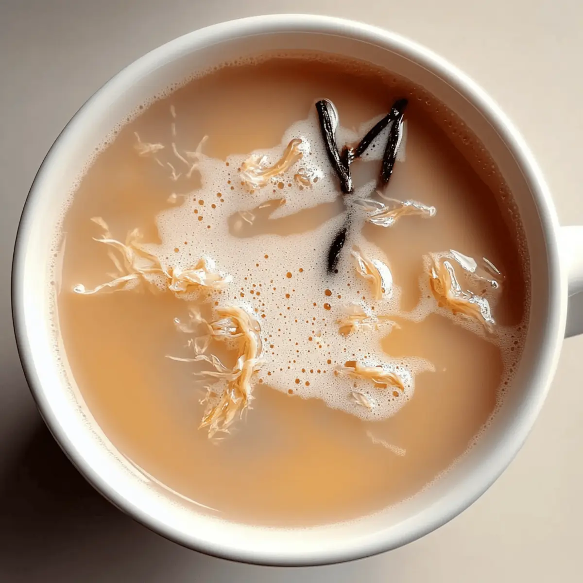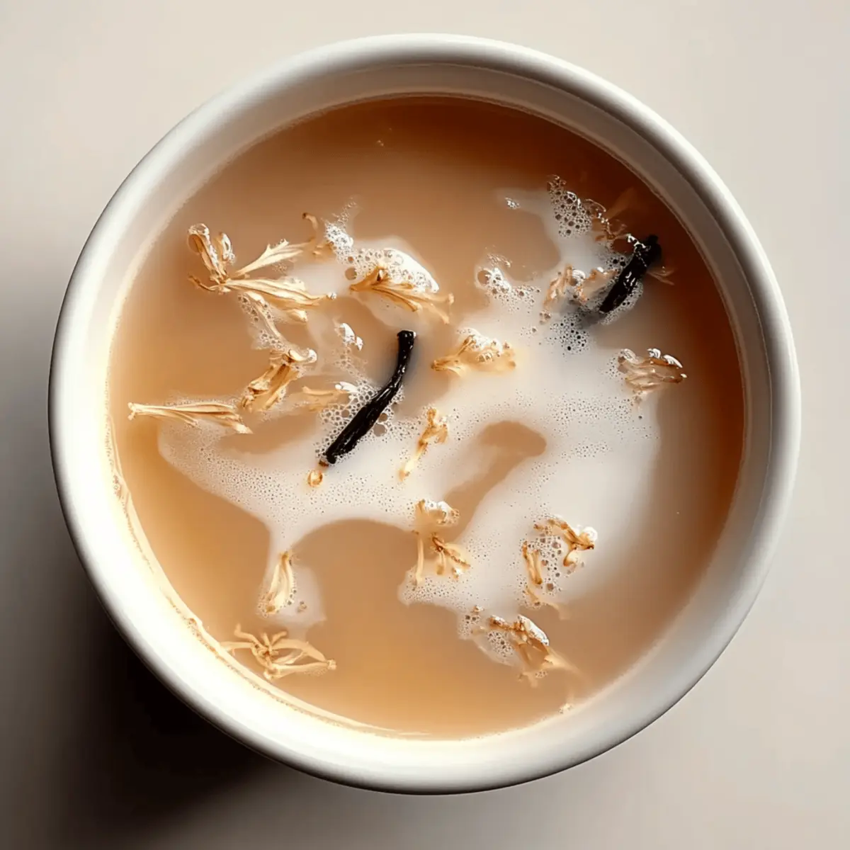 Jump to Recipe Print RecipeAs I sipped my first cup of Vanilla Jasmine Milk Tea, I felt a gentle wave of calm wash over me. This simple yet elegant drink blends the delicate floral notes of jasmine with the sweet warmth of vanilla, creating a comforting treat that’s perfect for any time of day. In just five minutes of prep and ten minutes of cooking, you can craft a soothing cup that not only awakens the senses but also refreshes your spirit. Whether you’re caring for yourself after a long day or impressing guests at a cozy gathering, this easy, beginner-friendly recipe is endlessly customizable to suit your dietary needs. With options for dairy or plant-based milk, and the flexibility to swap in your favorite teas, you’ll find yourself enchanted by the possibilities. Ready to brew a cup that is as delightful as it is soothing? Why is Vanilla Jasmine Milk Tea special? Simplicity at its finest: This easy recipe takes just 15 minutes from start to finish, making it perfect for busy days or spontaneous cravings. Customizable flavors: With the ability to swap jasmine tea for green or chamomile, and select from various milk alternatives like almond or oat, you can tailor it to your taste. Versatile indulgence: Enjoy it hot for a cozy treat or iced during warm afternoons, ensuring you can savor it any way you like! Crowd-pleaser appeal: Impress friends and family with its elegant presentation—pair it with buttery scones or a sprinkle of cinnamon for a sophisticated touch. Health-conscious option: With vegan-friendly choices available, this drink ensures everyone can indulge guilt-free. Let this captivating blend of flavors elevate your beverage game! If you’re looking for other quick treats to enjoy, try my Air Fryer Garlic or Brown Sugar Honey recipes! Vanilla Jasmine Milk Tea Ingredients • Create a soothing cup of Vanilla Jasmine Milk Tea with these simple ingredients. For the Base Water – Use fresh, filtered water for the best flavor extraction. Jasmine Tea – This is the star ingredient for floral aroma; feel free to substitute with green tea or chamomile for a different twist. For the Creaminess Milk (Dairy or Non-Dairy) – Choose from almond, soy, oat, or cow’s milk to achieve your desired richness. For the Sweetness Vanilla Syrup or Extract – Opt for syrup if you crave a sweeter cup, or extract for a more intense vanilla flavor. Sugar or Sweetener – Tailor the sweetness to your palate; honey or agave could be delightful alternatives too. Optional Enhancements Ice Cubes – Perfect for serving your drink chilled on warm afternoons, enhancing refreshment! Step‑by‑Step Instructions for Vanilla Jasmine Milk Tea Step 1: Boil the Water Start by bringing one cup of fresh, filtered water to a rolling boil in a small saucepan or an electric kettle. This should take about 3–5 minutes. Keep an eye on the pot to ensure it reaches a vigorous boil, showcasing those inviting bubbles that signal perfection. Step 2: Steep the Jasmine Tea Once the water is boiling, carefully add the jasmine tea bag, allowing the delicate floral notes to infuse the water. Steep for approximately 3–5 minutes depending on your taste preference; a longer steep will yield a richer flavor. You’ll know it’s ready when the water takes on a beautiful golden hue. Step 3: Warm the Milk While your tea is steeping, pour your choice of milk—dairy or non-dairy—into a separate saucepan and warm it over low heat. Stir occasionally for about 3–4 minutes, taking care not to let it boil. You’re looking for a gentle warmth, just enough to enhance the creaminess of your Vanilla Jasmine Milk Tea. Step 4: Combine Tea and Milk After steeping, gently remove the jasmine tea bag from the saucepan. Pour the warmed milk into the brewed tea, stirring slowly to blend the two liquids seamlessly. The combination should create a soothing, creamy texture, with the milk perfectly complementing the floral jasmine essence. Step 5: Add Sweetness and Flavor With your tea and milk mixed, it’s time to enhance the flavor by stirring in your vanilla syrup or extract along with sugar or your preferred sweetener. Mix well for about 1–2 minutes until fully dissolved, creating a sweet and fragrant base for your Vanilla Jasmine Milk Tea. Step 6: Cool for Iced Tea (Optional) If you prefer your drink chilled, let the mixture cool at room temperature for about 5–10 minutes. Afterward, refrigerate it for at least another 10 minutes until nicely chilled, preparing a refreshing iced version of the soothing Vanilla Jasmine Milk Tea. Step 7: Serve and Enjoy Pour your Vanilla Jasmine Milk Tea into a mug for a warm treat or over a glass filled with ice for a refreshing drink. Feel free to garnish with a sprinkle of cinnamon or flower petals to elevate its presentation, making it a delightful indulgence for yourself or guests. Vanilla Jasmine Milk Tea Variations Feel free to explore and personalize this delightful recipe with these fun and tasty twists! Green Tea: Substitute jasmine tea with green tea for a lighter, earthier flavor that complements the vanilla beautifully. Almond Milk: Use almond milk for a nutty touch that pairs nicely with the floral notes of jasmine and adds a lovely creaminess. Oat Milk: For a rich and slightly sweet variation, swap in oat milk—it’s perfect for enhancing that smooth texture. Coconut Milk: Go tropical by using coconut milk, which adds a luscious creaminess and hints of sweetness that will transport you to an island paradise. Flavored Syrups: Experiment with flavored syrups like hazelnut or caramel to add an unexpected depth to your Vanilla Jasmine Milk Tea. The different flavors can elevate this drink to new heights! Iced Version: For a refreshing summer treat, serve your tea over ice. Let the mixture cool to room temperature before refrigerating, ensuring every sip stays chilled and invigorating. Sweetener Alternatives: Try using natural sweeteners like agave syrup or maple syrup instead of r